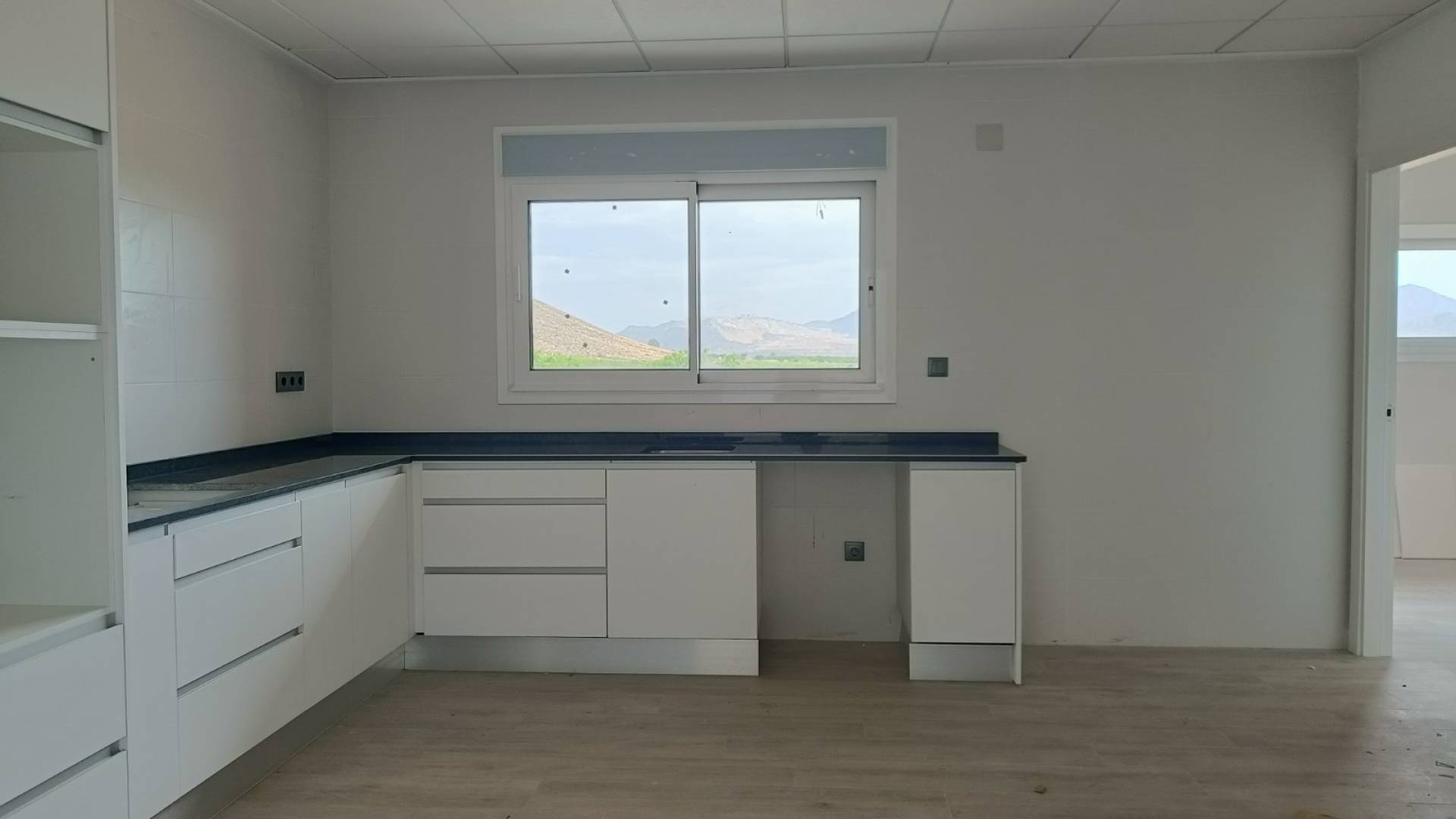 - Cocina: Equipada con dos grandes puertas correderas que se abren al comedor. Cocina completa con todo el mobiliario, fregadero y grifería. Electrodomésticos no incluidos.