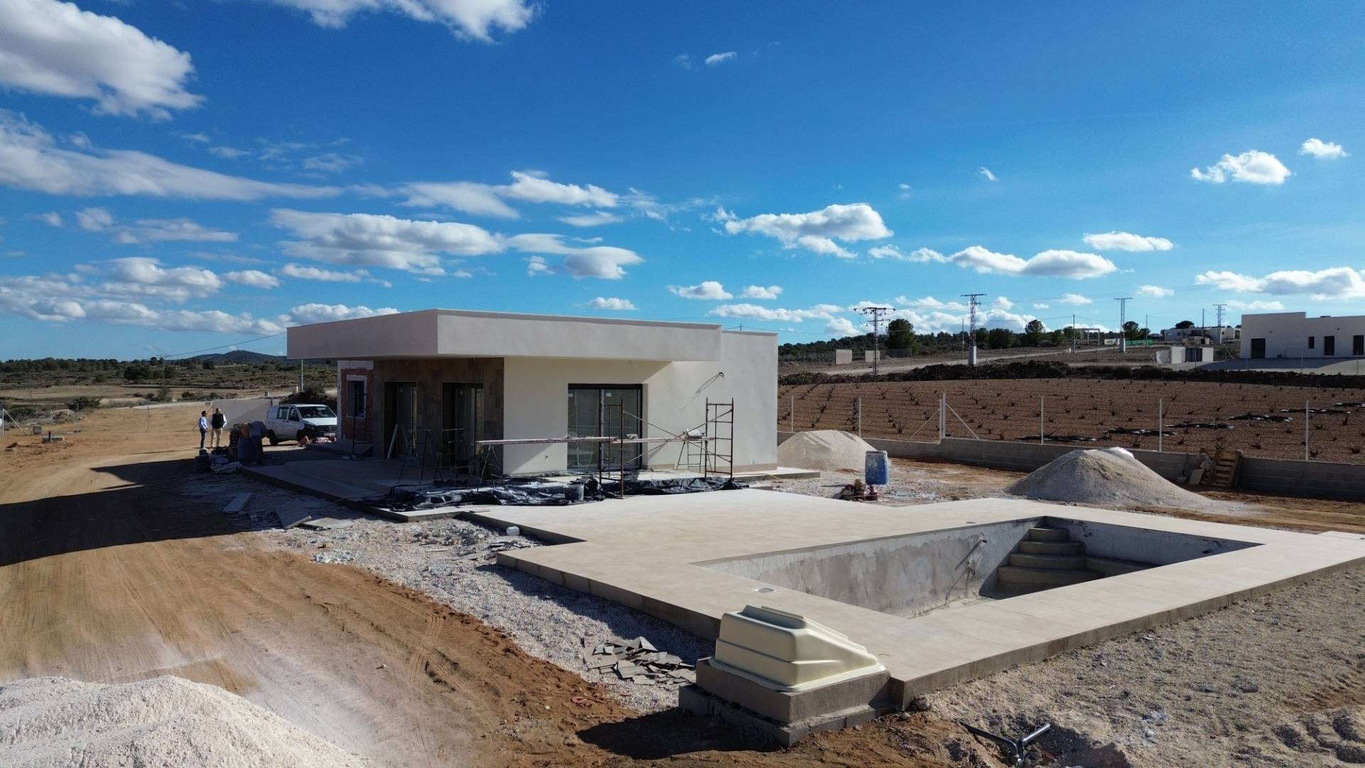 Bienvenido a una oportunidad única de ser propietario de una impresionante villa situada en los pintorescos paisajes de Pinoso. Rodeada de majestuosas montañas y extensos viñedos, este nuevo proyecto de construcción ofrece un entorno idílico para quienes buscan un estilo de vida sereno combinado con comodidades modernas.