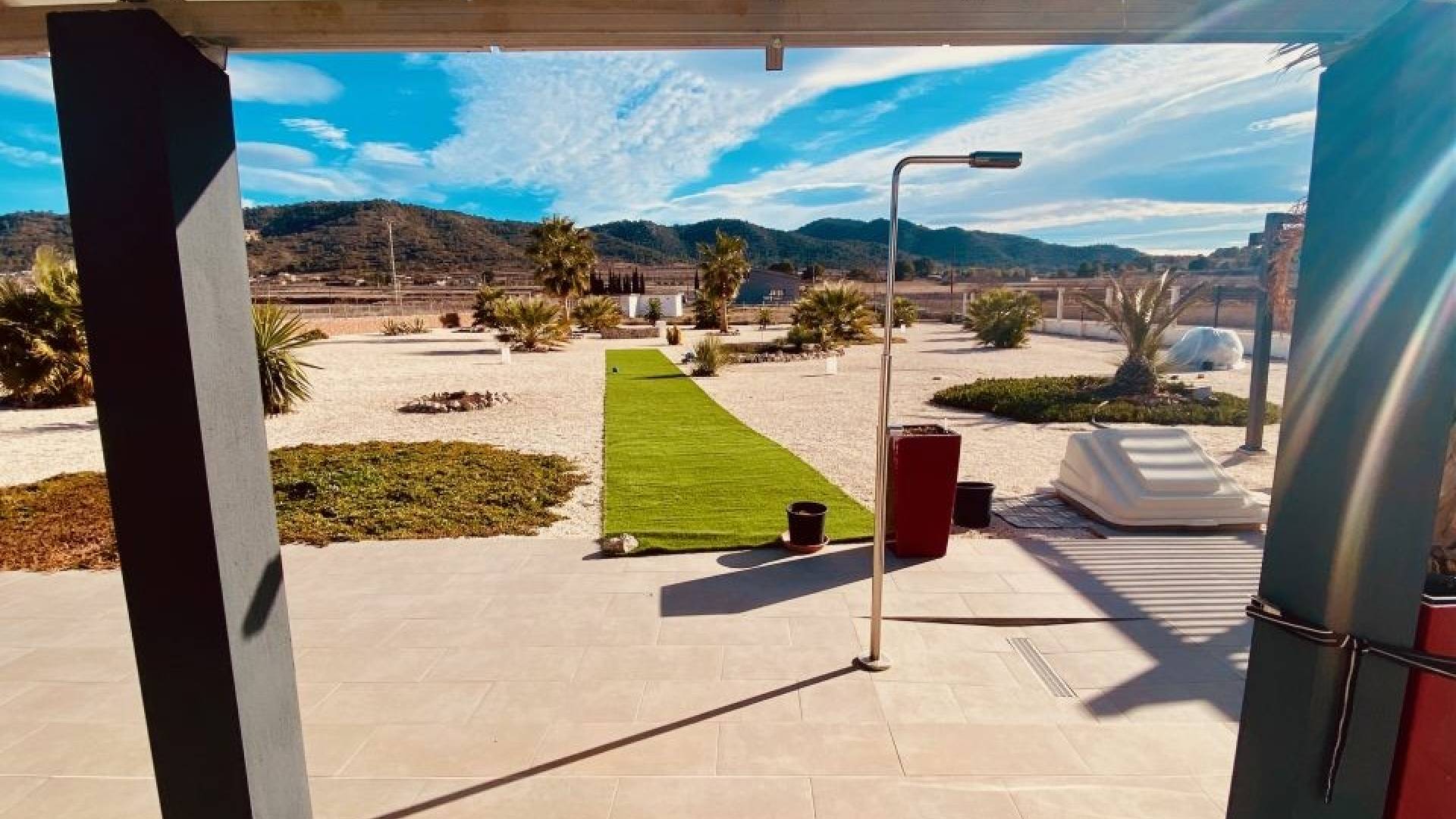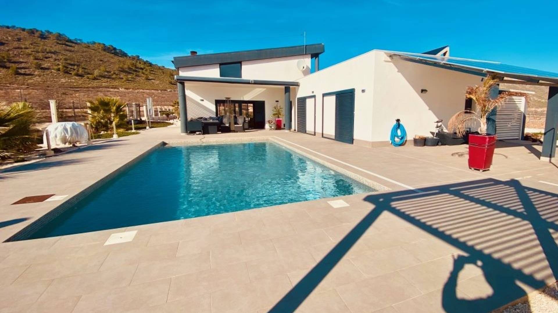 Es con gran placer que le presentamos esta magnífica villa construida en 2020 a pocos minutos del pequeño pueblo de Canadá de la Lena y a 15 minutos de la hermosa ciudad de Pinoso. Se levanta sobre una parcela totalmente vallada de 5.143m² que ha sido ajardinada con mucho mimo y gusto. Hay que tener en cuenta el precio del paisajismo del jardín con su chalet de madera de 5x5m: palmeras, olivos podados en Bonsai, laureles y mucho más…..