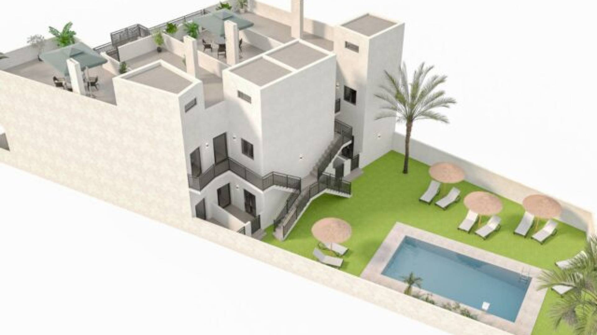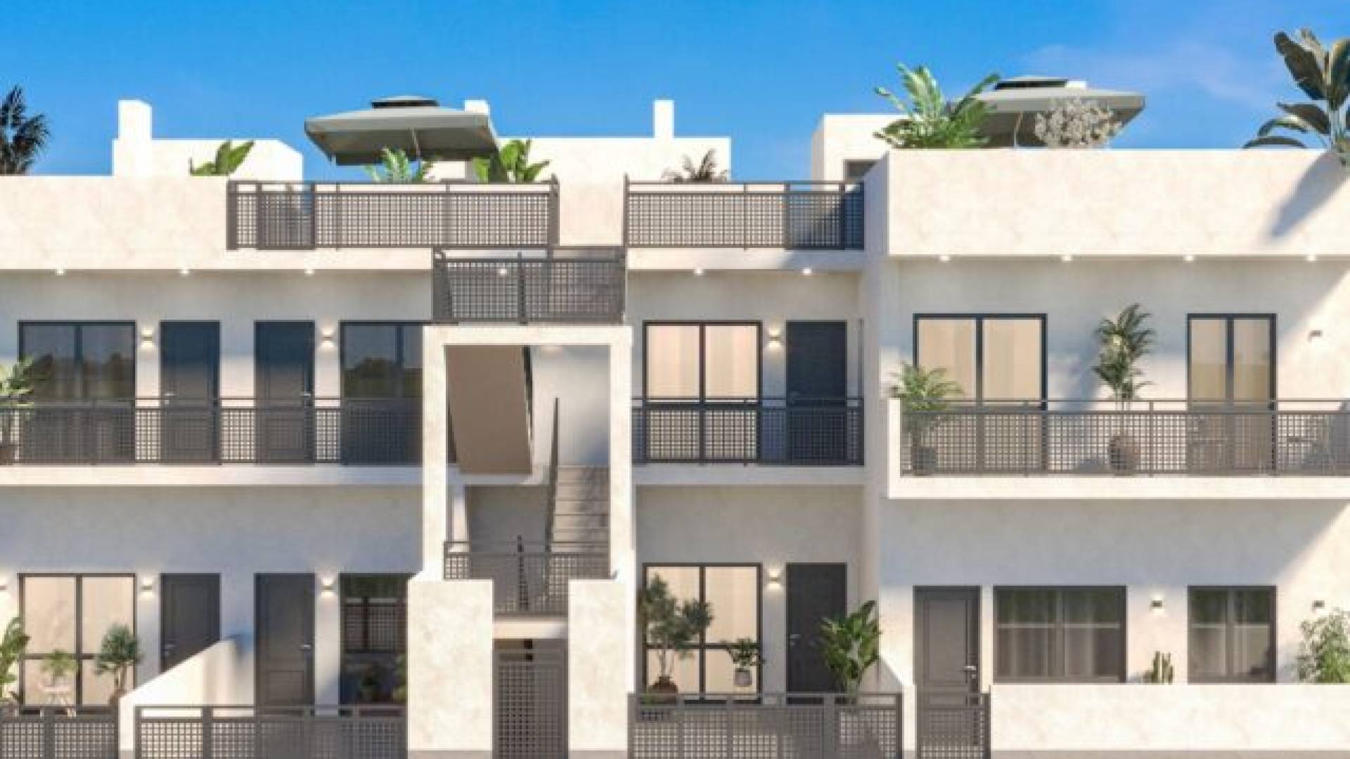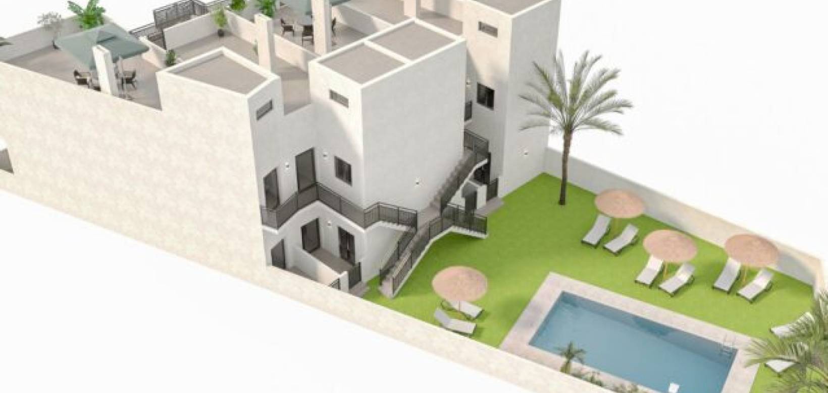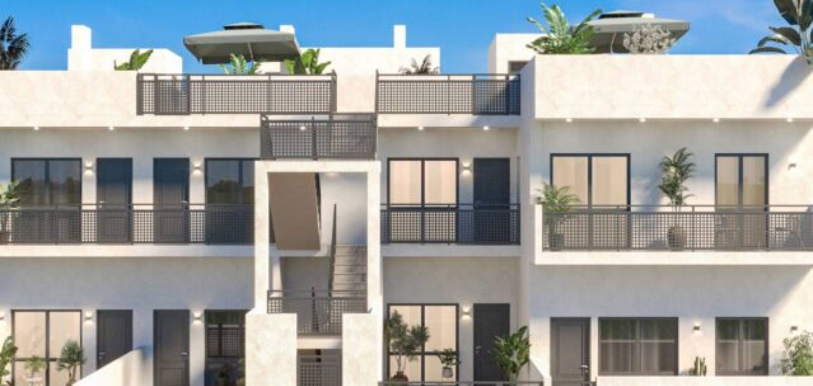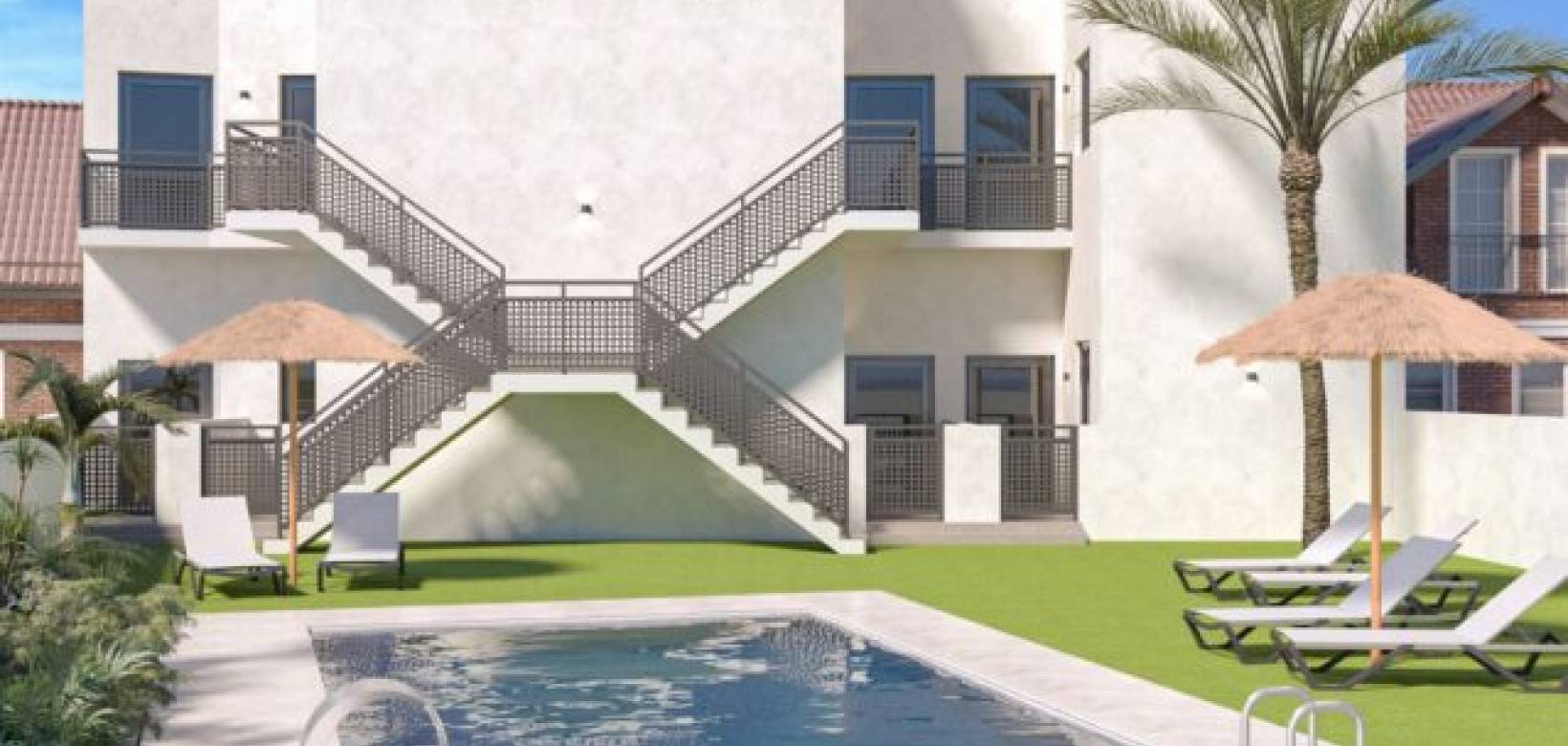 These new apartments development will be built in La Canalosa, a hamlet between Hondon de las Nieves and Hondon de los Frailes. If you're looking for a new property in a green and relaxing setting, this is the project for you.The development comprises a total of 8 apartments, distributed as follows:Ground floor:4 apartments - each apartment has 2 bedrooms, a bathroom, a private entrance and a courtyard. The apartments have a total surface area of between 68m² and 74m², with a terrace/garden of between 10 and 16m² and a patio of 4m².1st floor:4 apartments - each apartment has 2 bedrooms, a bathroom, a private entrance, a terrace and a storage room. The apartments have a total surface area of +/- 100m² with a solarium (roof terrace) of +/- 47m² and a storage room of 10m².Communal areas include a communal swimming pool and garden.The flats will be completed in the first quarter of 2026.Prices from 119,900