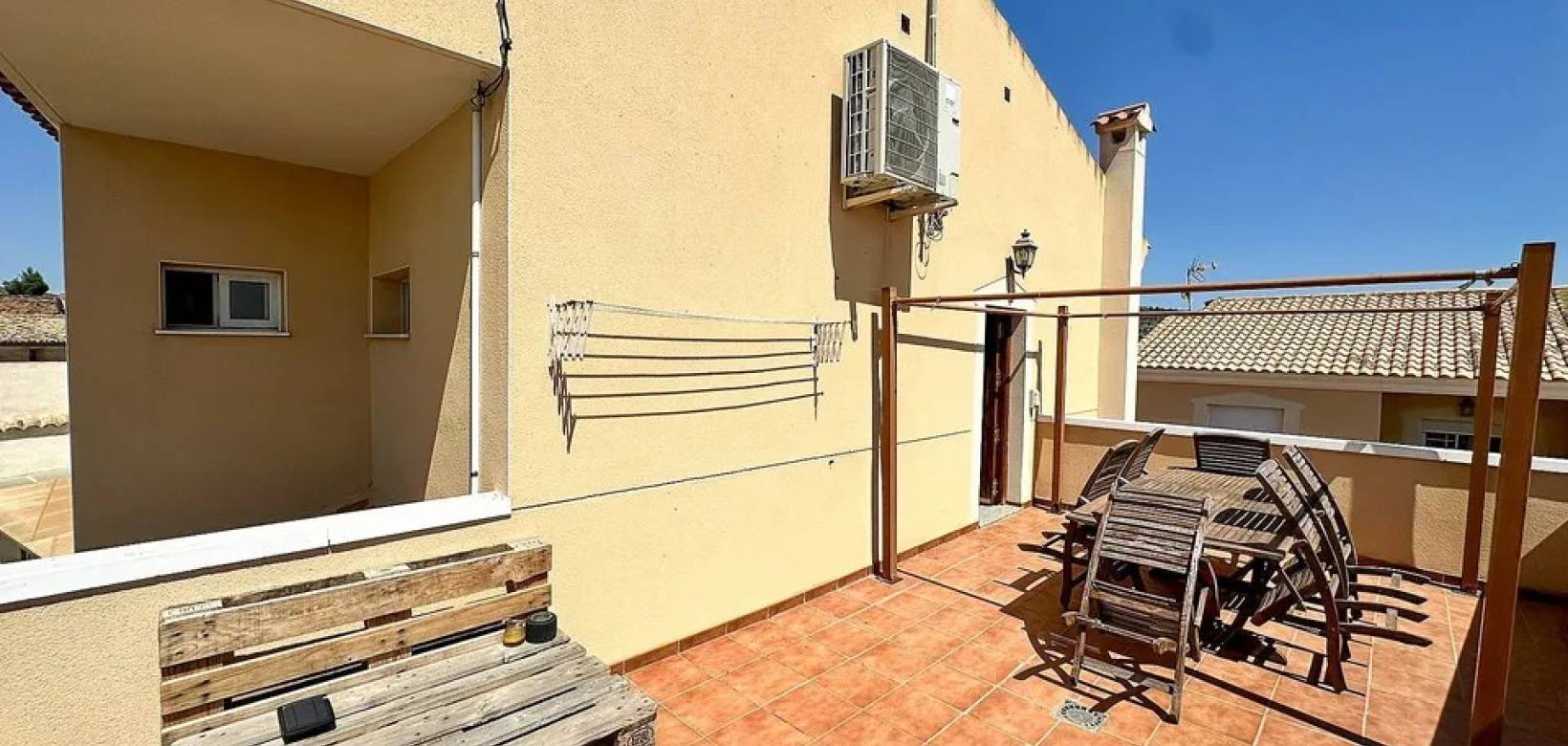Te damos la bienvenida a esta luminosa y cuidada vivienda adosada, situada en una tranquila calle del encantador pueblo de Hondón de los Frailes. Construida en 2006 y perfectamente conservada, esta casa es ideal tanto como residencia habitual como para escapadas de fin de semana, combinando comodidad moderna con espacios exteriores pensados para el disfrute.