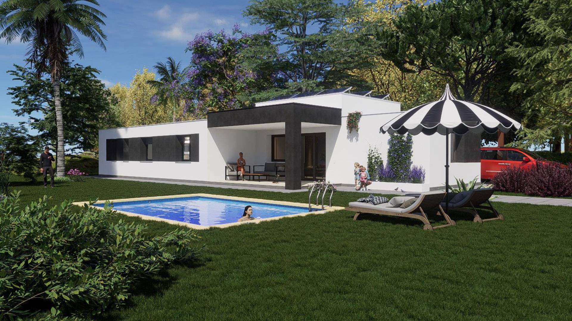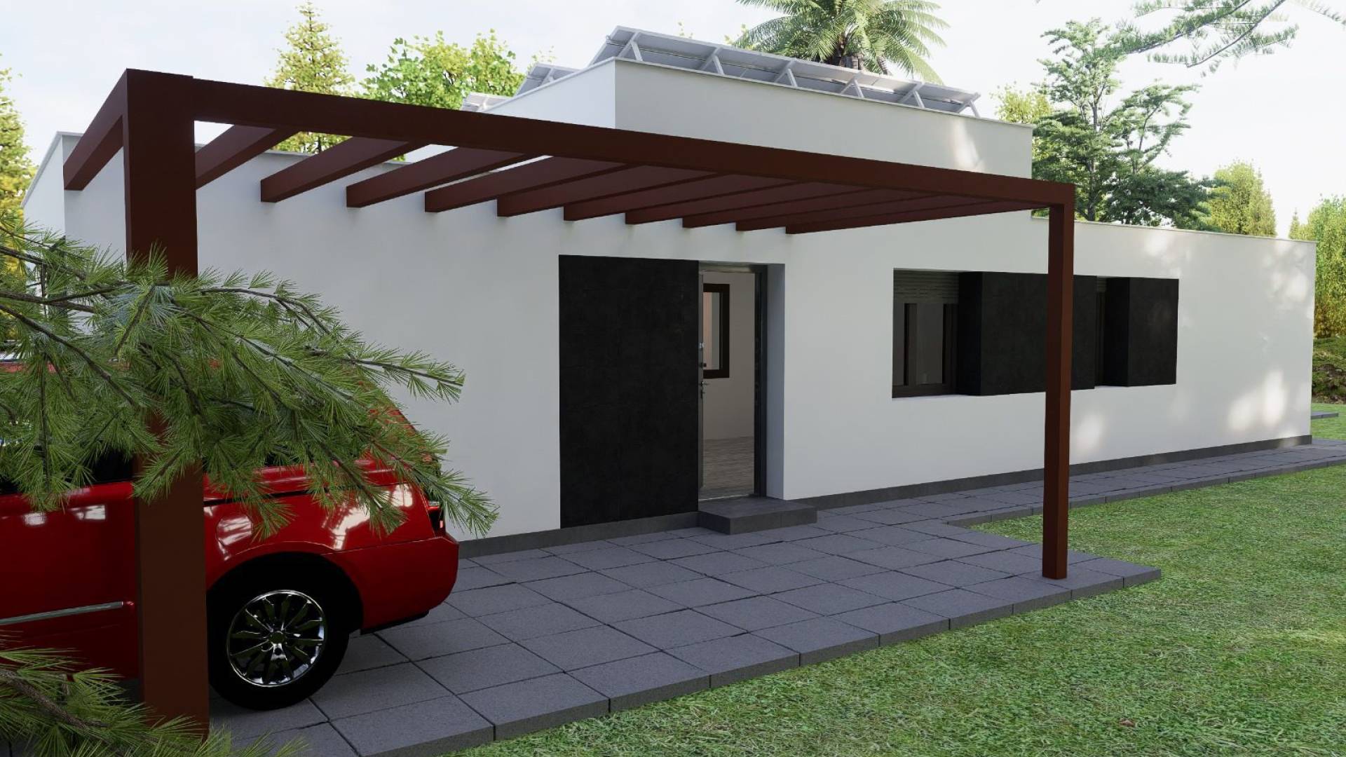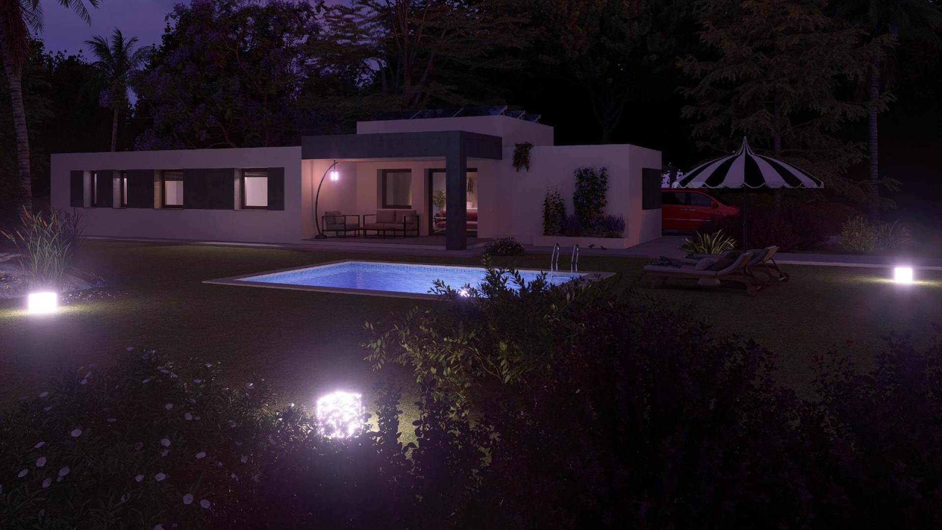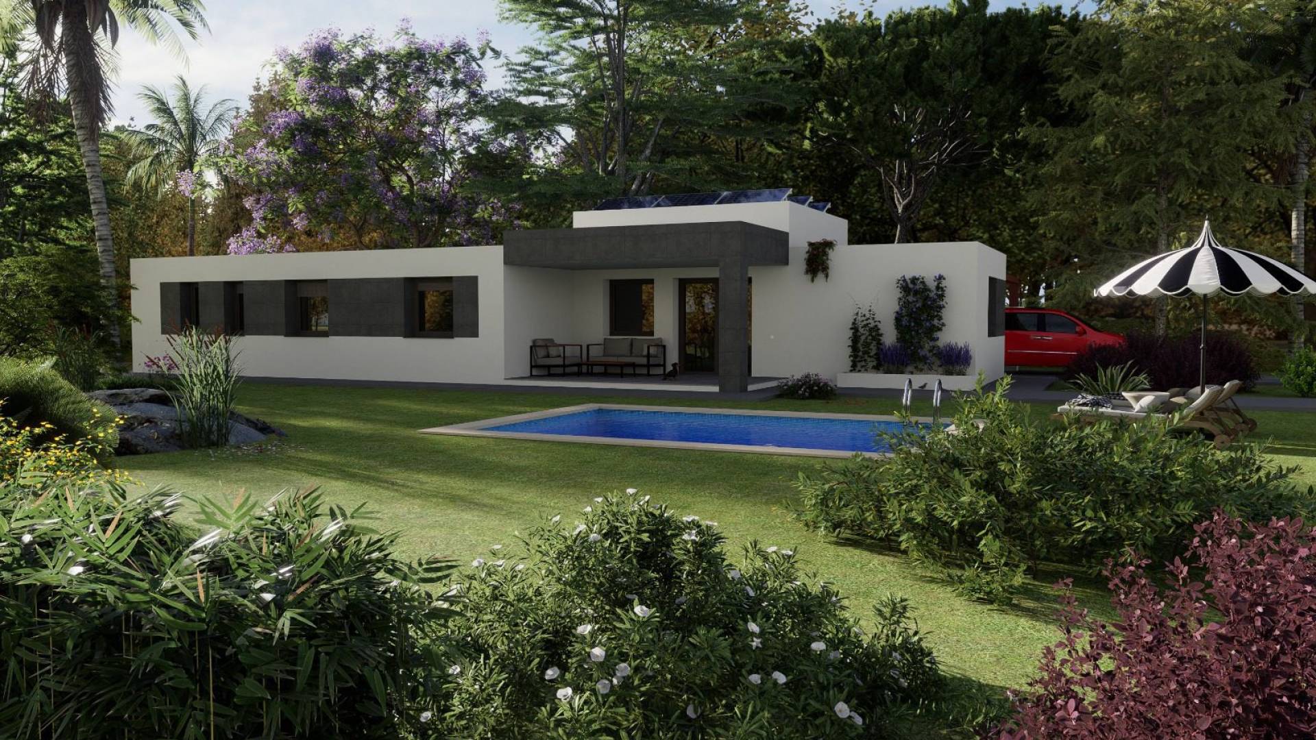 Descubre tu casa de ensueño en la hermosa región de Pinoso Presentamos una excelente oportunidad para ser propietario de la casa de tus sueños, ubicada en un lugar privilegiado cerca del encantador pueblo de Pinoso. Esta casa moderna y elegante ofrece la combinación ideal de tranquilidad, belleza natural y una alta calidad de vida, siendo el lugar perfecto para quienes buscan un hogar lujoso en un entorno pacífico. Características de la propiedad: Fachada: La fachada exterior está construida con ladrillo cerámico, recubierta con mortero de una sola capa, ofreciendo un aspecto contemporáneo y elegante. La fachada incluye una cámara de aire con aislamiento térmico y acústico, lo que contribuye a la eficiencia energética de la vivienda. Las paredes interiores están terminadas con ladrillo cerámico, enlucido y pintado, ofreciendo un acabado limpio y moderno. Ventanas y acristalamiento: La vivienda está equipada con ventanas de PVC y persianas de aluminio. El acristalamiento exterior es del tipo "Climalit" (o equivalente), asegurando un aislamiento térmico óptimo y una temperatura interior cómoda. Revestimiento de suelos: Alrededor de la casa, el suelo exterior es de hormigón impreso, lo que realza el carácter moderno de la propiedad. Piscina y zona exterior: La vivienda cuenta con una hermosa piscina privada de 6,00 x 4,00 metros, perfecta para relajarse y disfrutar del sol. El terreno está cerrado con una puerta corredera para mayor privacidad y seguridad. Interior: Las paredes interiores están construidas con tabiques cerámicos, acabados con yeso y pintura. En toda la vivienda se ha colocado un revestimiento de suelos de alta calidad, incluyendo los zócalos, lo que refuerza el carácter moderno del interior. La cocina y los baños están alicatados con azulejos cerámicos de alta calidad, y todas las paredes están acabadas con yeso y pintura. Puertas y carpintería: La vivienda dispone de una puerta de acceso blindada con cerradura de seguridad. Las puertas interiores están lacadas en blanco, con manillas cromadas y bisagras en acabado mate. Baños: Los baños cuentan con accesorios de diseño moderno y de alta calidad, con inodoros de porcelana vitrificada blanca y grifos con acabados cromados. Cocina: La cocina está equipada con muebles altos y bajos, y la encimera es de "Silestone" o material similar. Se instalará un fregadero de acero inoxidable, junto con las preparaciones para la lavadora y la secadora. Electricidad y telecomunicaciones: La instalación eléctrica cumple con el Reglamento de Baja Tensión. La propiedad está preparada para telecomunicaciones, telefonía, ISDN, TV e infraestructura FM. Sanitario: La vivienda cumple con la normativa vigente en cuanto a instalaciones sanitarias. Incluido: Acabados de alta calidad según lo descrito en el proyecto. Parcela de 2000 m² con cercado. Conexiones de agua y electricidad. Preinstalación para aire acondicionado. Acumulador de agua. No incluido: Terraza alrededor de la piscina. Electrodomésticos de cocina. Calefacción. Esta propiedad ofrece todo lo necesario para un estilo de vida cómodo y lujoso, con atención al detalle y acabados de alta calidad. ¡Contáctanos para más información o para programar una visita y experimentar esta oportunidad única en persona!