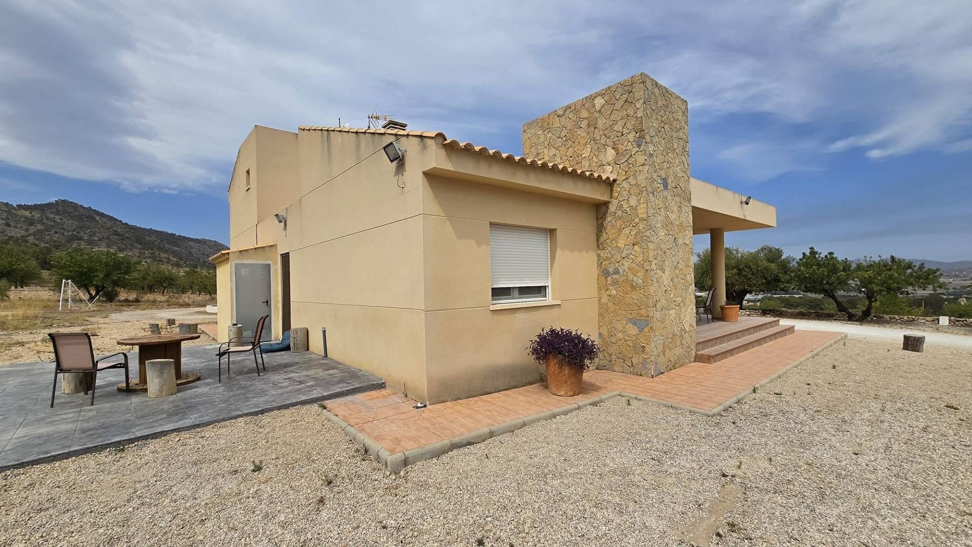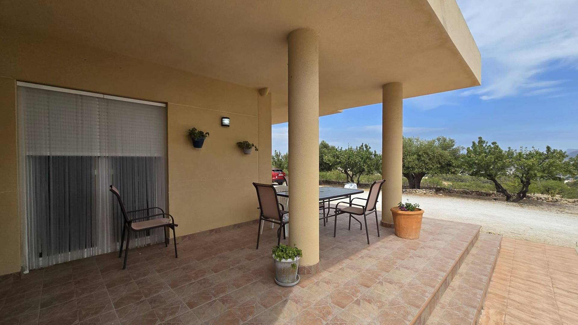Esta moderna villa tiene vistas al pueblo de Salinas, con espectaculares vistas al valle y una encantadora terraza cubierta que rodea dos de los lados de la casa, con vistas a la cocina de verano y la piscina. También dispone de un garaje abierto para dos coches y un portón eléctrico.