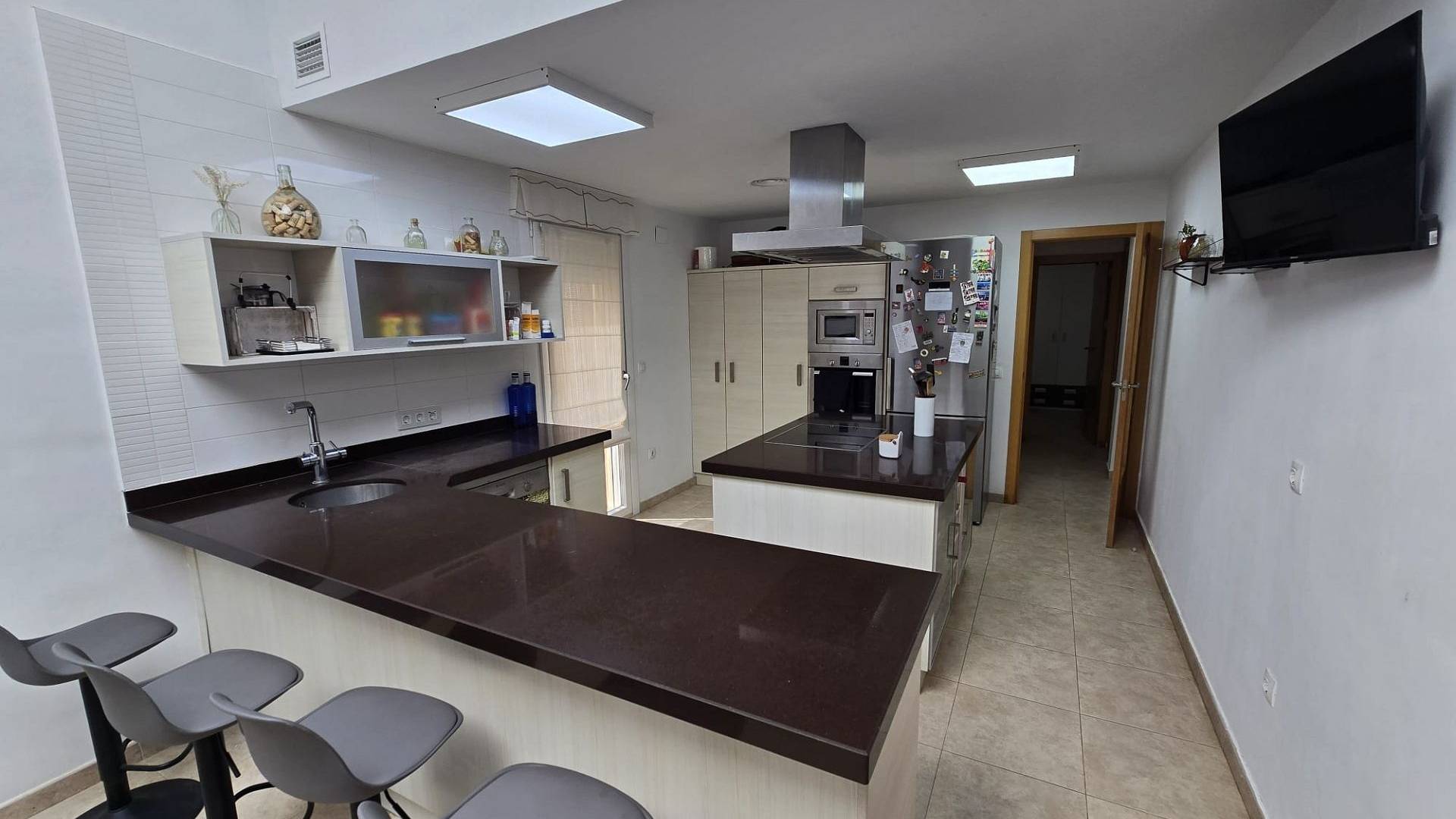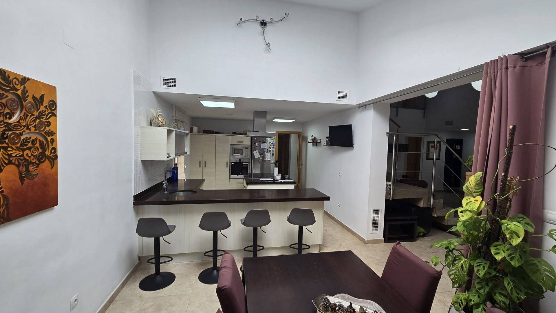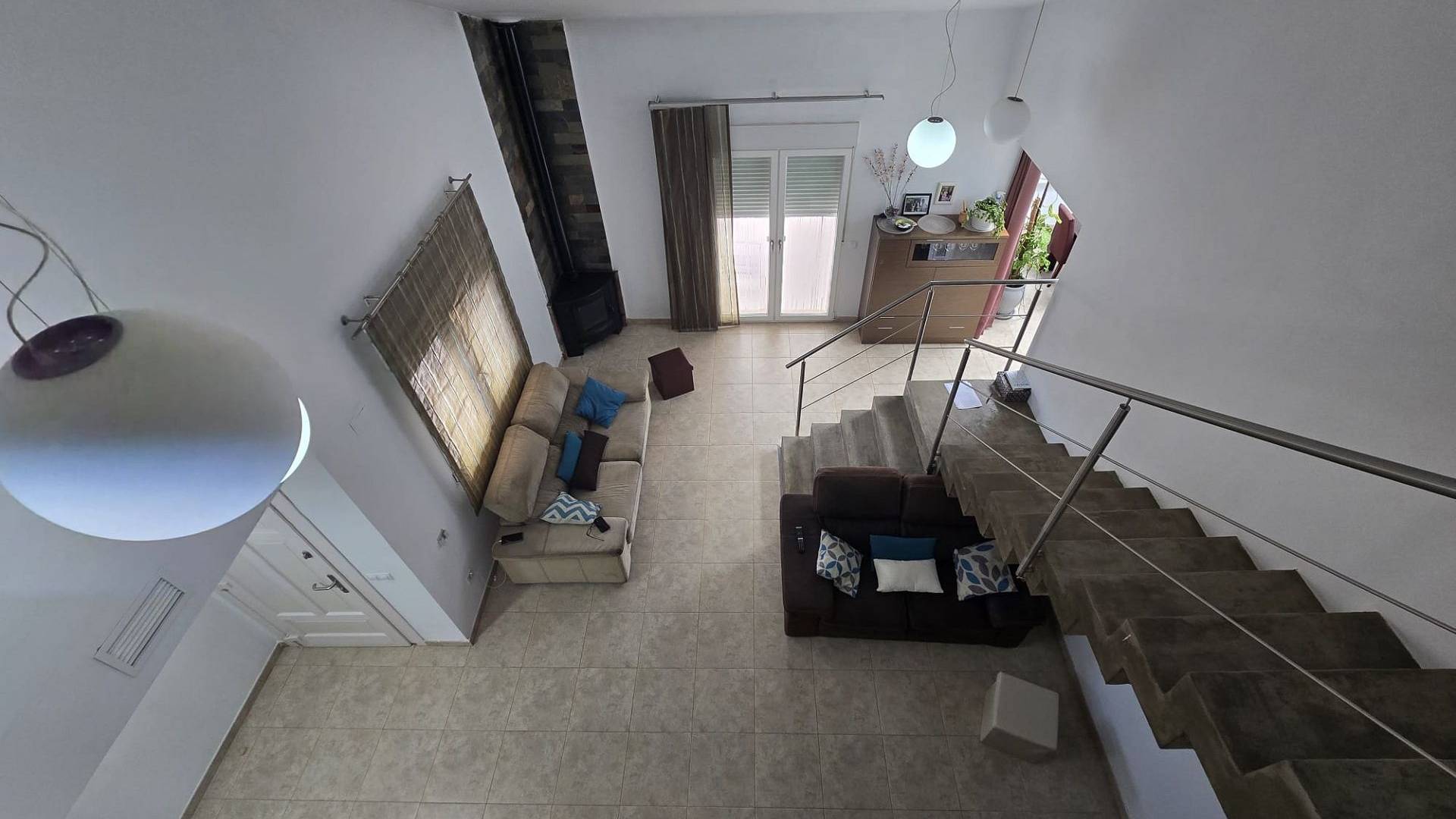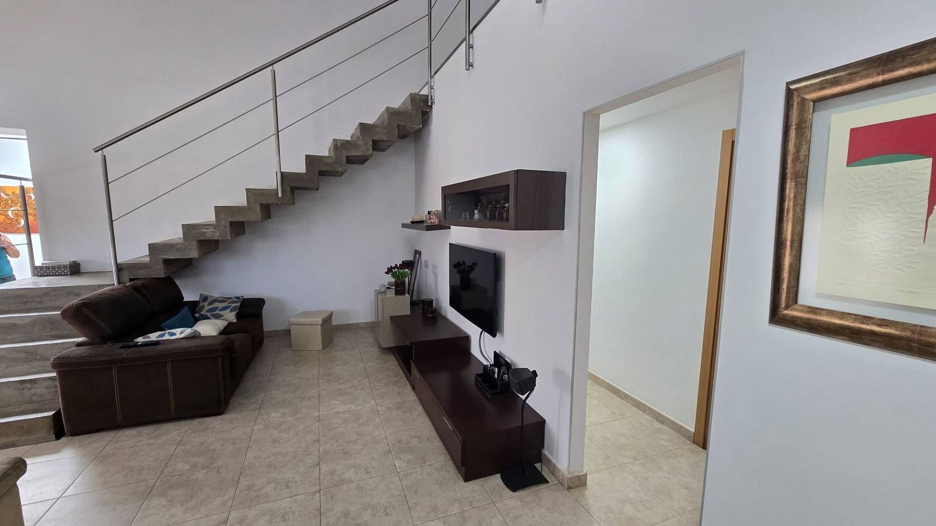 Al entrar a la casa desde la terraza, se abre a un amplio salón con techo de doble altura y escaleras que conducen al dormitorio principal con baño en suite y vestidor. Desde la planta baja, se encuentra la cocina-comedor de concepto abierto, con acceso al exterior. Este conduce a un pasillo que conduce de vuelta al salón, a través de los 3 dormitorios, el baño familiar y los armarios empotrados.