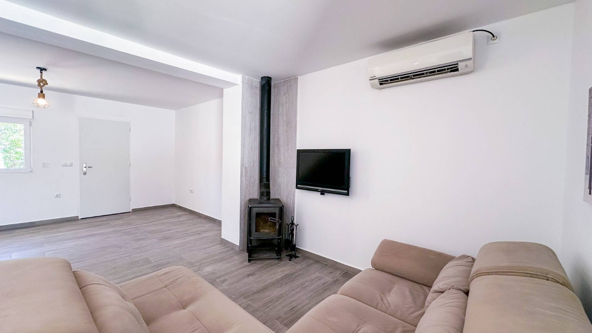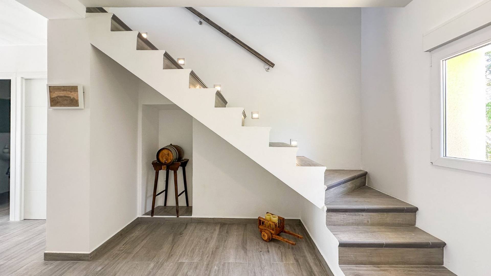 Las ventanas y puertas son de uPVC de alta calidad con doble acristalamiento, y las persianas eléctricas se pueden controlar por Wi-Fi o sistemas inteligentes como Alexa. El aire acondicionado ya está instalado en la planta baja, y la vivienda cuenta además con una estufa de leña que aporta confort en los meses más fríos.