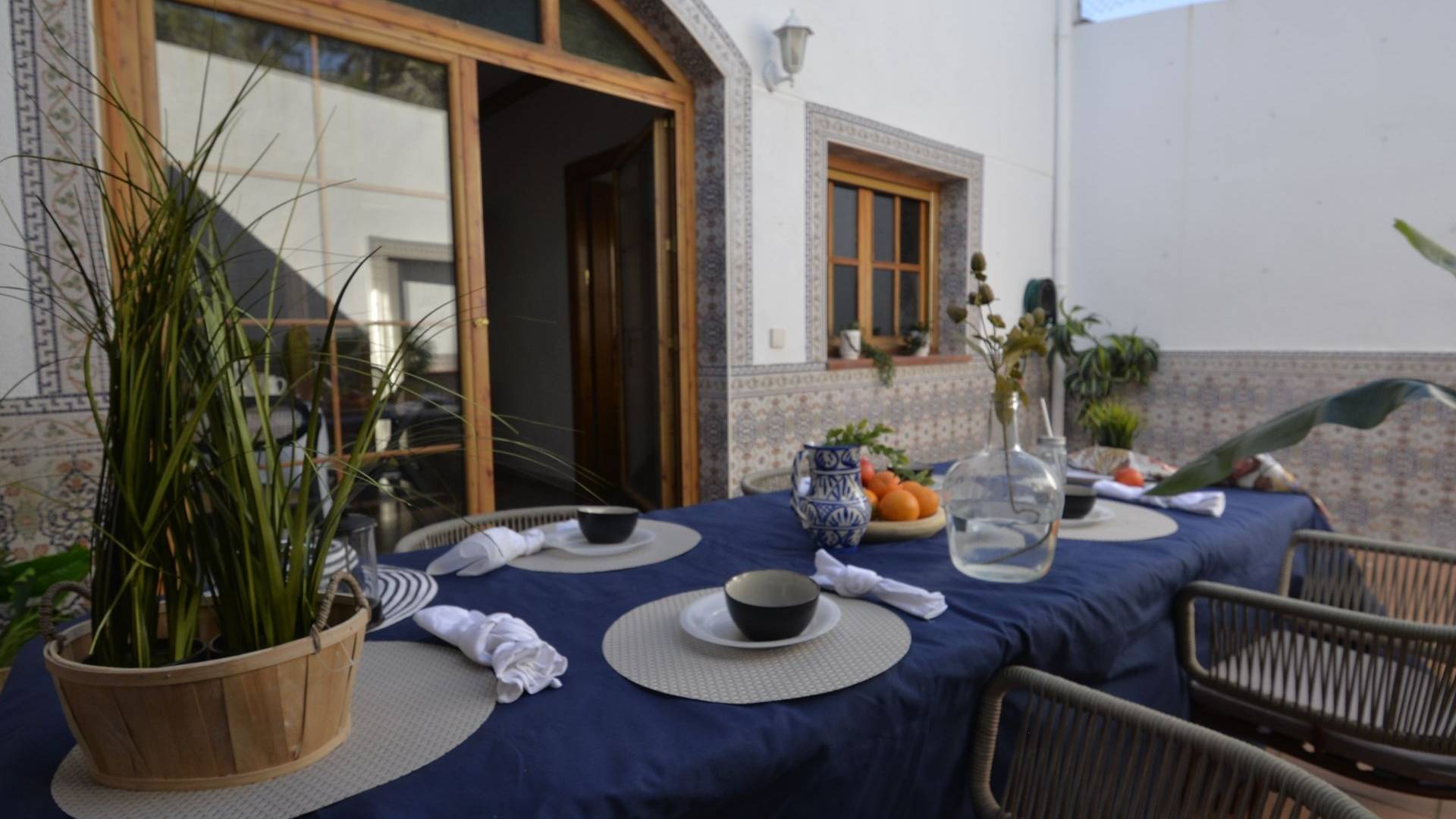La amplia cocina se conecta con un acogedor comedor con chimenea y aire acondicionado, creando el ambiente perfecto para comidas familiares o reuniones. Desde aquí, se accede a un patio de 30 m², ideal para comer al aire libre o relajarse al aire libre. Una escalera conduce a una impresionante terraza en la azotea de 50 m² con vistas panorámicas, ideal para atardeceres o reuniones de verano.
