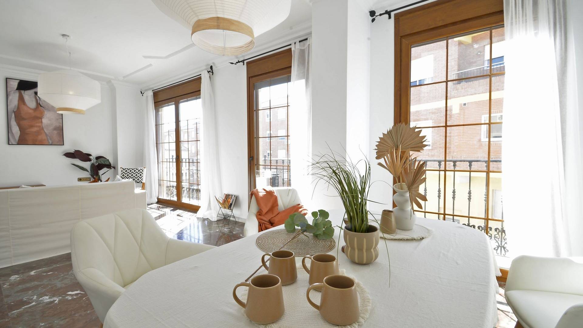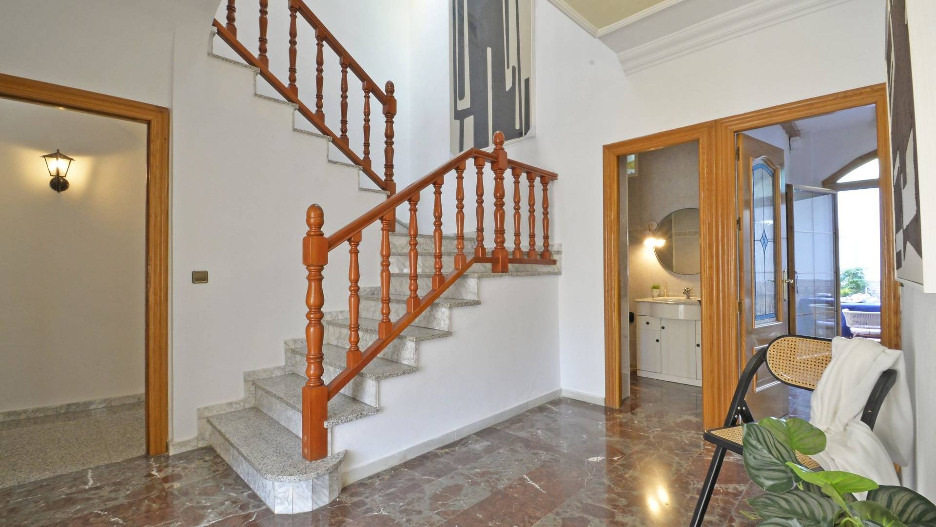 Accesible tanto desde el garaje como desde una entrada trasera en una calle paralela, la primera planta le da la bienvenida con suelos de mármol brillante y un pasillo con claraboya. El espacioso salón-comedor está equipado con aire acondicionado y bomba de calor para mayor comodidad durante todo el año.