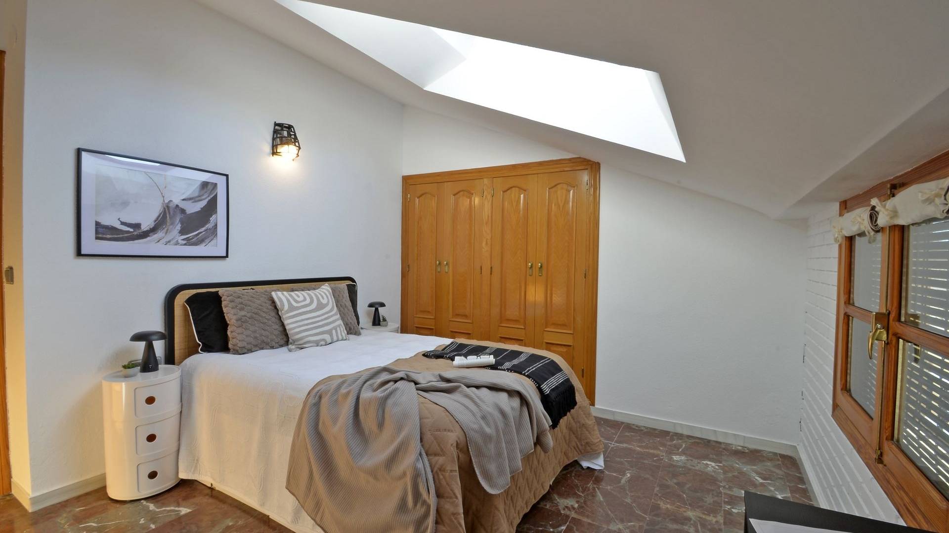 La segunda planta, de 85 m², cuenta con dos habitaciones abuhardilladas con claraboyas, un baño completo y dos dormitorios adicionales. Uno es un espacio tranquilo ideal para trabajar o estudiar, mientras que el otro es una suite privada con baño en suite. Todos los dormitorios cuentan con armarios empotrados, y la ausencia de vecinos en la planta superior garantiza total privacidad y tranquilidad.
