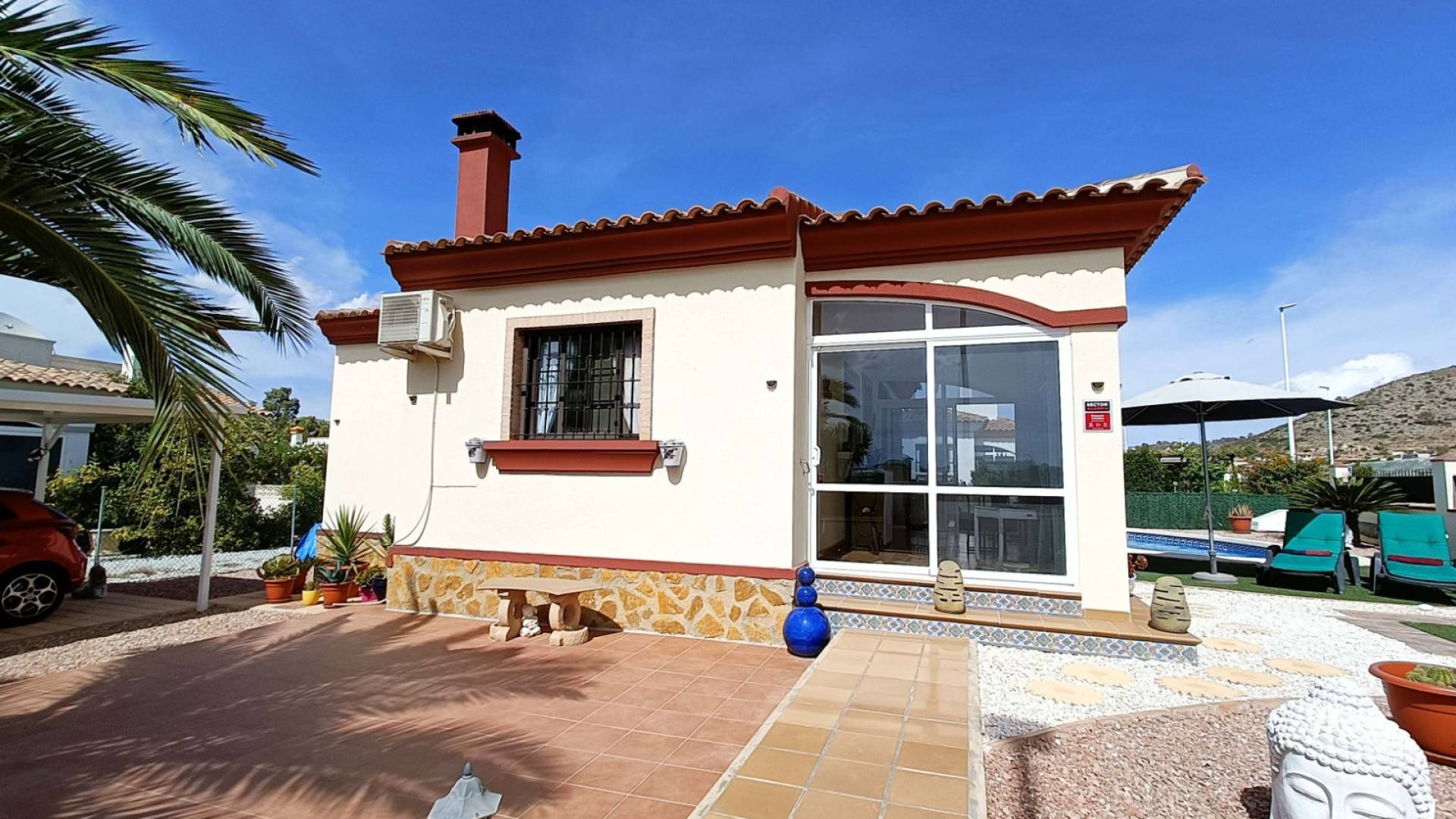 Imagina despertar cada mañana rodeado de viñedos y montañas, con el sol mediterráneo acariciando tu jardín privado. Esta villa en la codiciada urbanización de La Montañosa te ofrece exactamente eso: tranquilidad, privacidad y un estilo de vida donde cada detalle está pensado para tu confort.