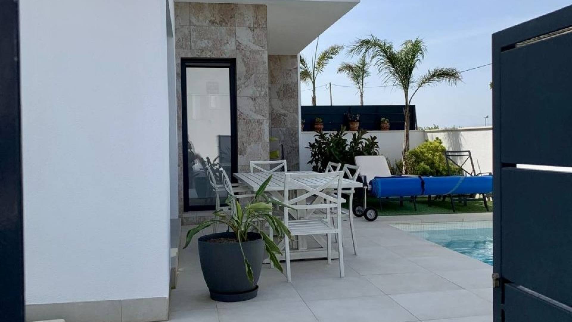A solo 10 minutos de las playas, esta villa cuenta con una preciosa piscina, salón, cocina abierta, lavadero, 1 dormitorio doble y baño en la planta baja, 2 dormitorios dobles con baños en suite y un precioso solárium en la azotea. También hay un trastero anexo al exterior de la casa.