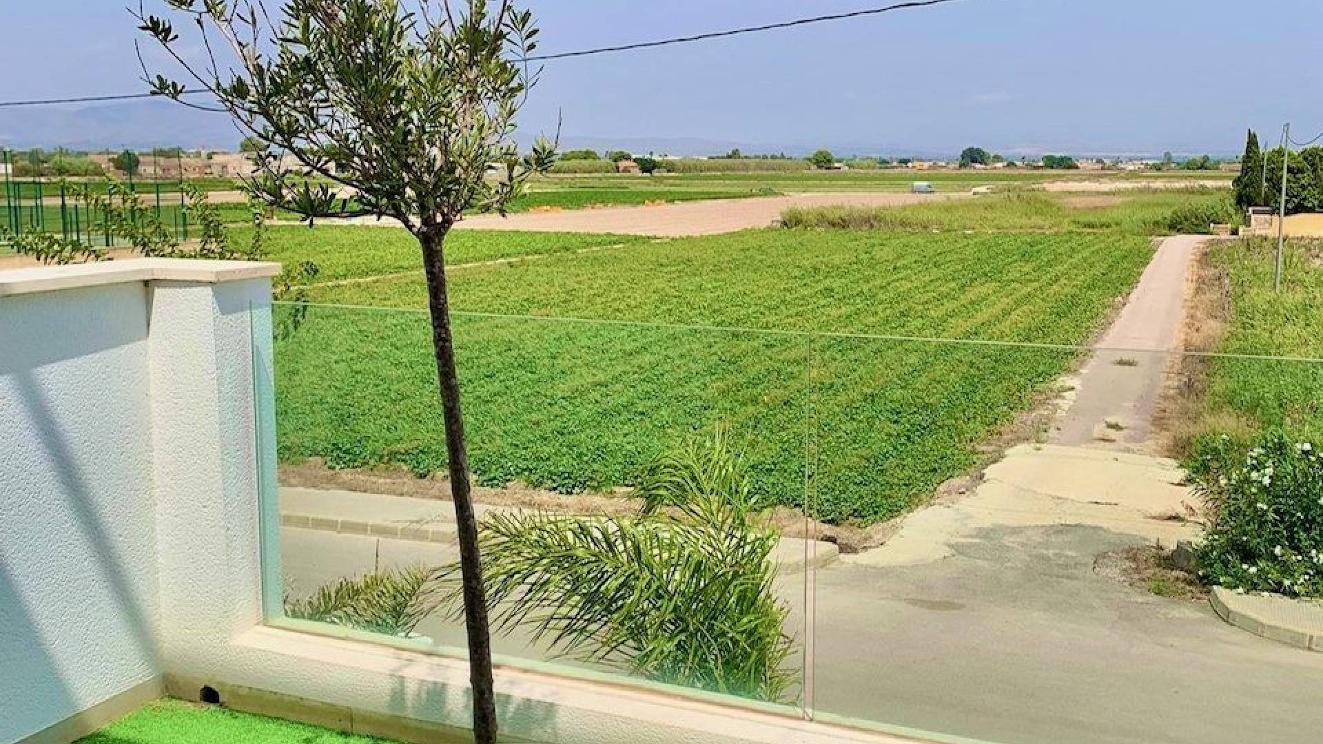 La villa se encuentra en una parcela de 188 m² frente a terrenos agrícolas no edificables, lo que garantiza unas vistas siempre preciosas al campo.