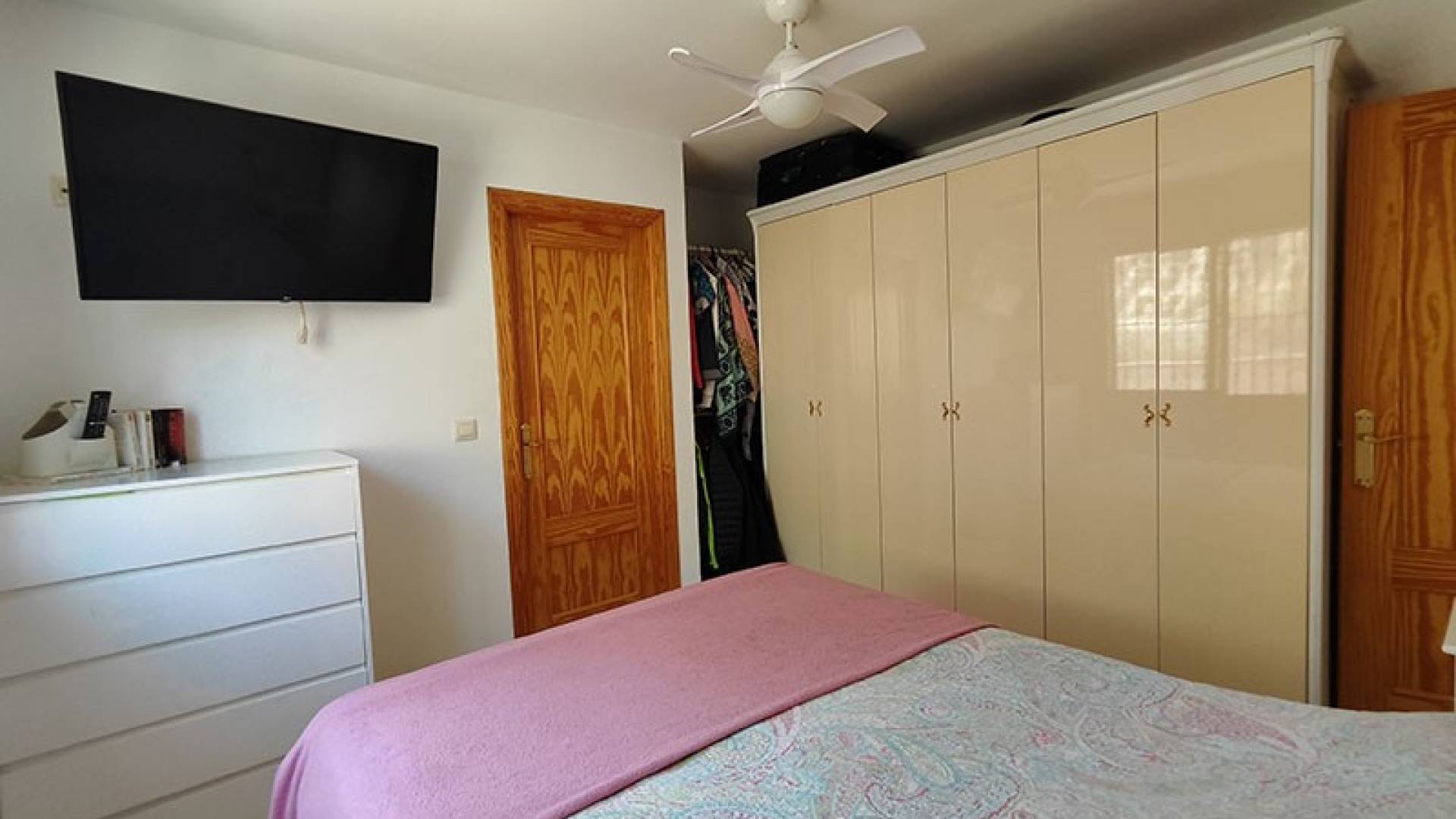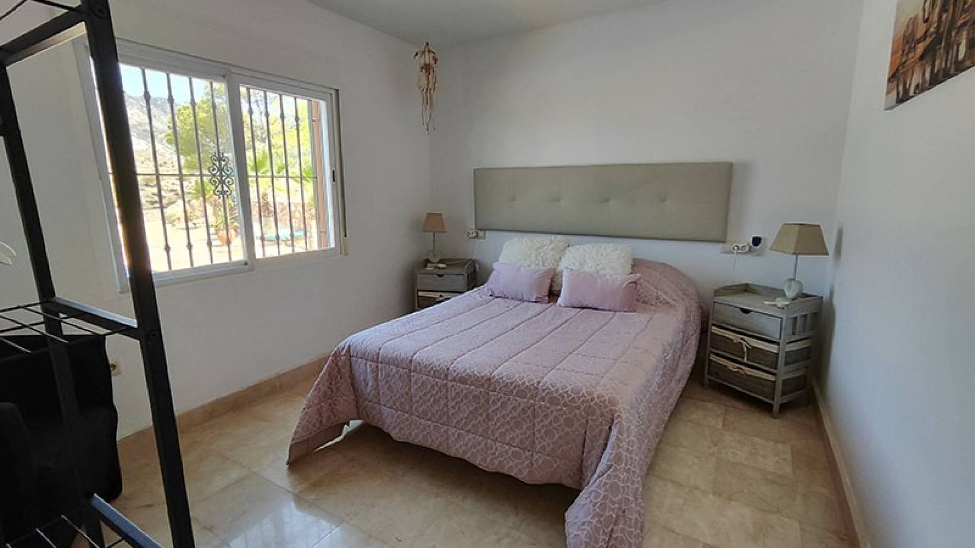 Tenemos un bonito dormitorio de invitados con vistas a la piscina, el dormitorio principal con su cuarto de baño privado y los dos últimos dormitorios, que comparten un segundo cuarto de baño.
