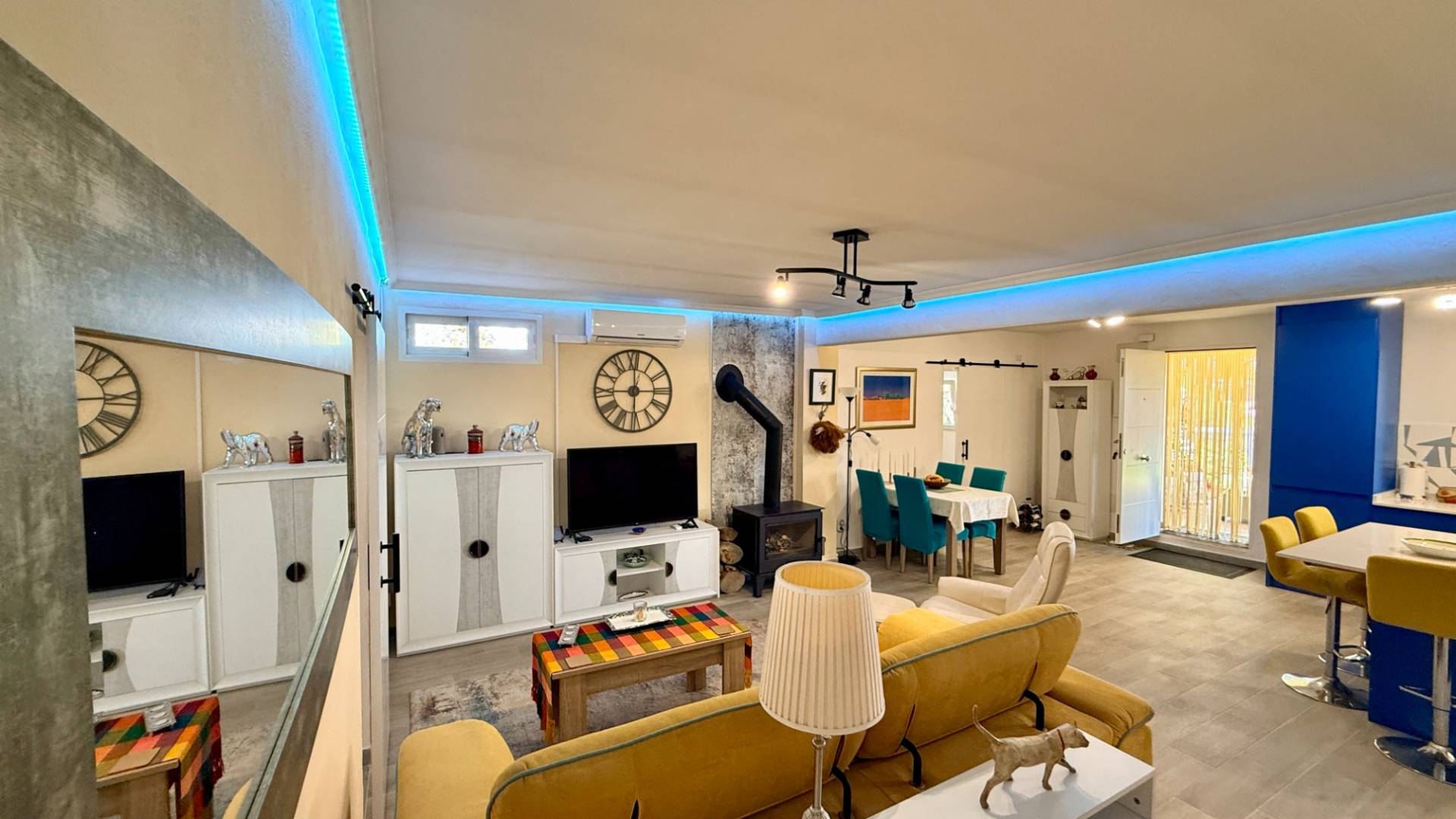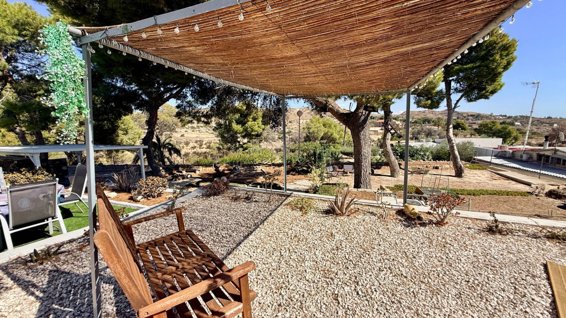 Imagine vivir en un entorno campestre tranquilo con vistas al paisaje español, a solo unos minutos del mercado de Aspe y de la vibrante ciudad de Elche. Esta villa reformada ofrece comodidad moderna, encantadores espacios exteriores y un huerto floreciente: la combinación perfecta de encanto rústico y vida contemporánea. Características principales Ubicación privilegiada entre Aspe y Elche con preciosas vistasCompletamente renovada de arriba abajo en los últimos añosAmplio porche sombreado (Nea) — ideal para vivir al aire libre todo el añoSalón, comedor y cocina de planta abierta4 dormitorios, incluido principal con vestidor tipo galeríaBaño familiar moderno y armario de almacenamientoAire acondicionado y conexiones principales (agua, luz, internet)Sala de 30m² independiente — ideal como apartamento, gimnasio o tallerJardines ajardinados con terrazas, zonas de sombra, rocallas y huertoÁrboles maduros en el jardín que ofrecen sombra natural en verano ResumenUna villa reformada con 4 dormitorios que combina interiores modernos, espacios exteriores sombreados, un huerto maduro y un sinfín de posibilidades para crear tu refugio soñado entre Aspe y Elche.
