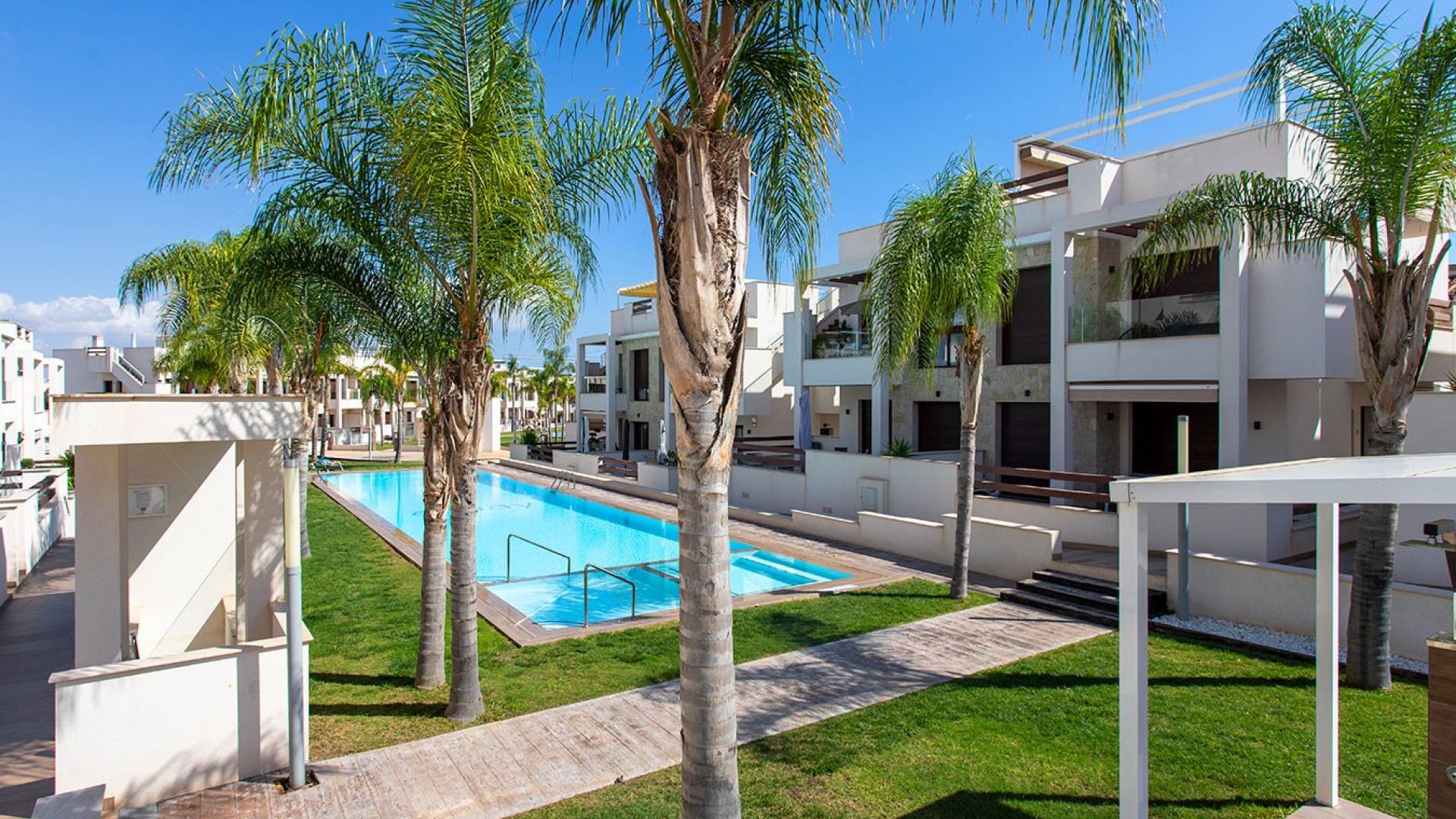 ¿Buscas un lugar ideal bajo el sol español? Este encantador y listo para entrar a vivir apartamento en planta baja estilo bungalow en la popular zona de Los Balcones tiene todo lo que necesitas si valoras la comodidad, la tranquilidad y el estilo de vida mediterráneo. Construido en 2020, totalmente amueblado, con cocina abierta, dos dormitorios, dos baños modernos y aire acondicionado, todo lo necesario para sentirte como en casa desde el primer día. Lo que hace especial a este apartamento son sus dos amplias terrazas que suman 36 m². Empieza el día con un café al sol, disfruta de un buen libro o comparte una barbacoa con familia o amigos. ¡Aquí se vive al aire libre! A tan solo 3,5 km de la playa, el mar está siempre cerca. La vivienda forma parte de una urbanización bien cuidada con un precioso jardín y piscina comunitaria ¡vivir aquí es como estar de vacaciones todo el año! Tendrás todos los servicios cerca: supermercados, restaurantes, cafeterías, farmacias... Y no te preocupes por el aparcamiento ni el almacenamiento: incluye plaza de parking privada y un trastero (3,22 m²). Resumen: Año de construcción: 2020 Superficie: 63 m² 2 dormitorios y 2 baños Cocina americana y aire acondicionado 2 terrazas (36 m²) Piscina y jardín comunitarios Plaza de aparcamiento + trastero A solo 3,5 km de la playa Totalmente amueblado – ¡haz las maletas y empieza a disfrutar! ¿Suena como tu hogar ideal en España? ¡No esperes más! Contáctanos para una visita. ¡Quizás muy pronto estés viviendo en soleado Los Balcones! Información adicional: IBI (impuesto de bienes inmuebles): 211,11 € al año