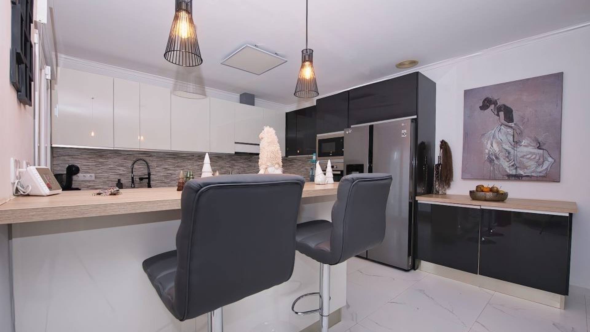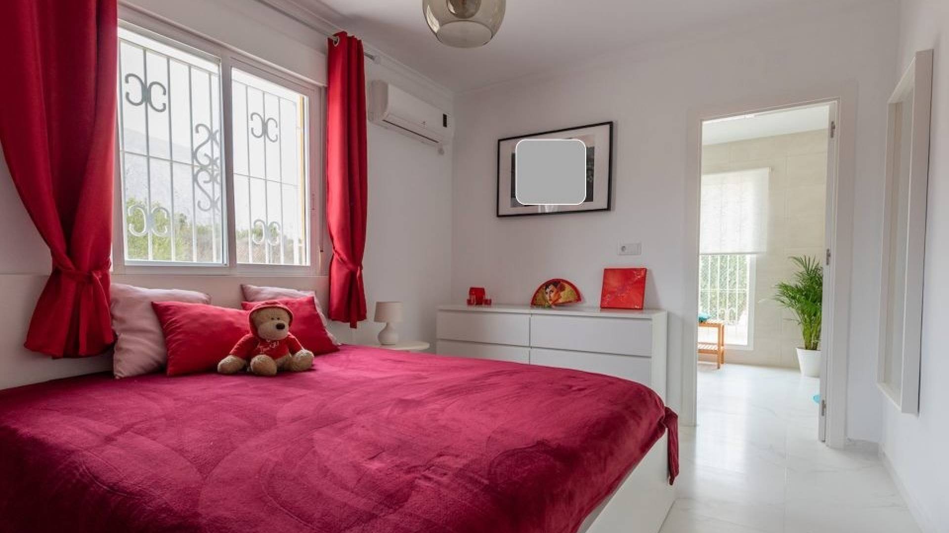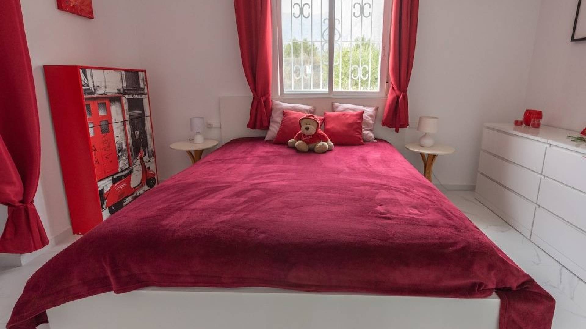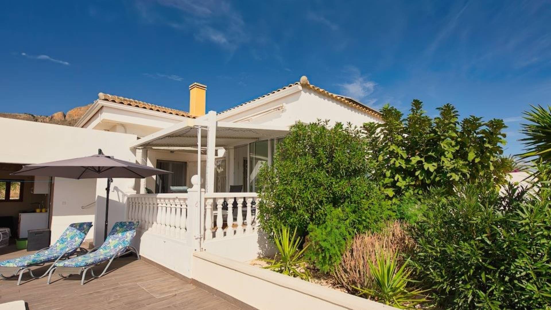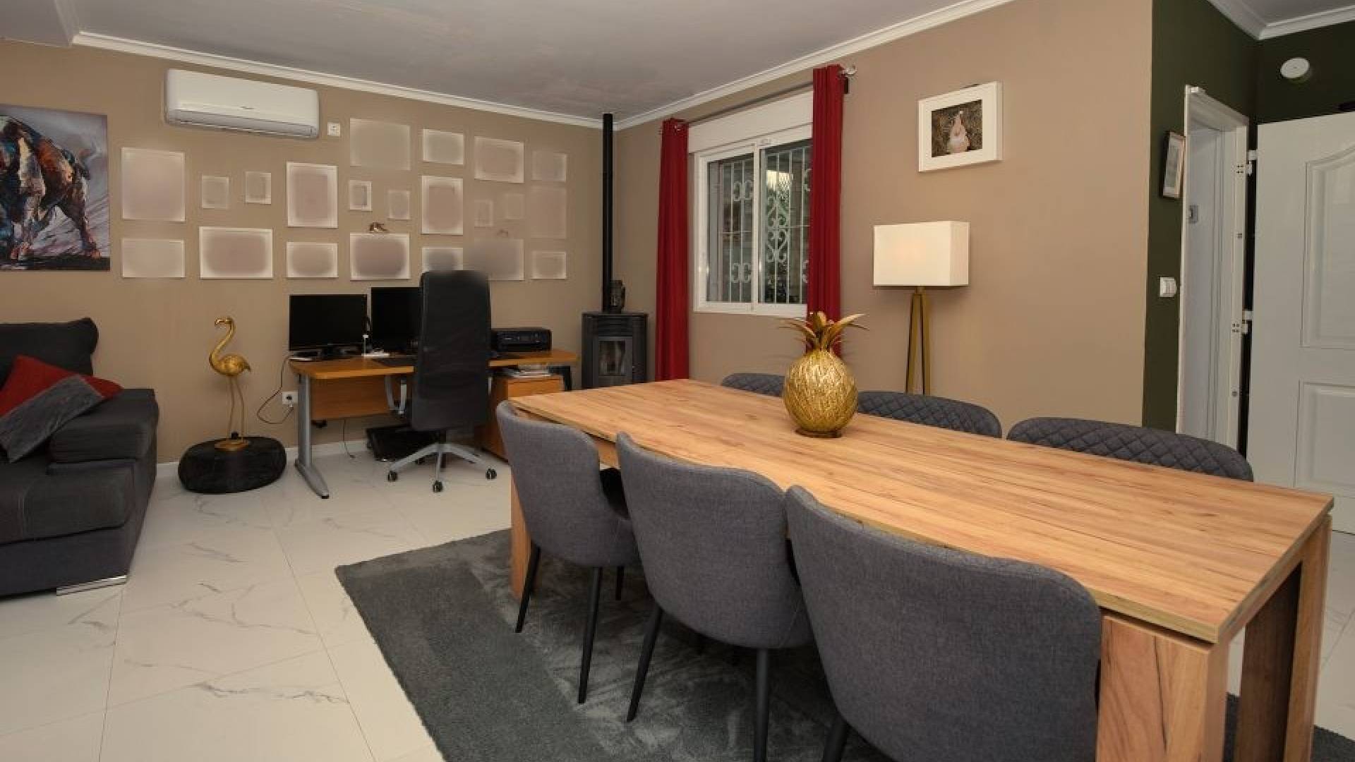 Actualmente la villa cuenta con dos amplios dormitorios, ya que el tercero se ha abierto para ampliar la sala de estar. No obstante, es muy sencillo recuperar la tercera habitación original si se desea.