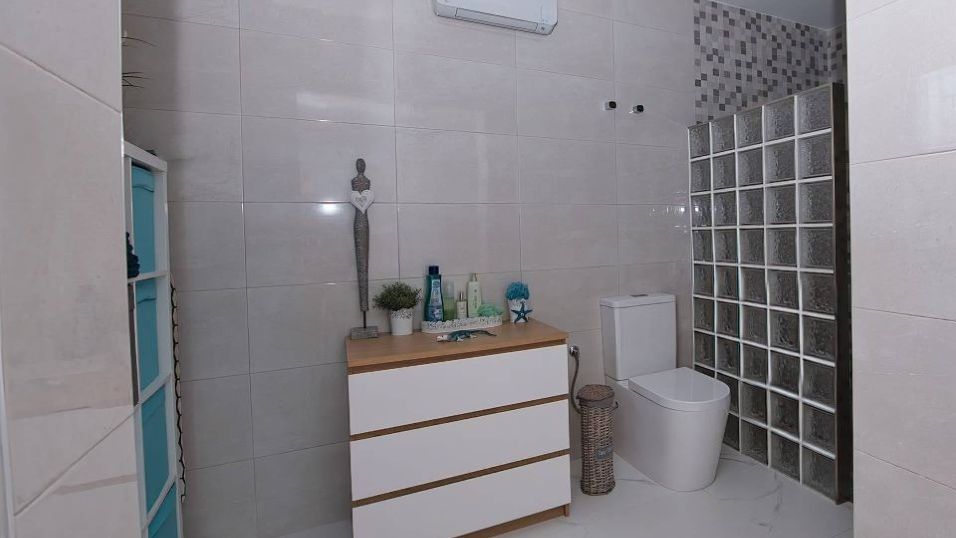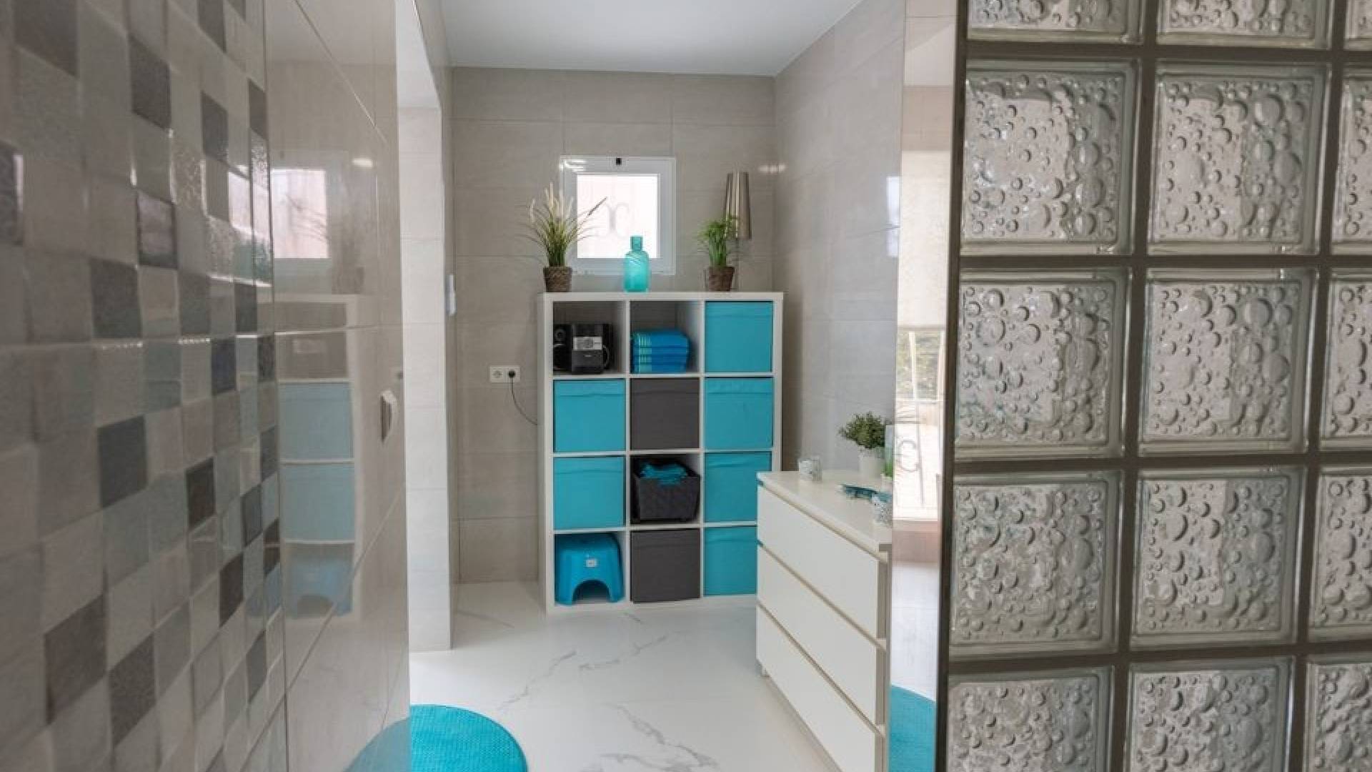 Dispone de dos baños modernos con ducha a ras de suelo, uno de ellos en suite con vestidor.