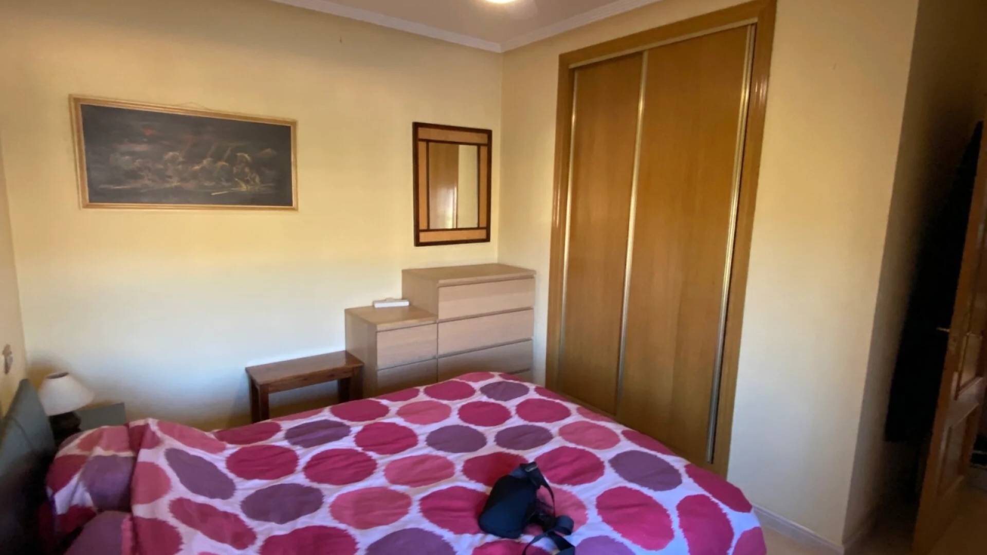 El dormitorio principal dispone de armarios empotrados, aire acondicionado, ventilador de techo, calefacción central y baño en suite con bañera, ducha, inodoro y lavabo. Dos dormitorios dobles adicionales cuentan con armarios empotrados, ventiladores de techo y calefacción central, compartiendo un baño familiar con ducha doble.