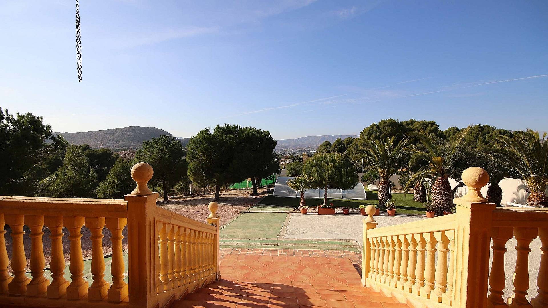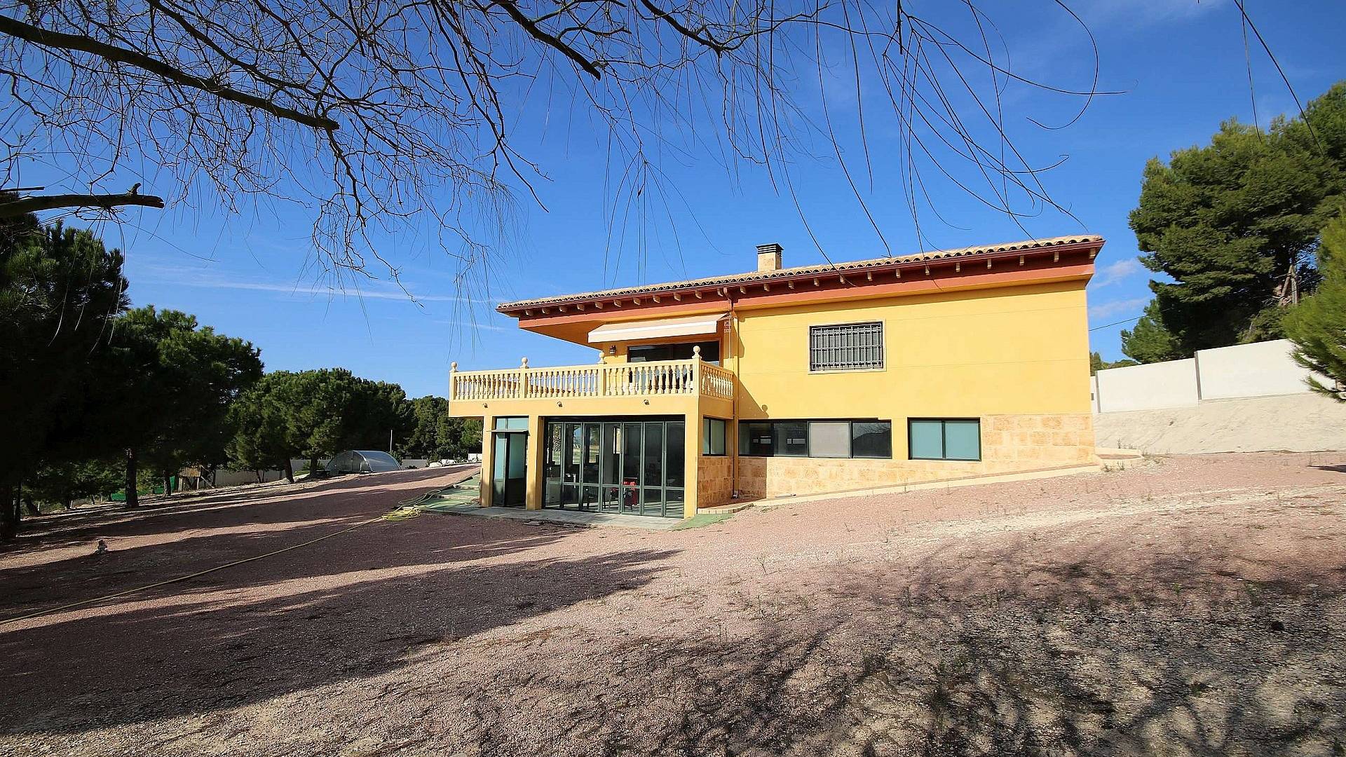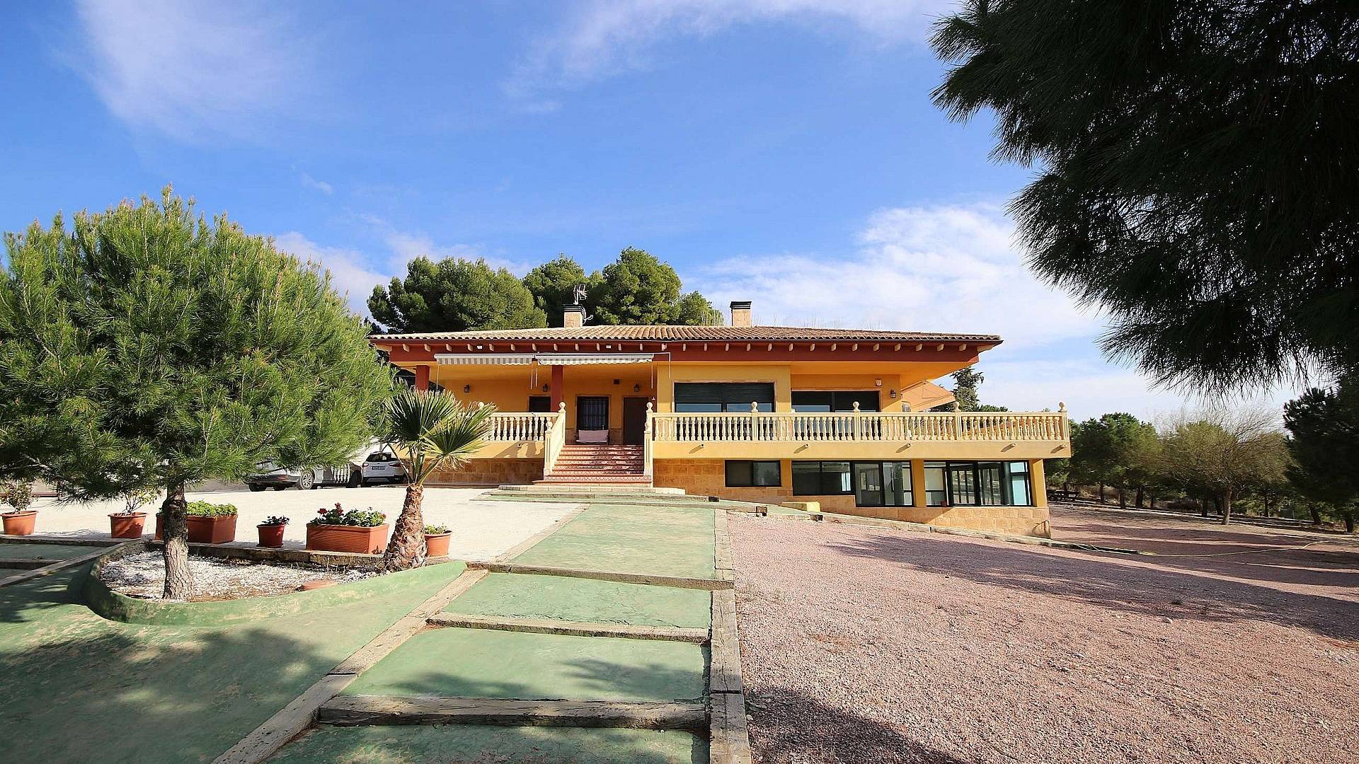 Gran chalet independiente con piscina cerca del pueblo en Elda / Petrer. Tiene 4 dormitorios, 2 baños, salón-comedor, cocina y lavadero en la planta principal, y un gran sótano con baño y cocina pequeña, y potencial para más dormitorios, como apartamento independiente. Afuera hay una bonita piscina con una cubierta deslizante y con césped artificial circundante y excelentes vistas. Construido en 2003. El tamaño de la casa es de 550m² y el tamaño de la parcela 4200m², totalmente vallada.
