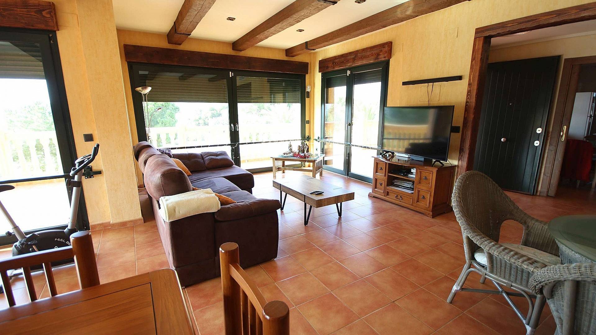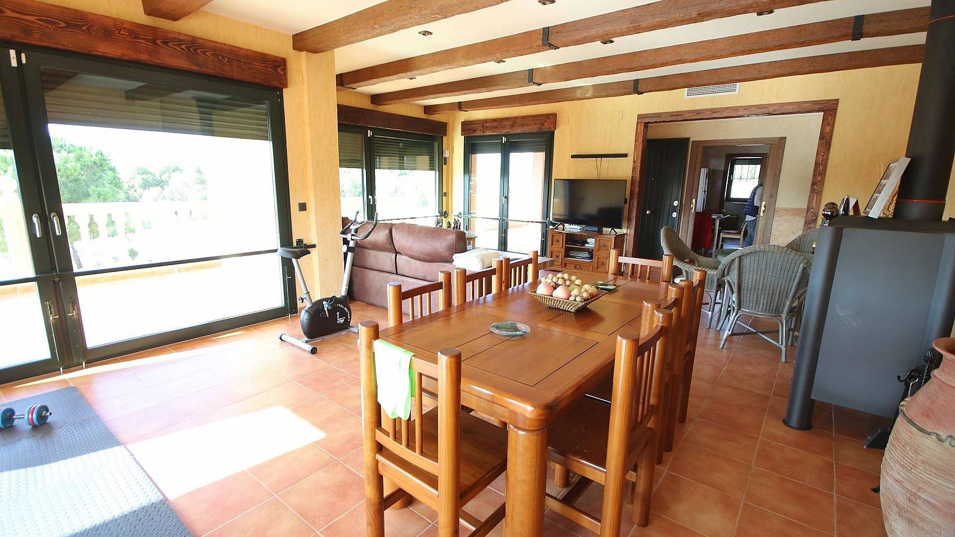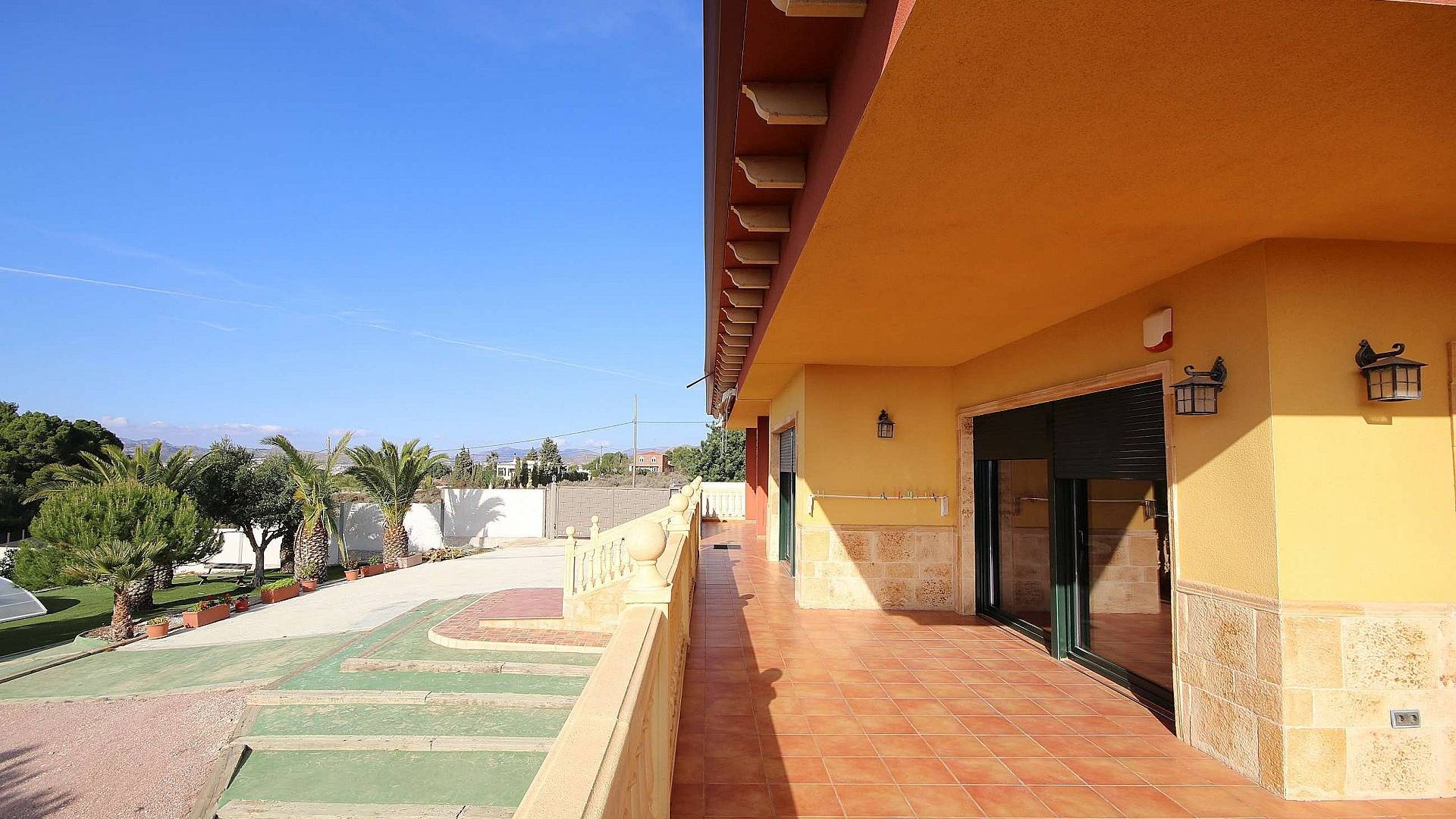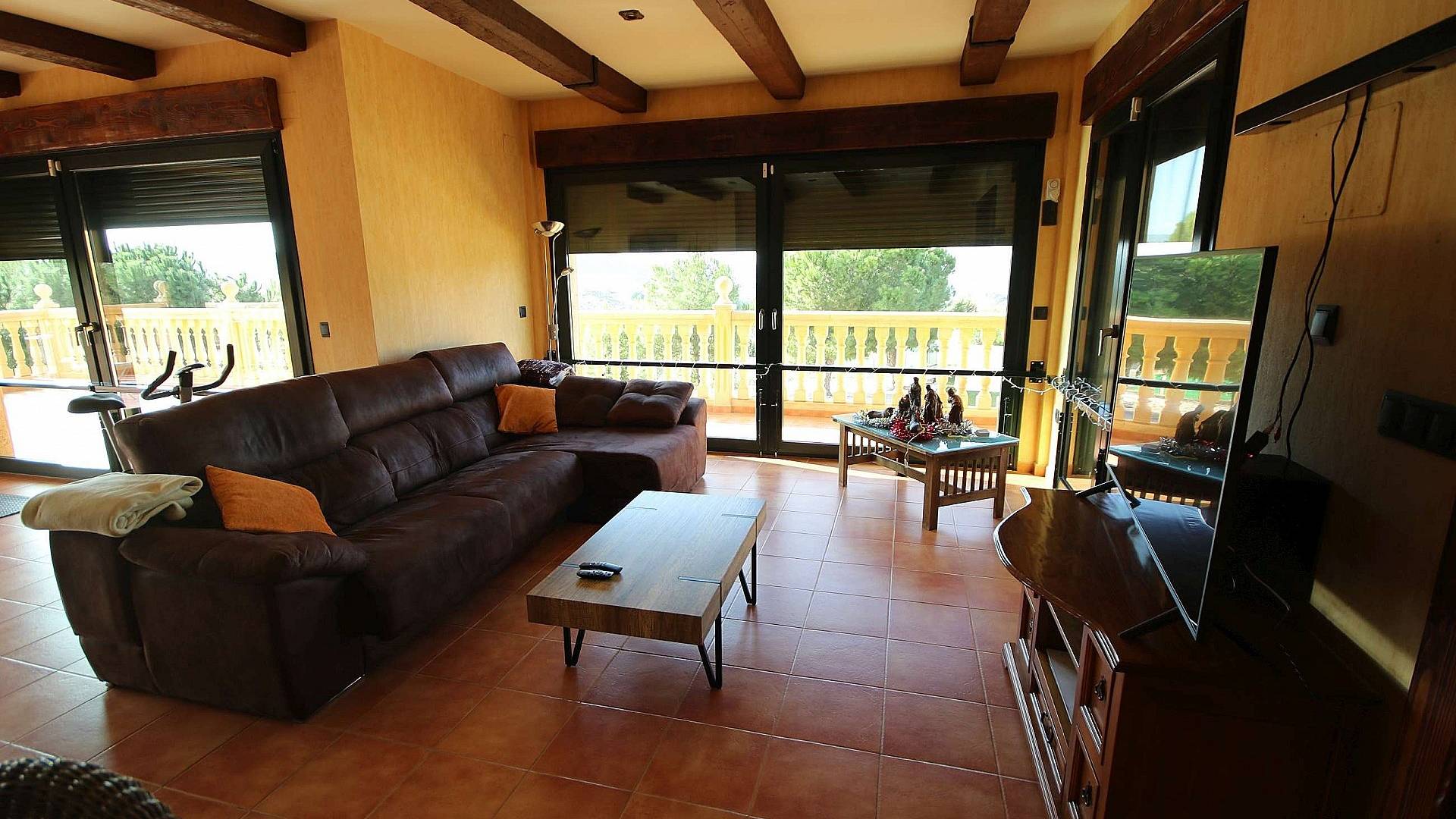 Gran chalet independiente con piscina cerca del pueblo en Elda / Petrer. Tiene 4 dormitorios, 2 baños, salón-comedor, cocina y lavadero en la planta principal, y un gran sótano con baño y cocina pequeña, y potencial para más dormitorios, como apartamento independiente. Afuera hay una bonita piscina con una cubierta deslizante y con césped artificial circundante y excelentes vistas. Construido en 2003. El tamaño de la casa es de 550m² y el tamaño de la parcela 4200m², totalmente vallada.