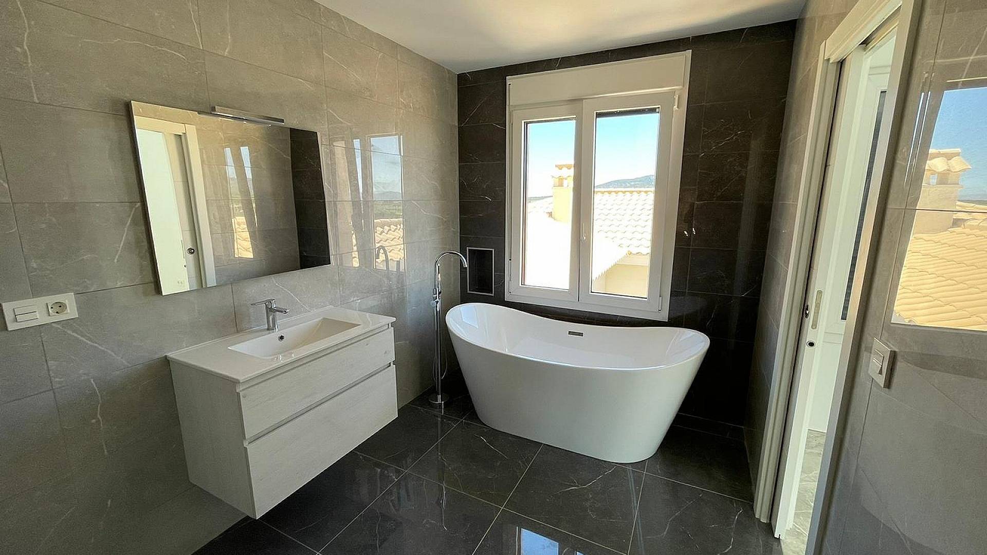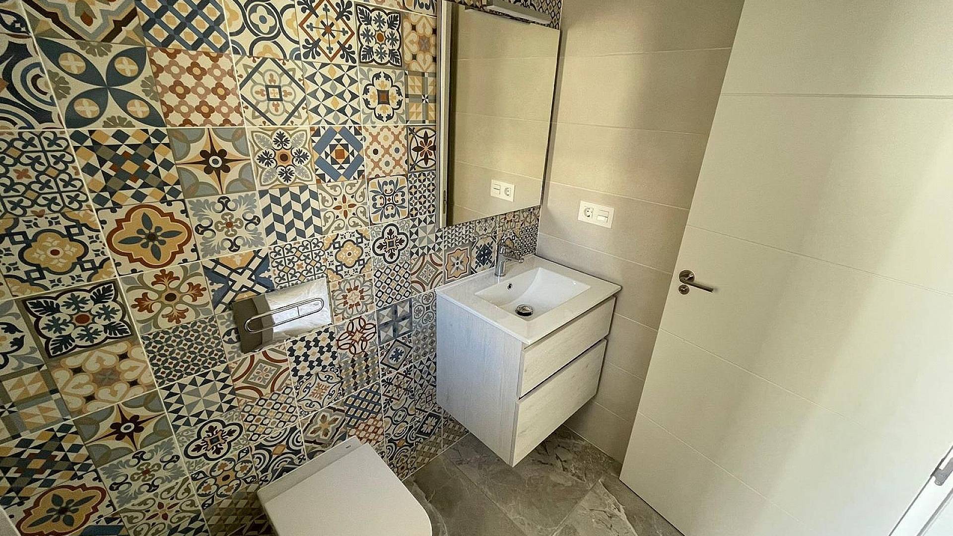 Los baños incluyen columna de ducha, plato de ducha o bañera, lavabos (en varios colores a elegir) con lavabos, grifería y espejos, además de una amplia selección de azulejos de pared y suelos cerámicos de diferentes colores, efecto madera, etc.