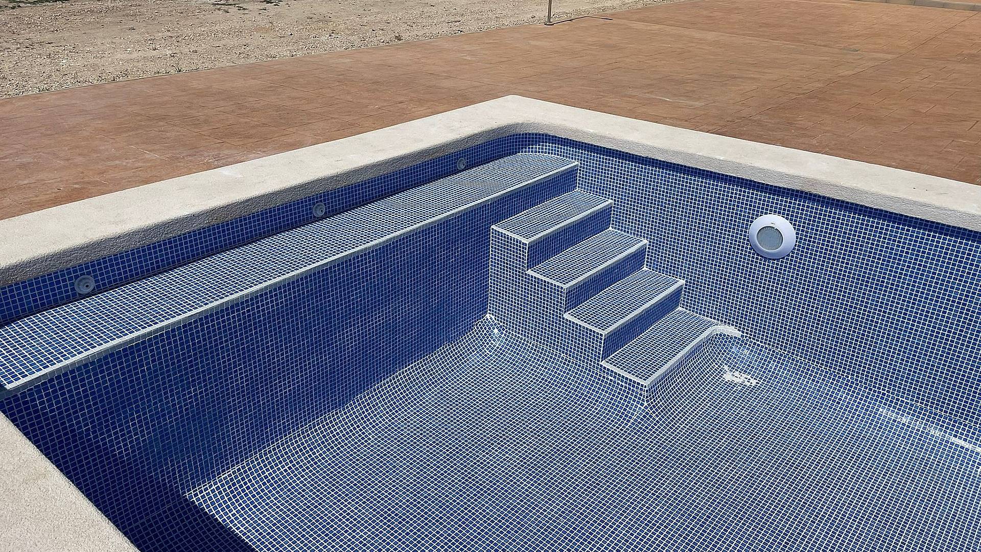 Alicatado y diseño de peldaños para la piscina a elegir. Granito a elegir para los peldaños exteriores y los alféizares de las ventanas.