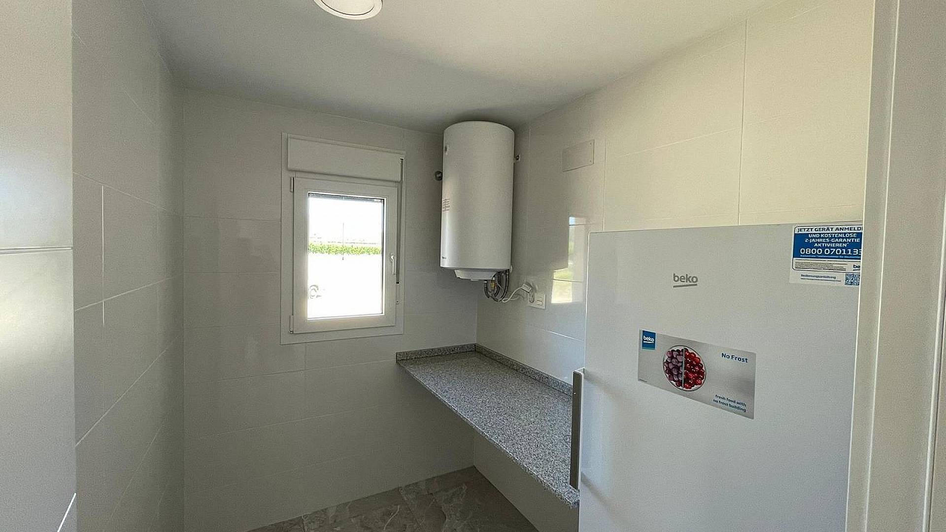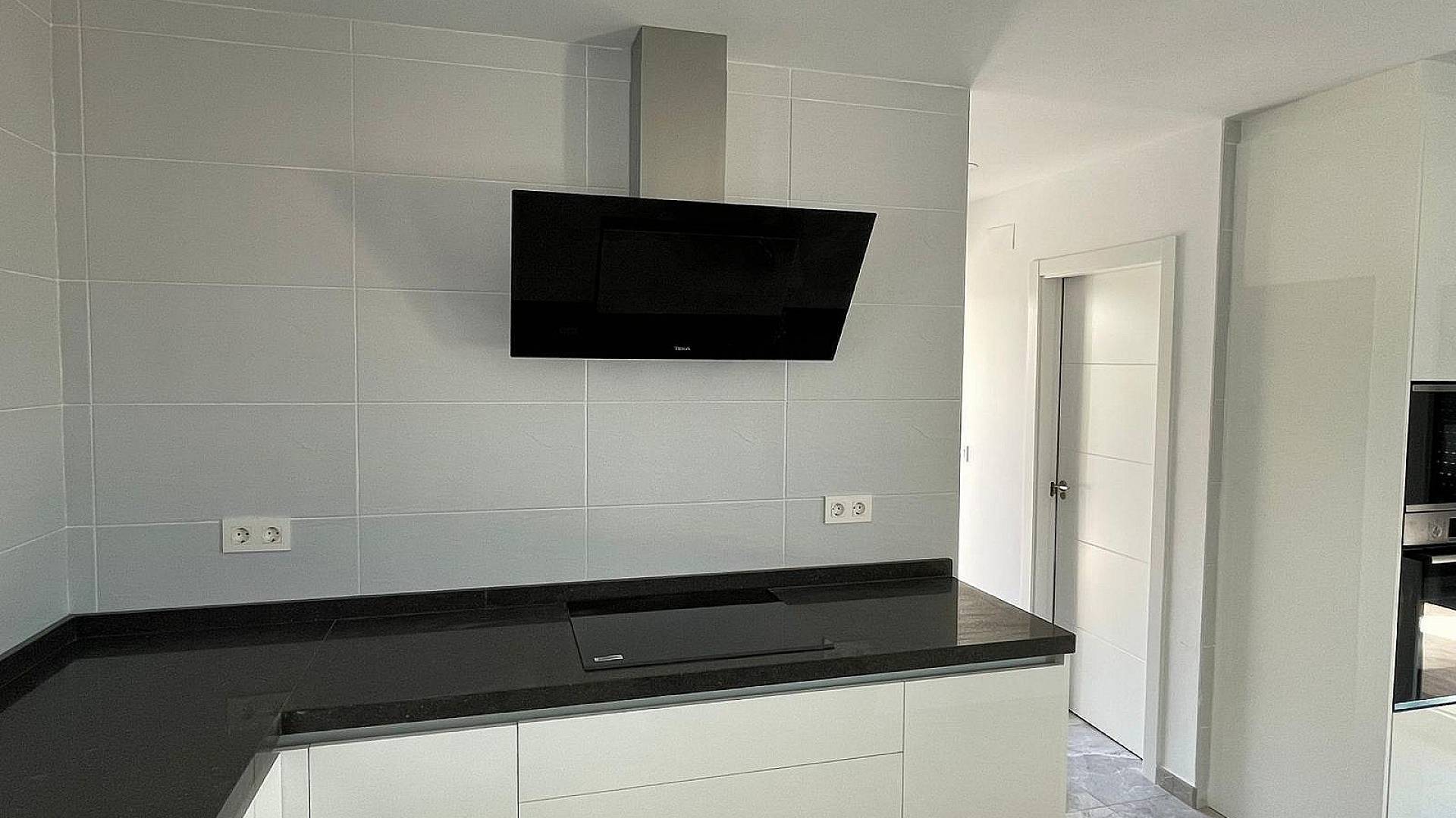 Las cocinas incluyen armarios con puertas y tiradores estándar, según planos, fregadero y grifería de acero inoxidable, preinstalación de horno, lavavajillas, extractor y varias encimeras de granito a elegir, incluidas en el presupuesto (otras encimeras de piedra disponibles con coste adicional). Electrodomésticos no incluidos.