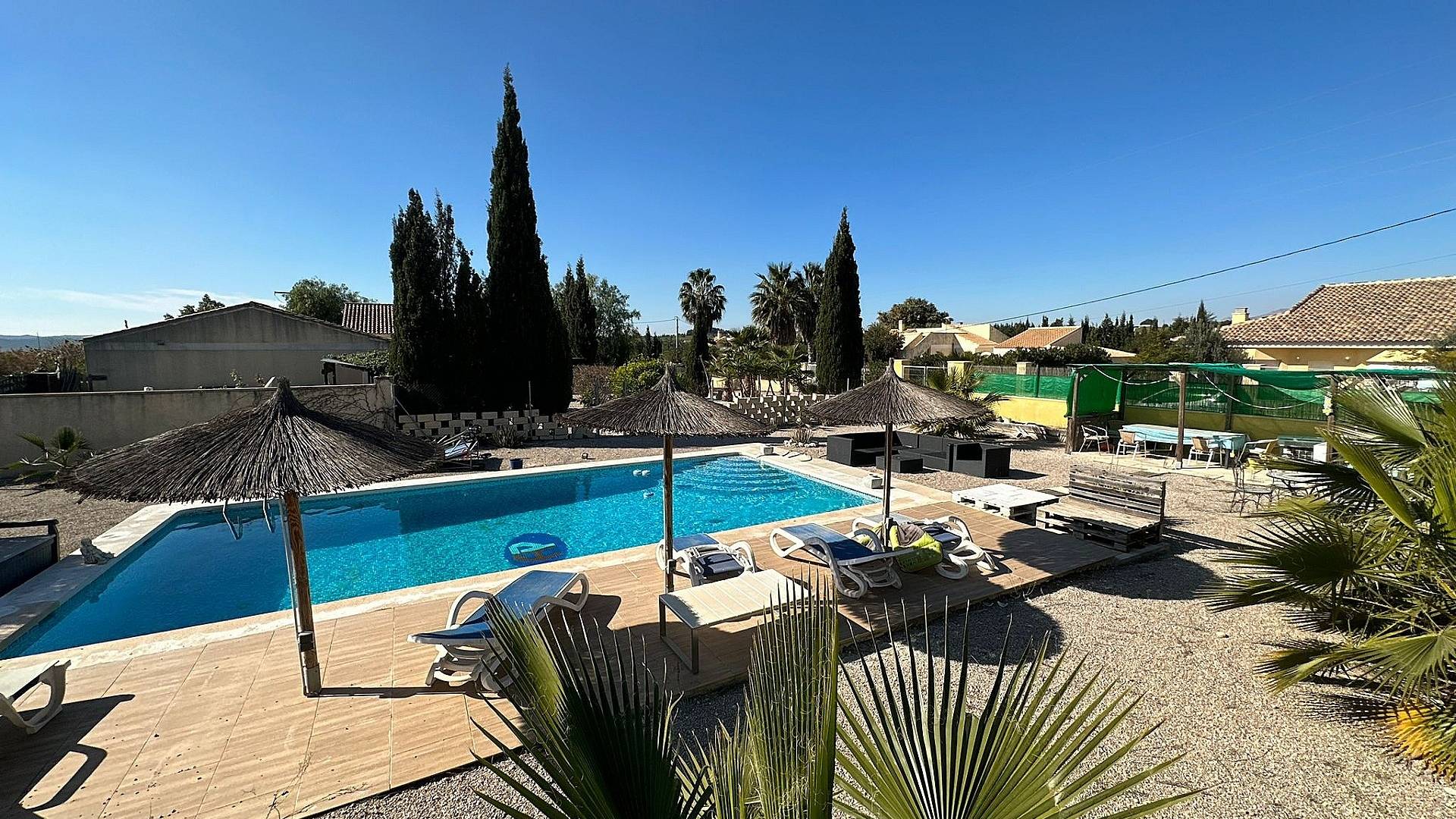 La propiedad se encuentra en una hermosa parcela completamente vallada, lo que brinda privacidad y mucho espacio en el jardín para disfrutar. También existe la opción de agregar su propia piscina, lo que la convierte en un refugio al aire libre ideal. Sin embargo, para mayor comodidad, hay una piscina comunitaria cerca, que ofrece un excelente lugar para relajarse y refrescarse.
