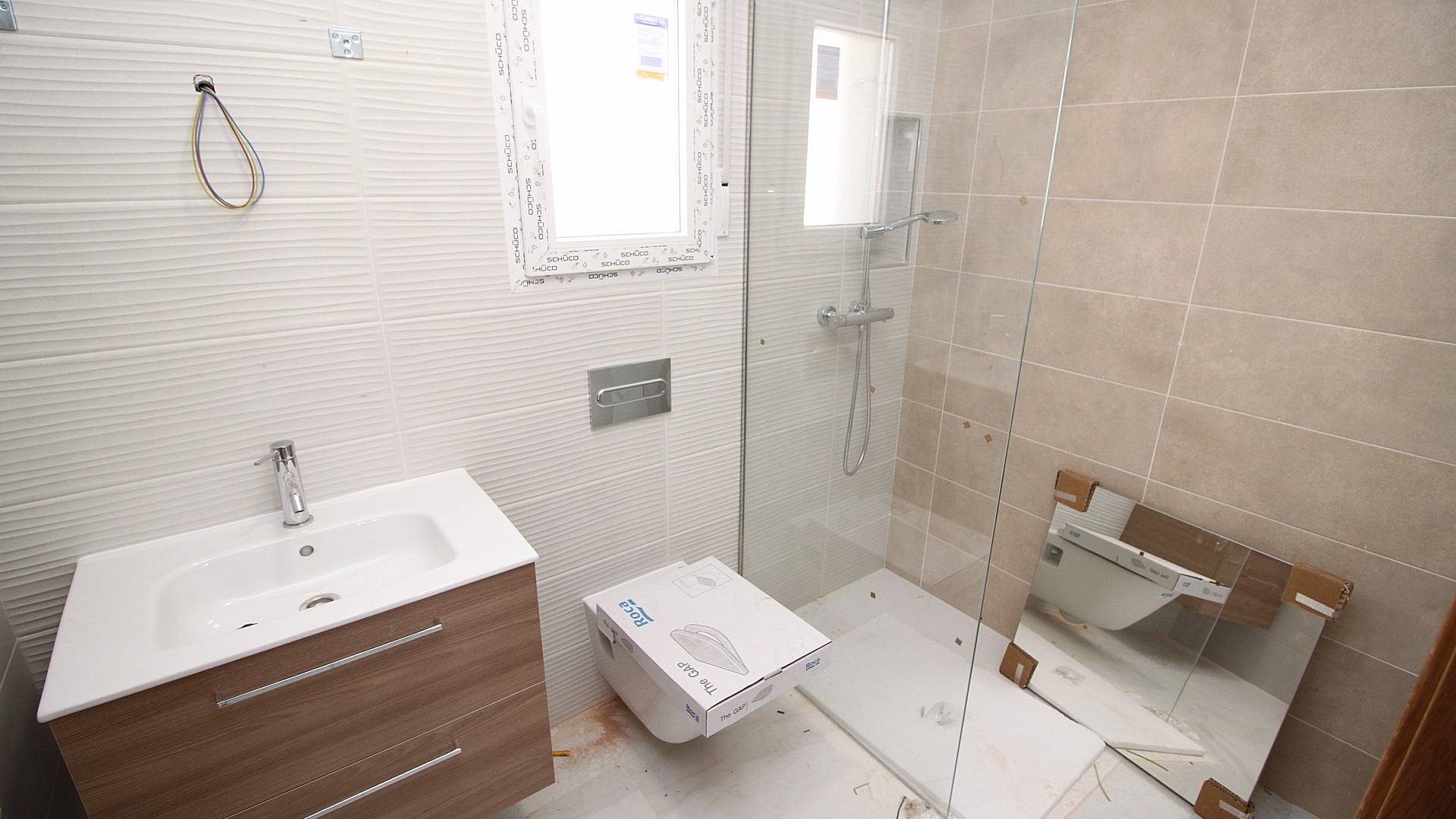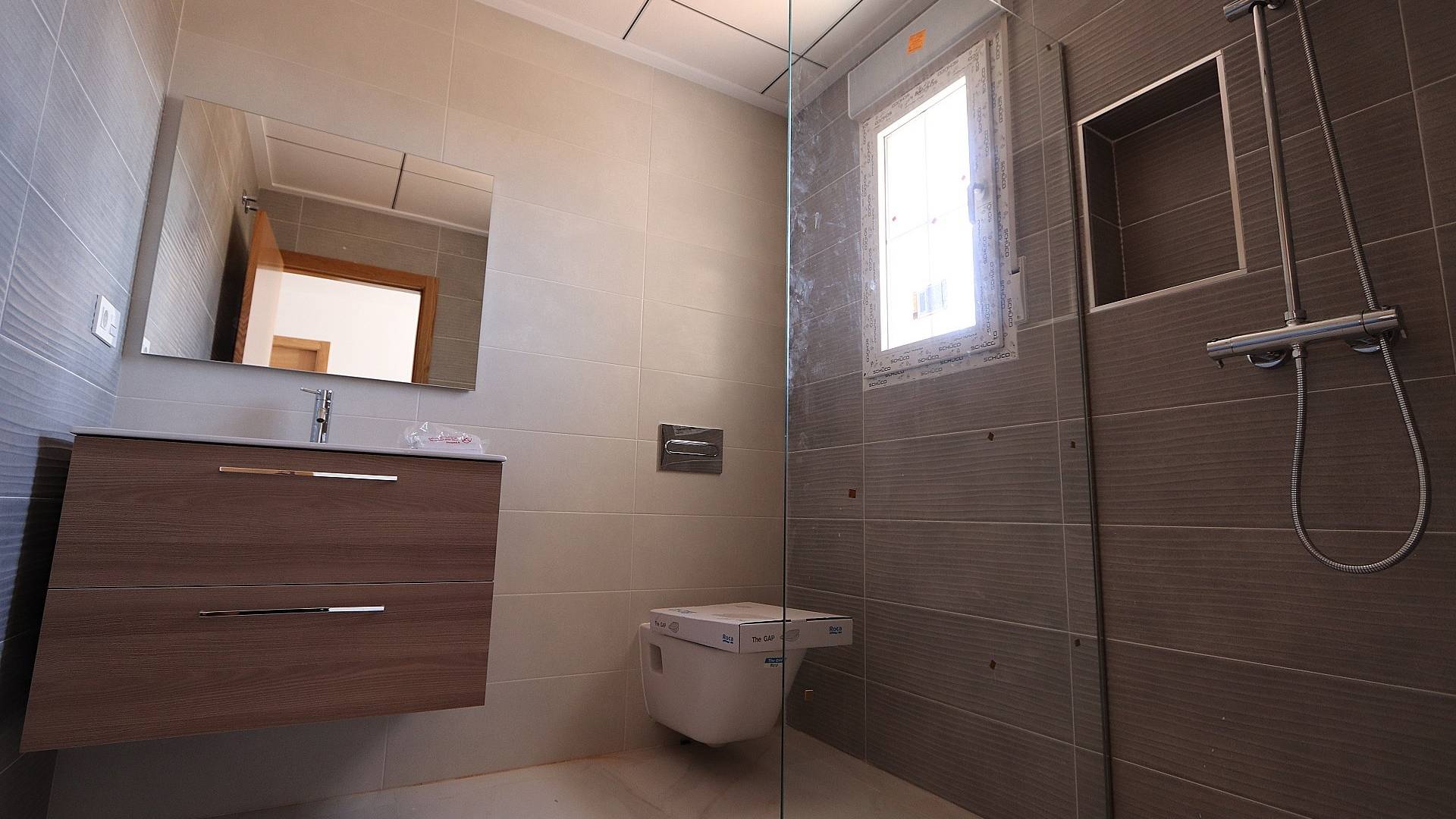 Los baños incluyen columna de ducha, plato de ducha o bañera, lavabos (en varios colores a elegir) con lavabos, grifería y espejos, además de una amplia selección de azulejos de pared y suelos cerámicos de diferentes colores, efecto madera, etc.