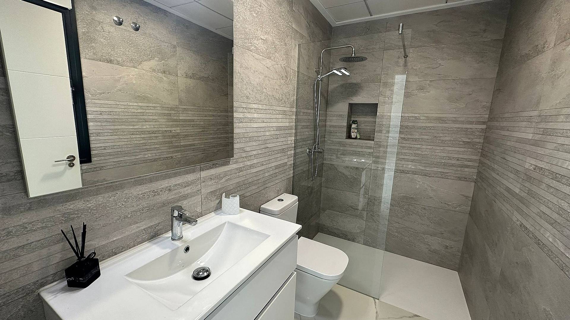 Los baños incluyen columna de ducha, plato de ducha o bañera, lavabos (varios colores a elegir) con lavabos, grifería y espejos, además de una gran selección de azulejos de pared.