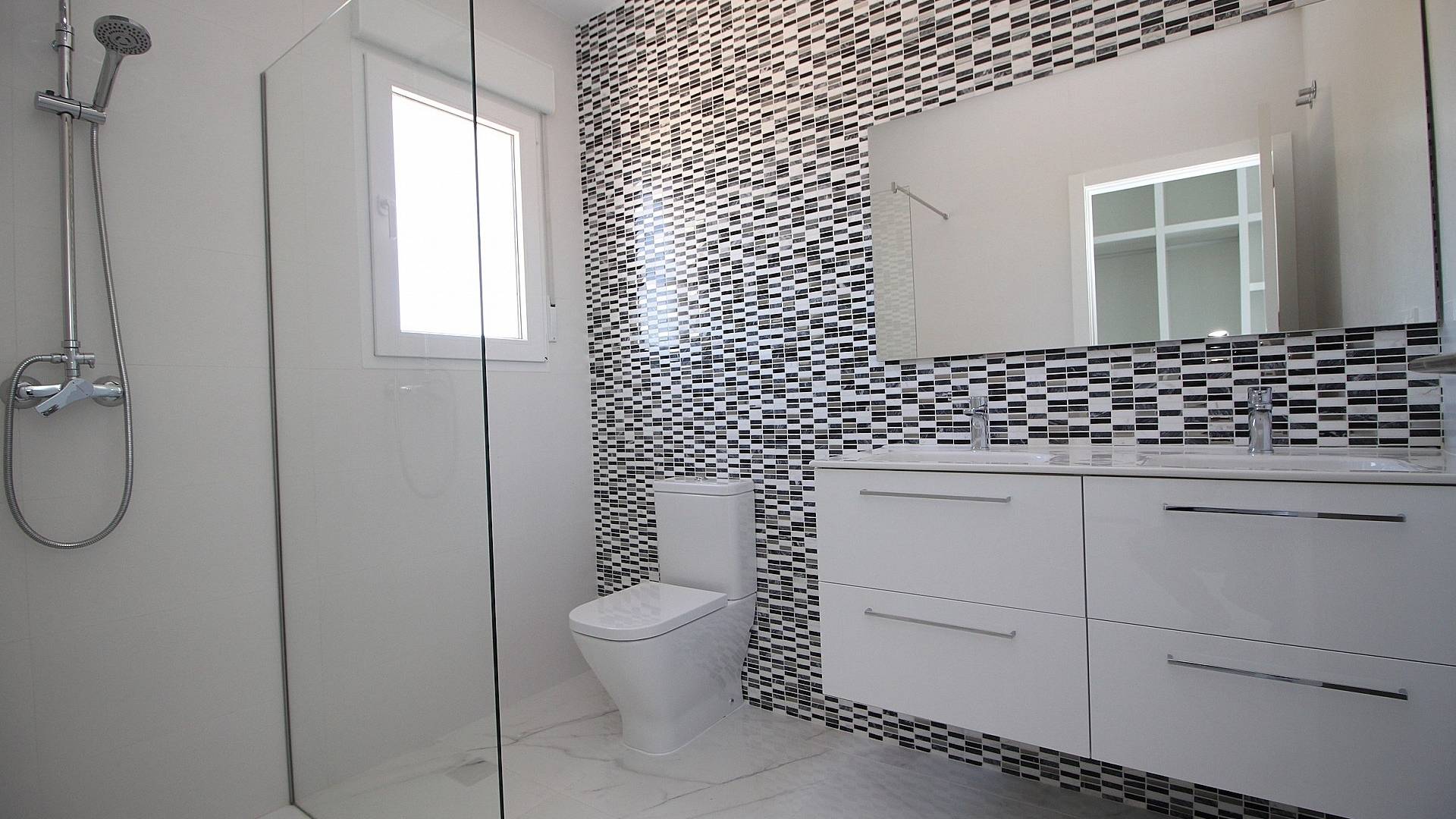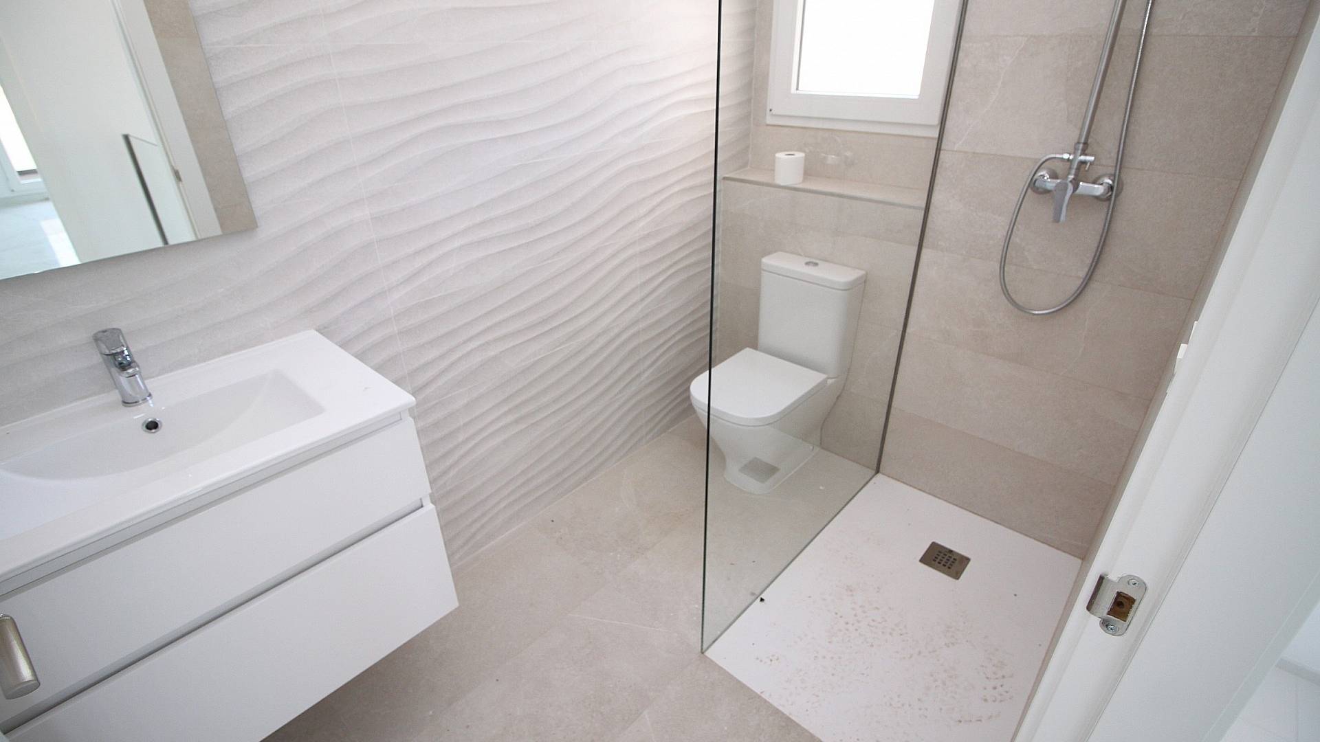 Los baños incluyen columna de ducha, plato de ducha o bañera, lavabos (en varios colores a elegir) con lavabos, grifería y espejos, además de una amplia selección de azulejos de pared y suelos cerámicos de diferentes colores, efecto madera, etc.