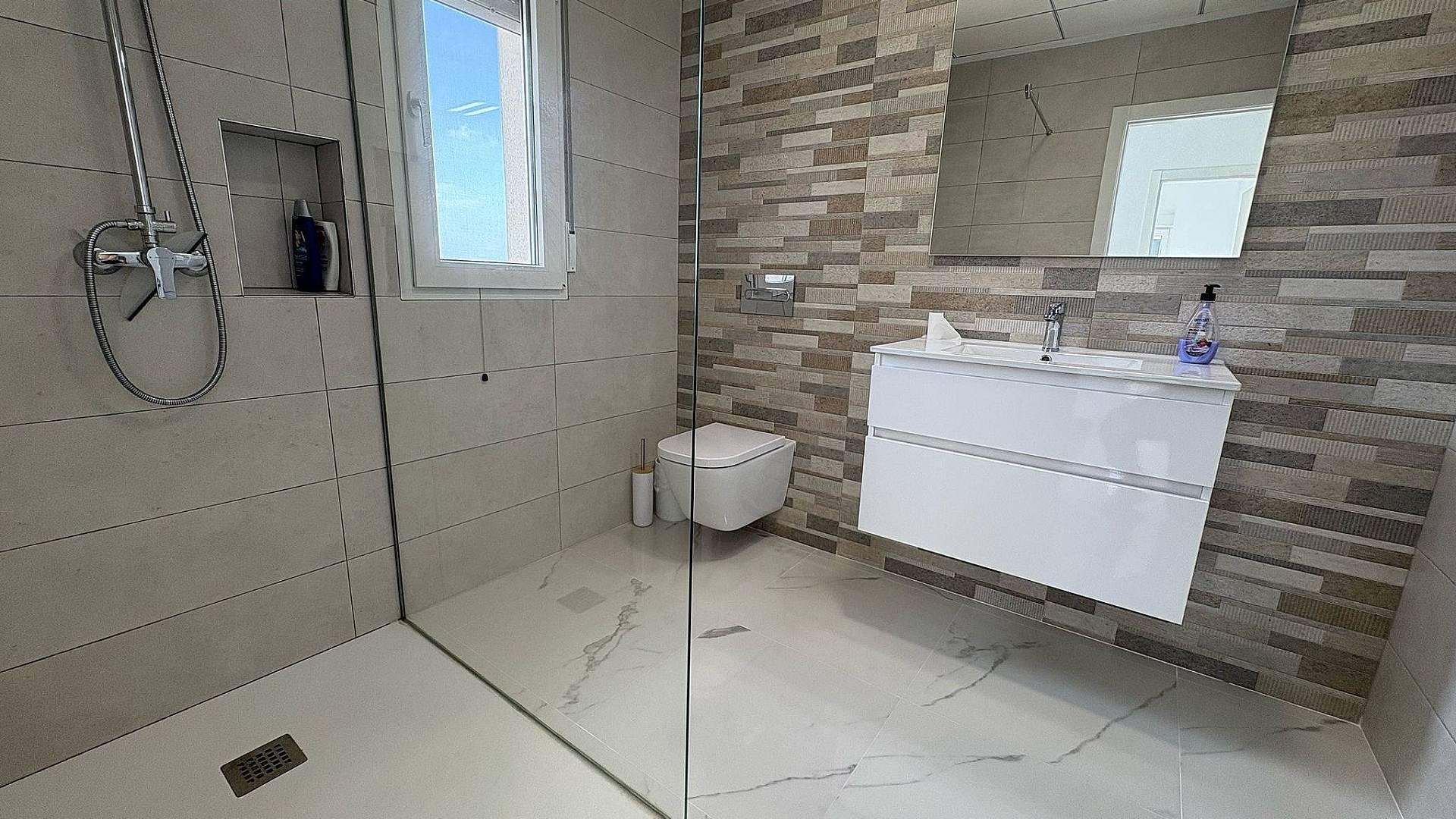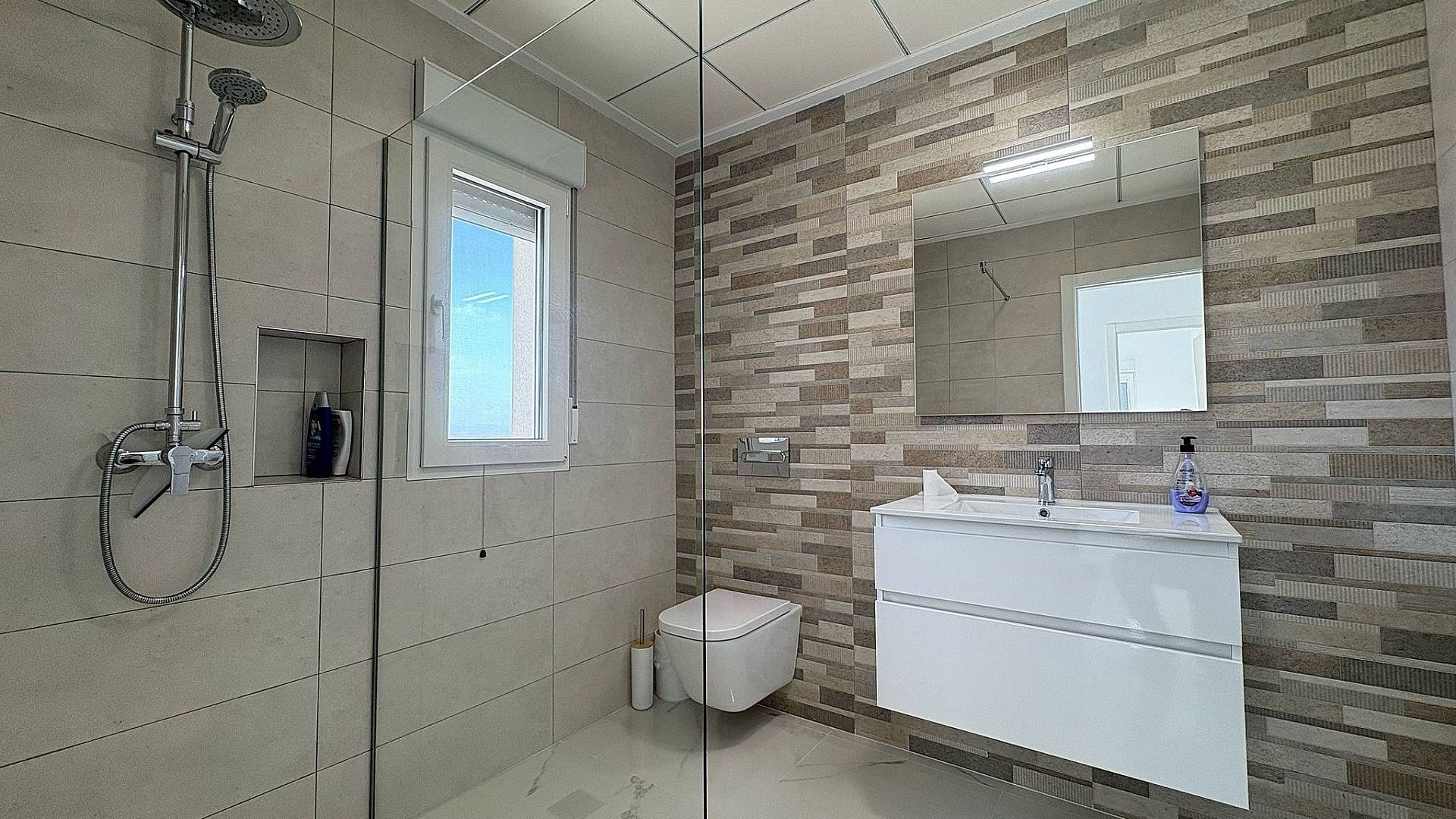 Los baños incluyen columna de ducha, plato de ducha o bañera, lavabos (en varios colores a elegir) con lavabos, grifería y espejos, además de una amplia selección de azulejos de pared y suelos cerámicos de diferentes colores, efecto madera, etc.