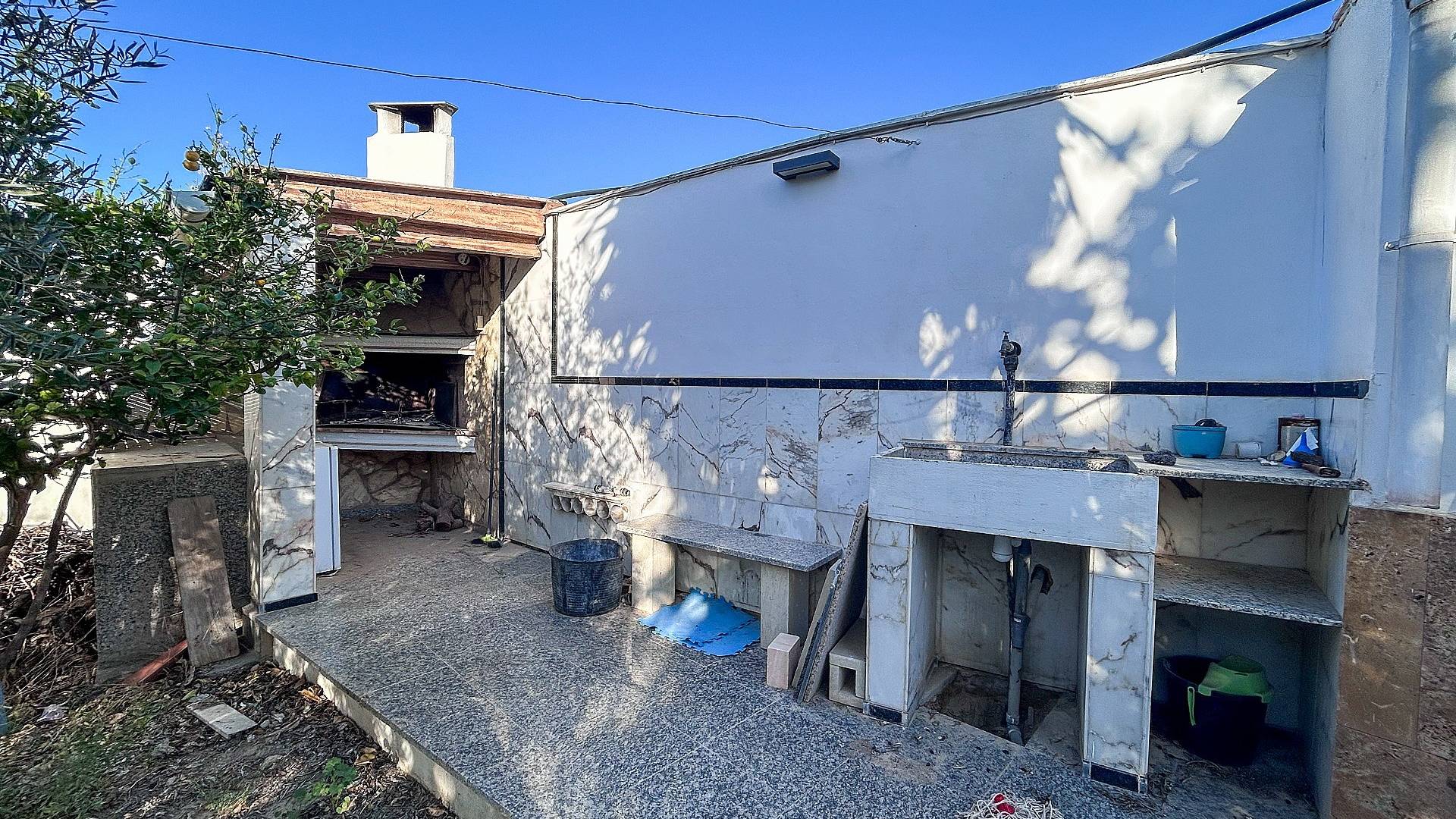 En el exterior, la propiedad dispone de una caseta independiente con cocina de verano y barbacoa integrada, ideal para disfrutar de comidas al aire libre. Además, cuenta con una segunda barbacoa exterior, perfecta para reuniones familiares o con amigos.