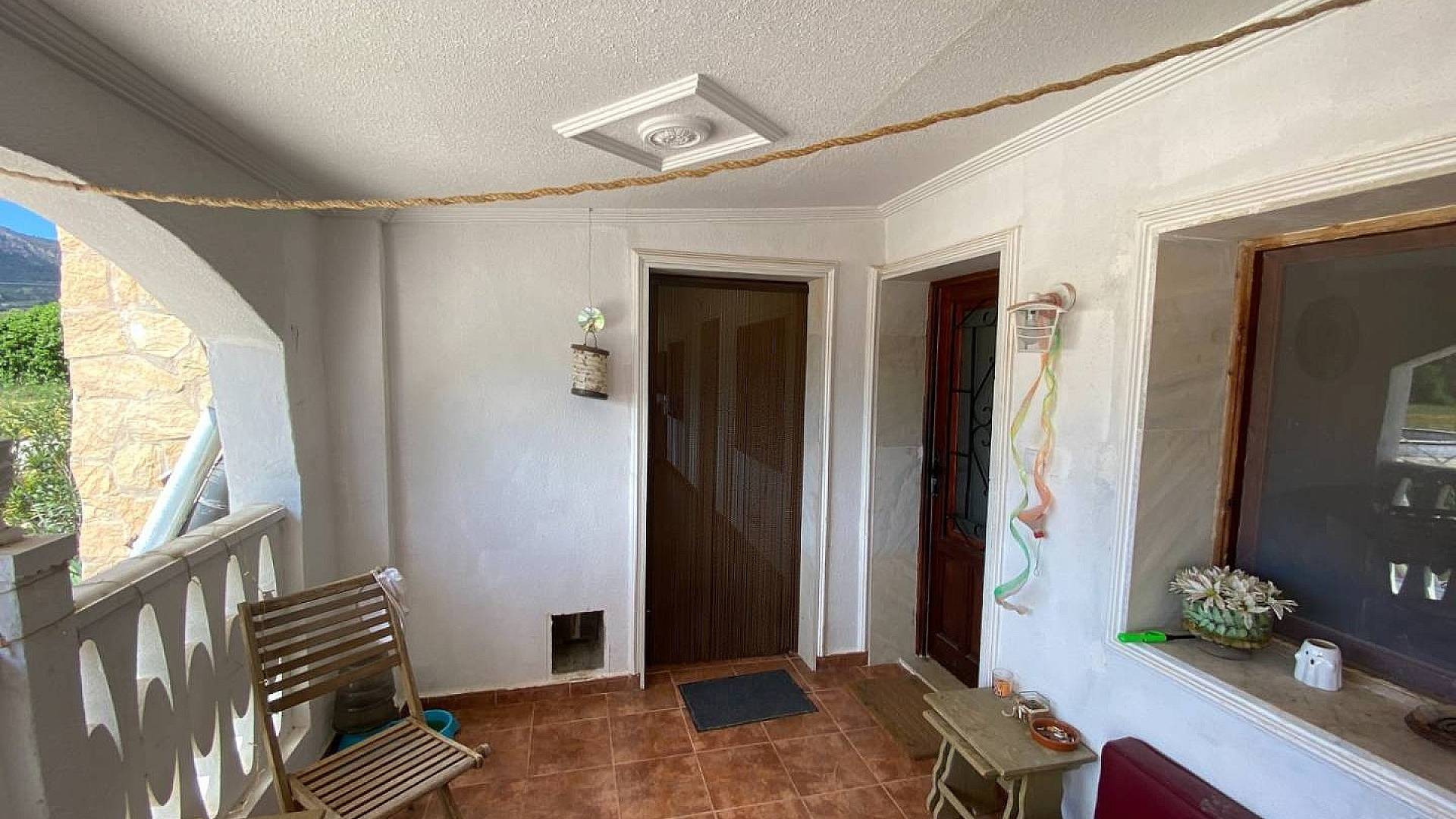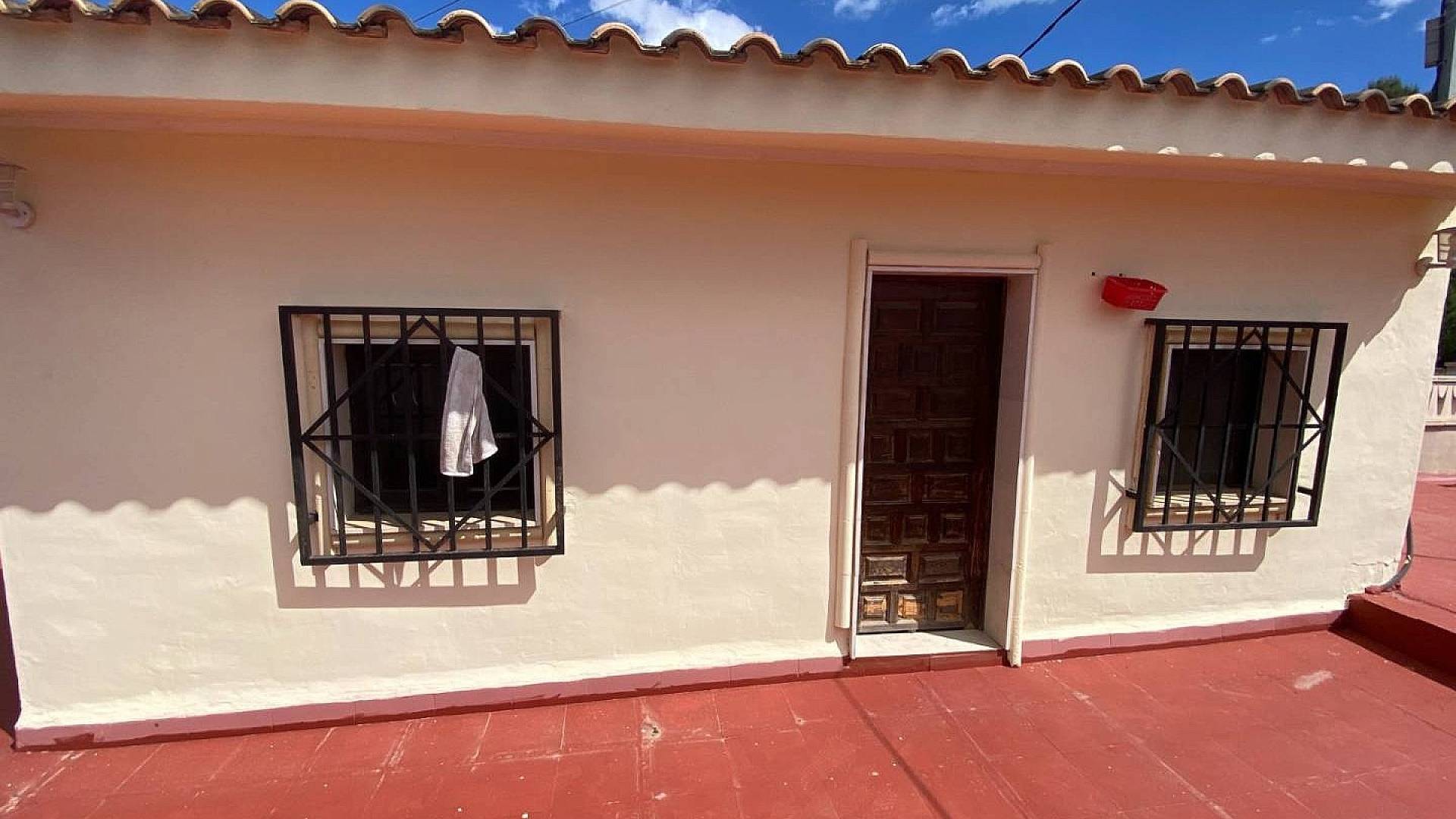 Una terraza cubierta permite el acceso a la casa y una puerta independiente conduce al apartamento de 2 dormitorios.
