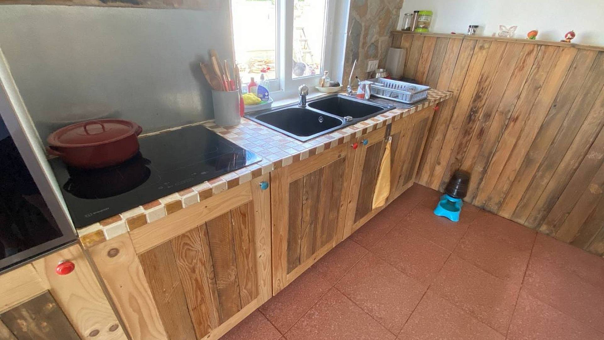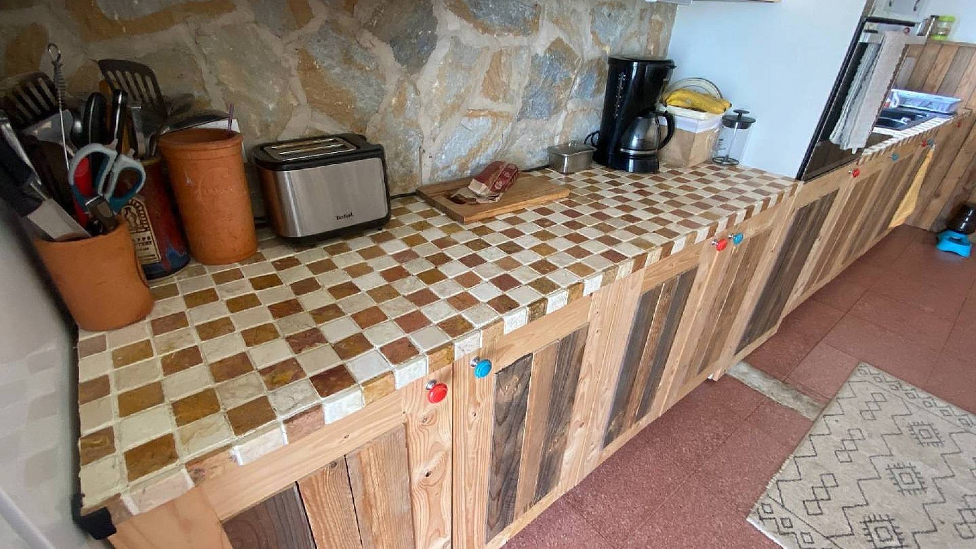 Volvamos a la terraza cubierta, más pequeña, y entremos en el apartamento de 2 dormitorios. Una vez más, este ha sido cuidadosamente diseñado y resulta inmediatamente cómodo y acogedor. Hay dos dormitorios amplios y una cocina espaciosa, magníficamente equipada. El baño es nuevo, por supuesto, y cuenta con grifería de alta calidad. Si yo fuera un huésped y me dieran este apartamento, no querría irme, la verdad. Se trata de una propiedad increíblemente sólida con paredes gruesas, lo que significa que hay muy poca o ninguna posibilidad de que la casa y el apartamento molesten.