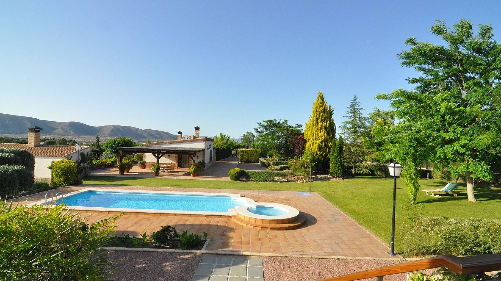 Esta lujosa villa, con una presentación impecable y casita independiente, ofrece un verdadero rincón de paraíso en el tranquilo entorno de Villena.