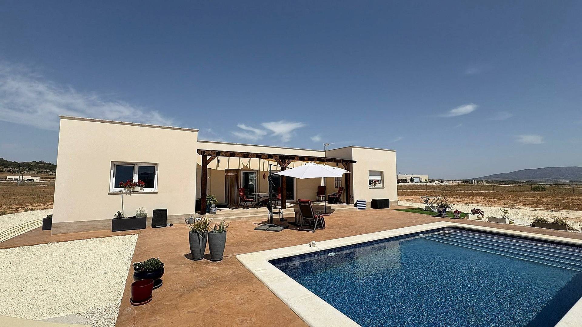 Bienvenido a nuestras excepcionales villas de obra nueva en el pintoresco pueblo de Pinoso, donde el lujo se combina con la asequibilidad en un tranquilo entorno rural. No muchas propiedades incluyen el terreno y la piscina en el precio, por lo que esta es una excelente opción para estas impresionantes propiedades, diseñadas para ofrecer un alto nivel de vida y opciones de personalización que se adaptan a las preferencias personales de cada comprador.