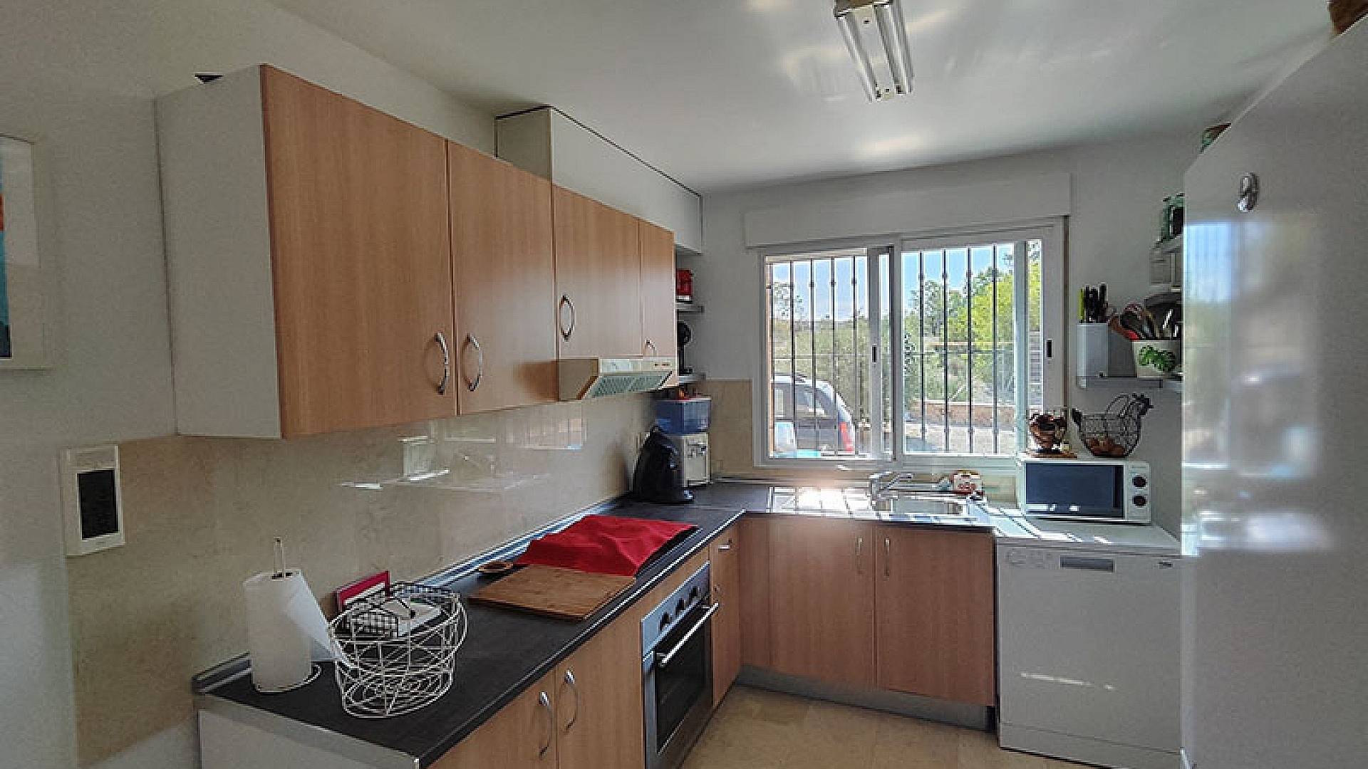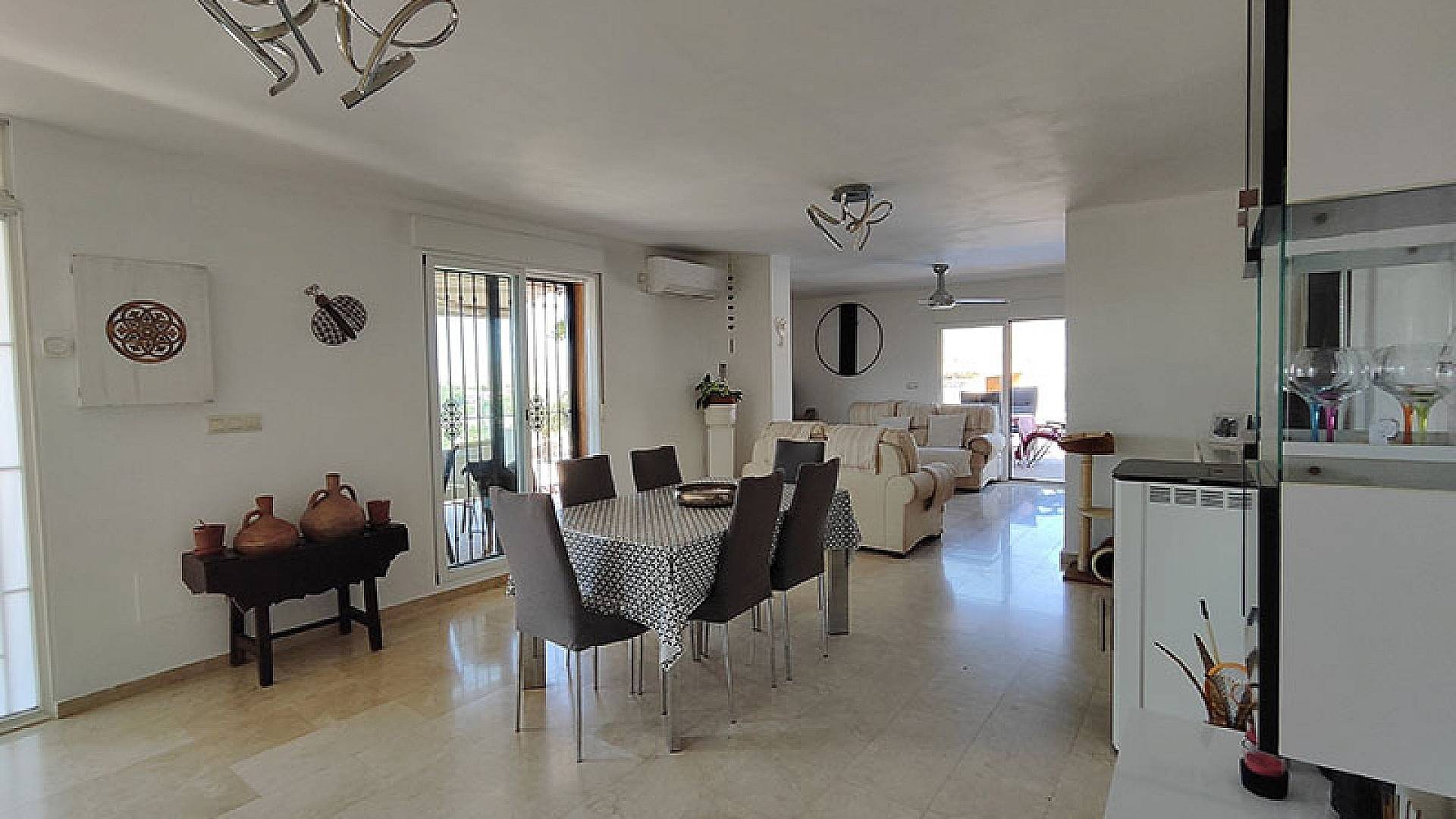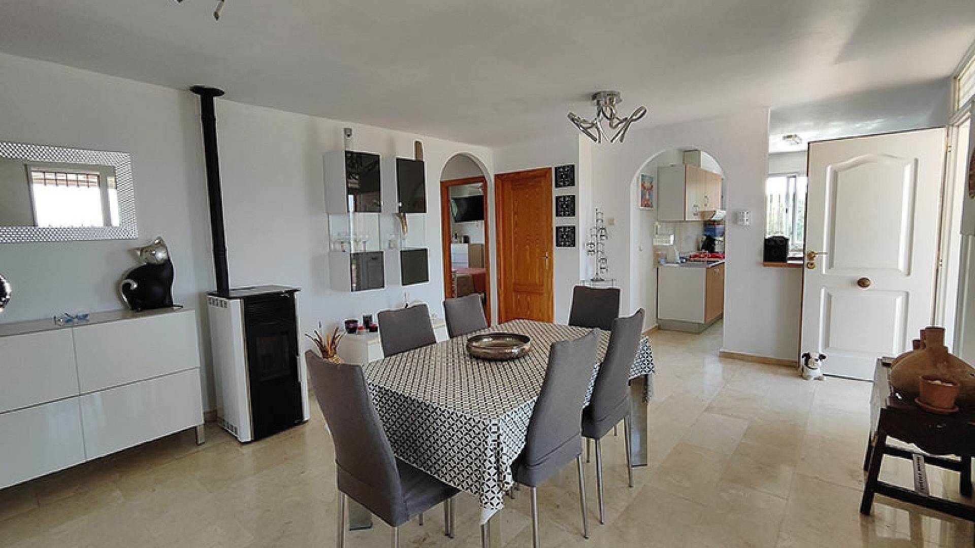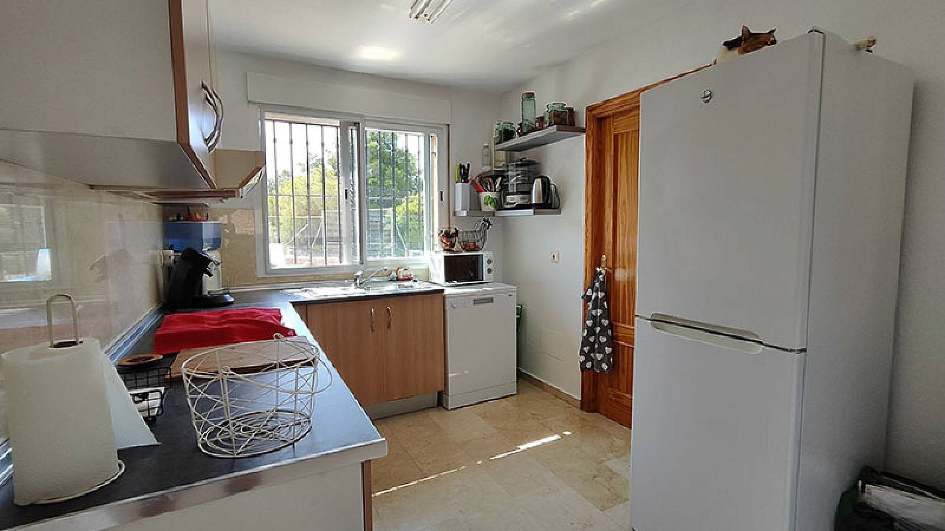 El salón y el comedor son dos hermosos espacios. La cocina está totalmente equipada y en excelentes condiciones, con espacio de almacenamiento y lavadero. La villa ofrece aproximadamente 140 m² de superficie útil.