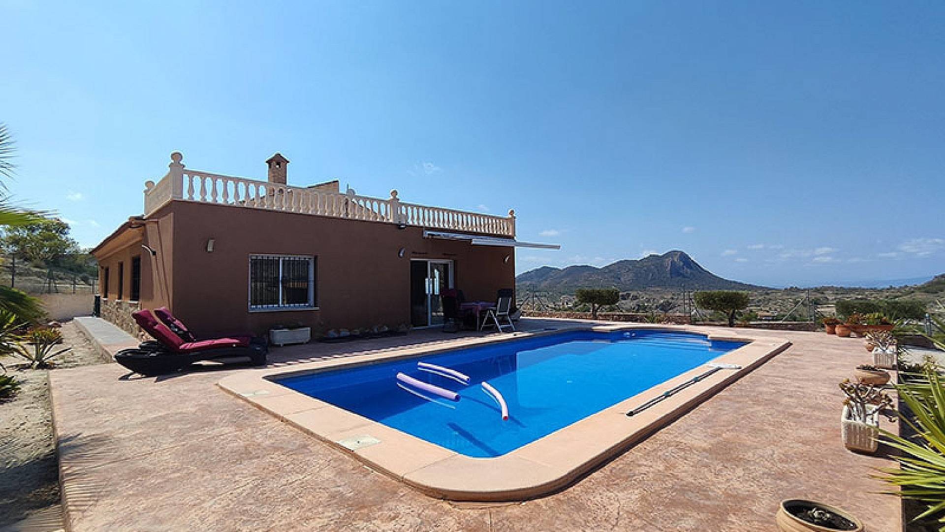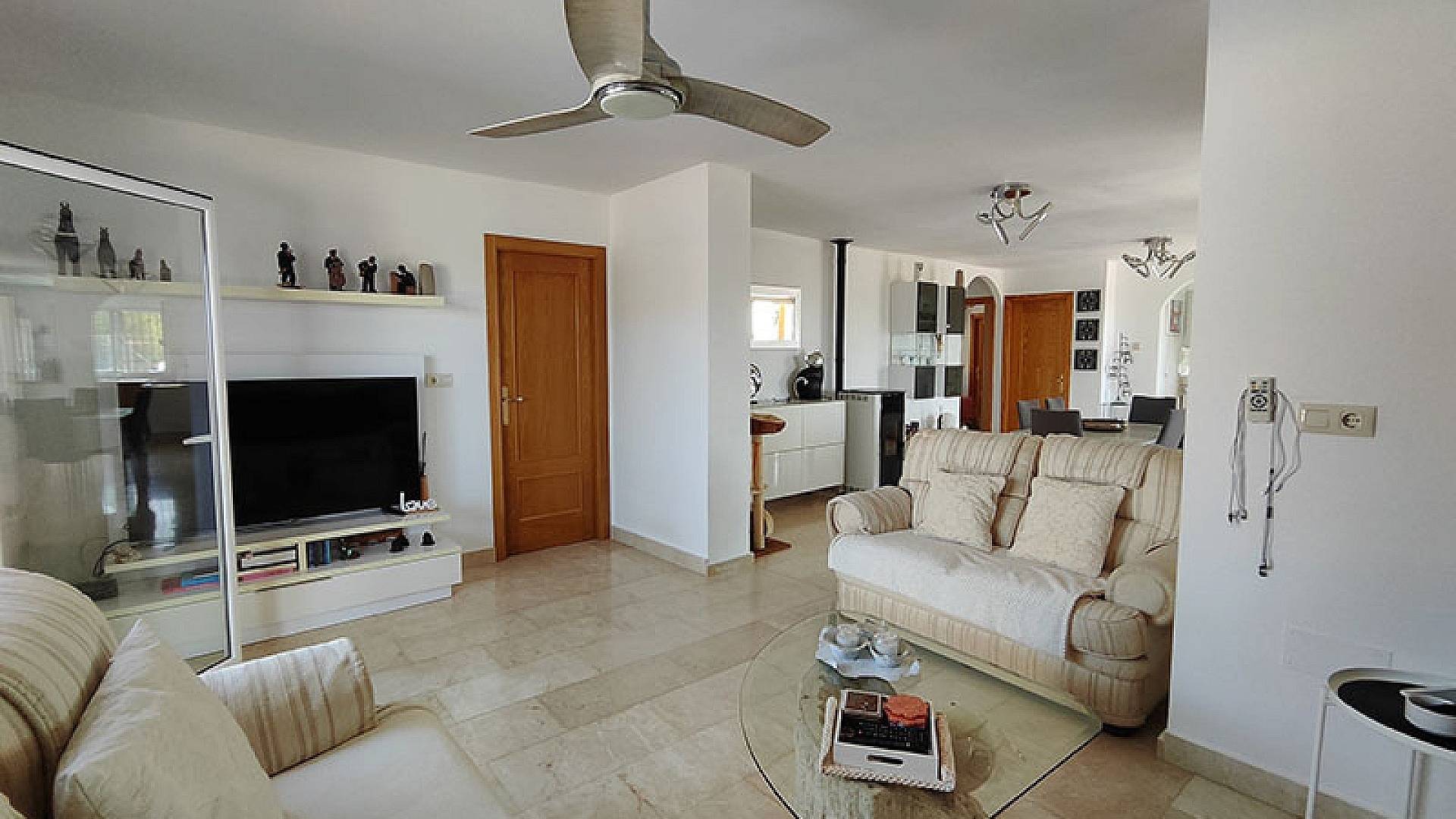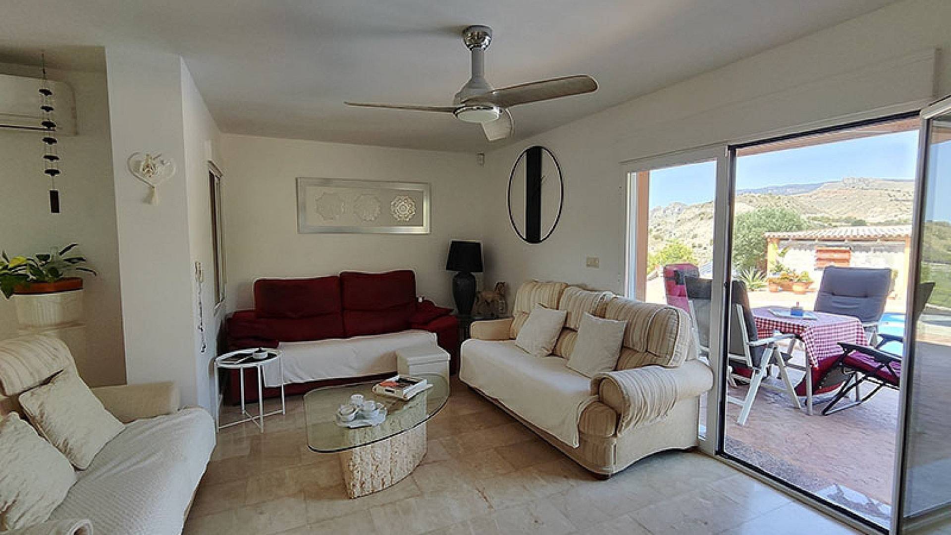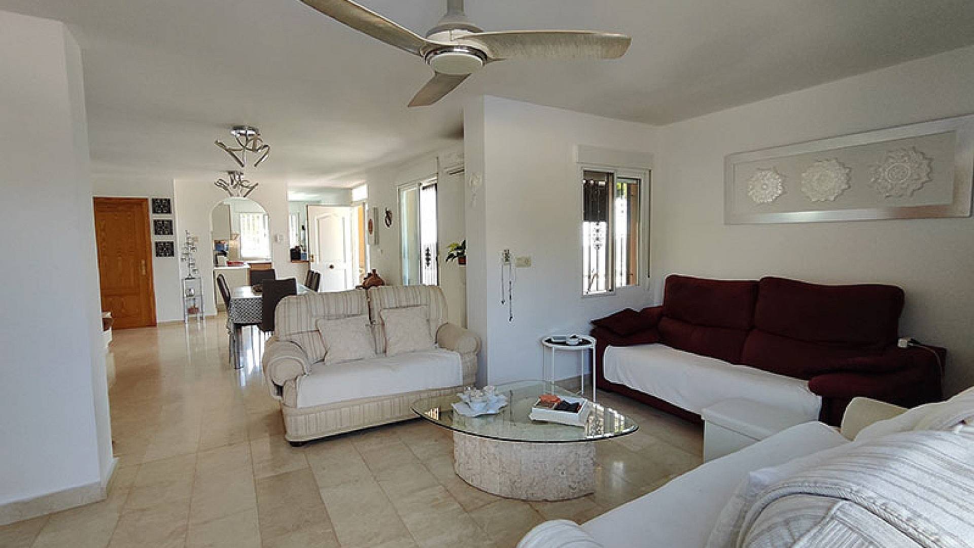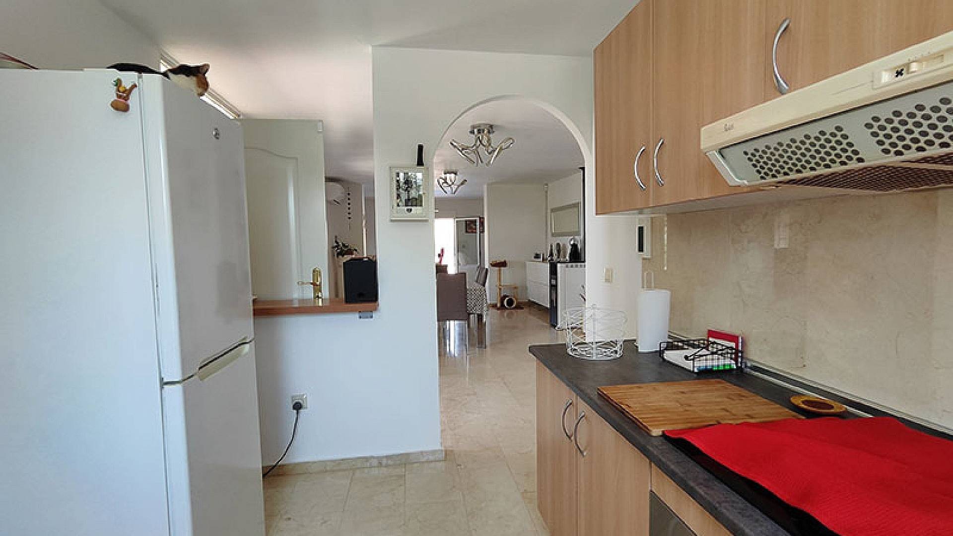 El salón y el comedor son dos hermosos espacios. La cocina está totalmente equipada y en excelentes condiciones, con espacio de almacenamiento y lavadero. La villa ofrece aproximadamente 140 m² de superficie útil.