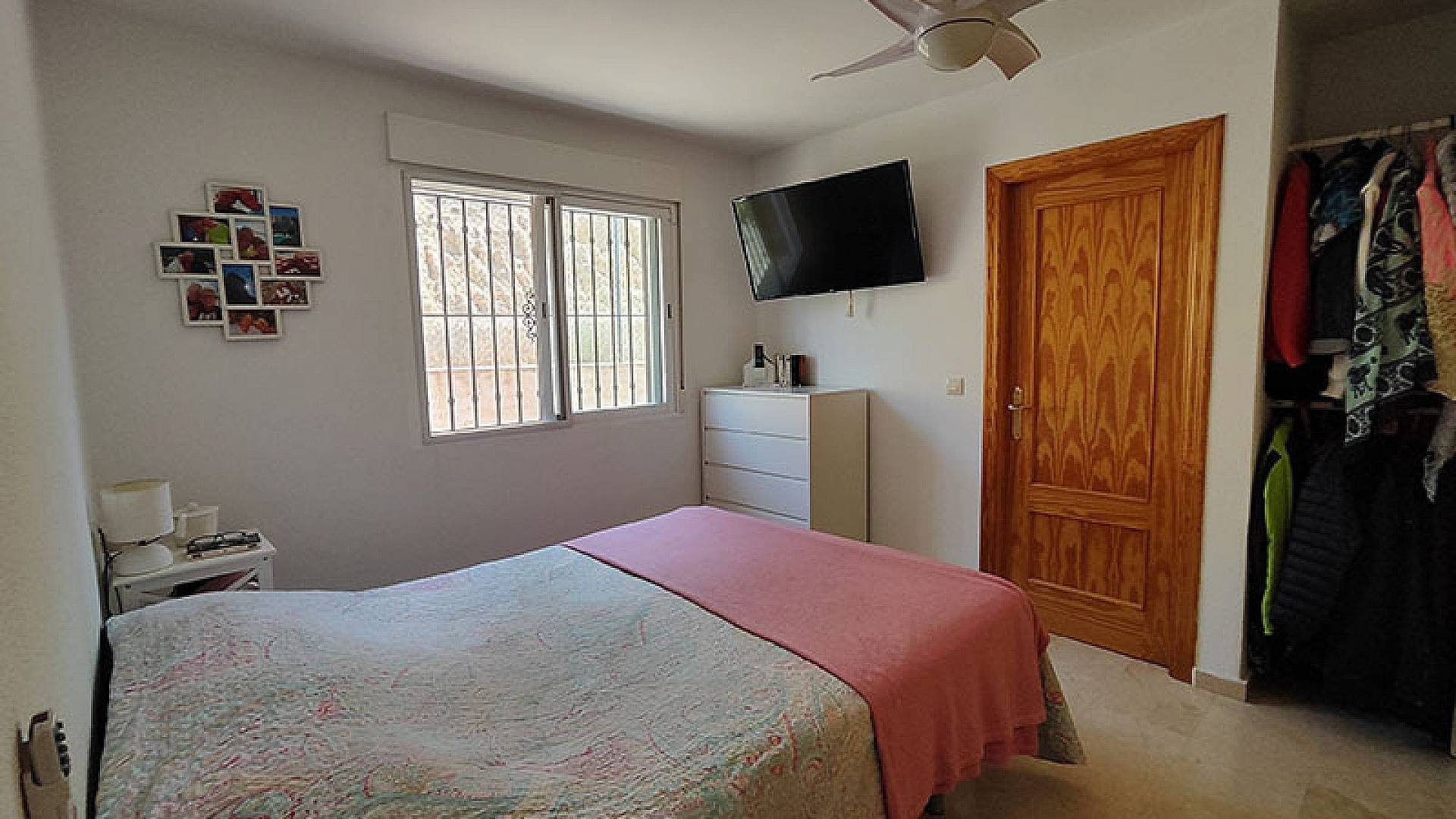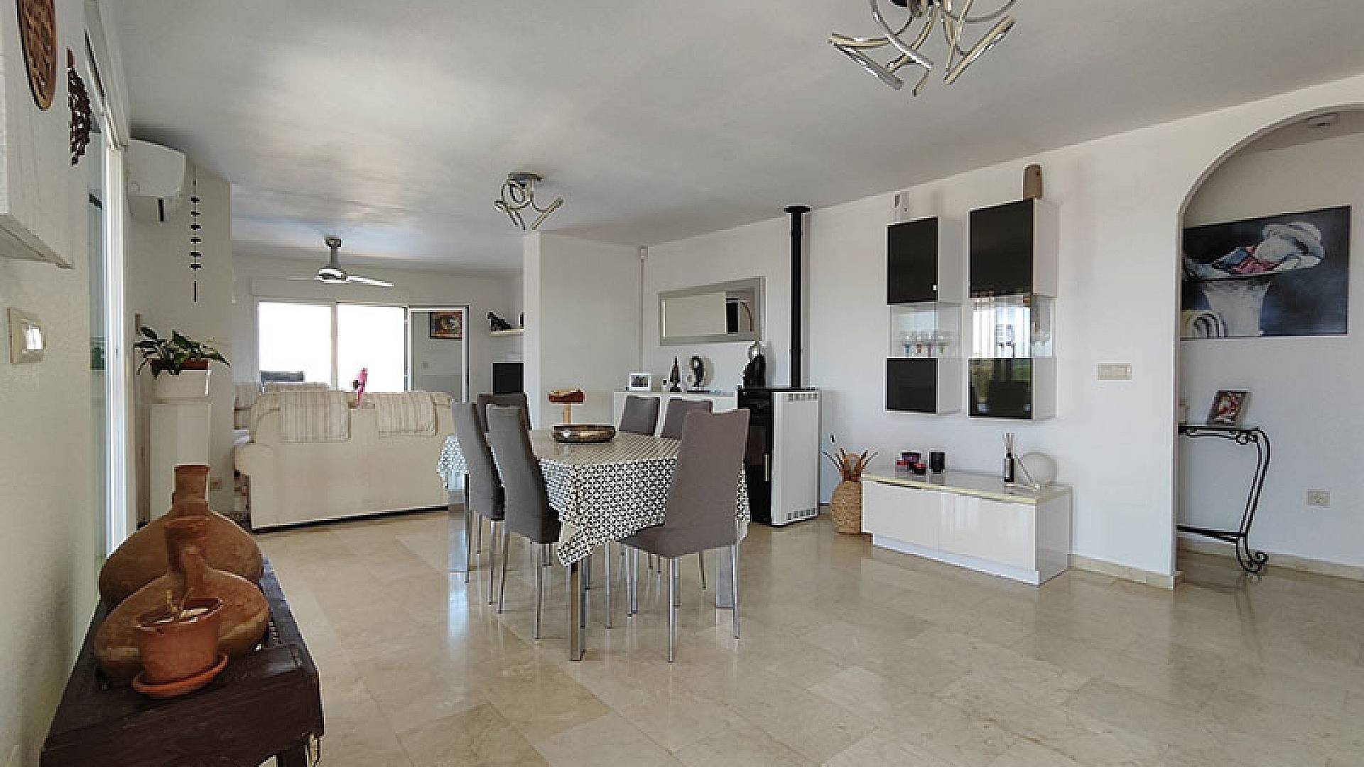 Ventiladores en todas las habitaciones, aire acondicionado en el comedor y una estufa de pellets