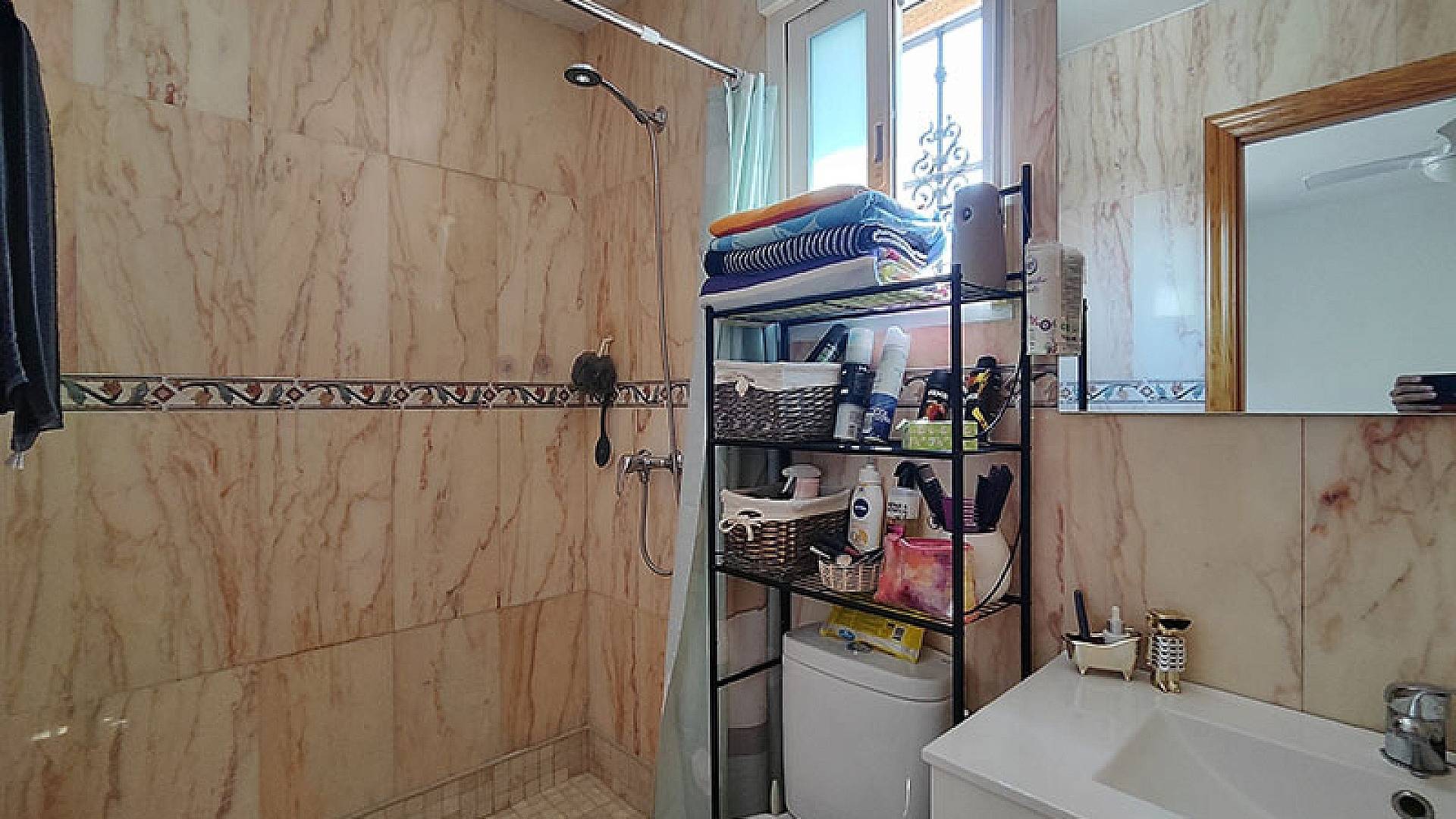 La casa es luminosa, con grandes ventanales con persianas y mosquiteras.