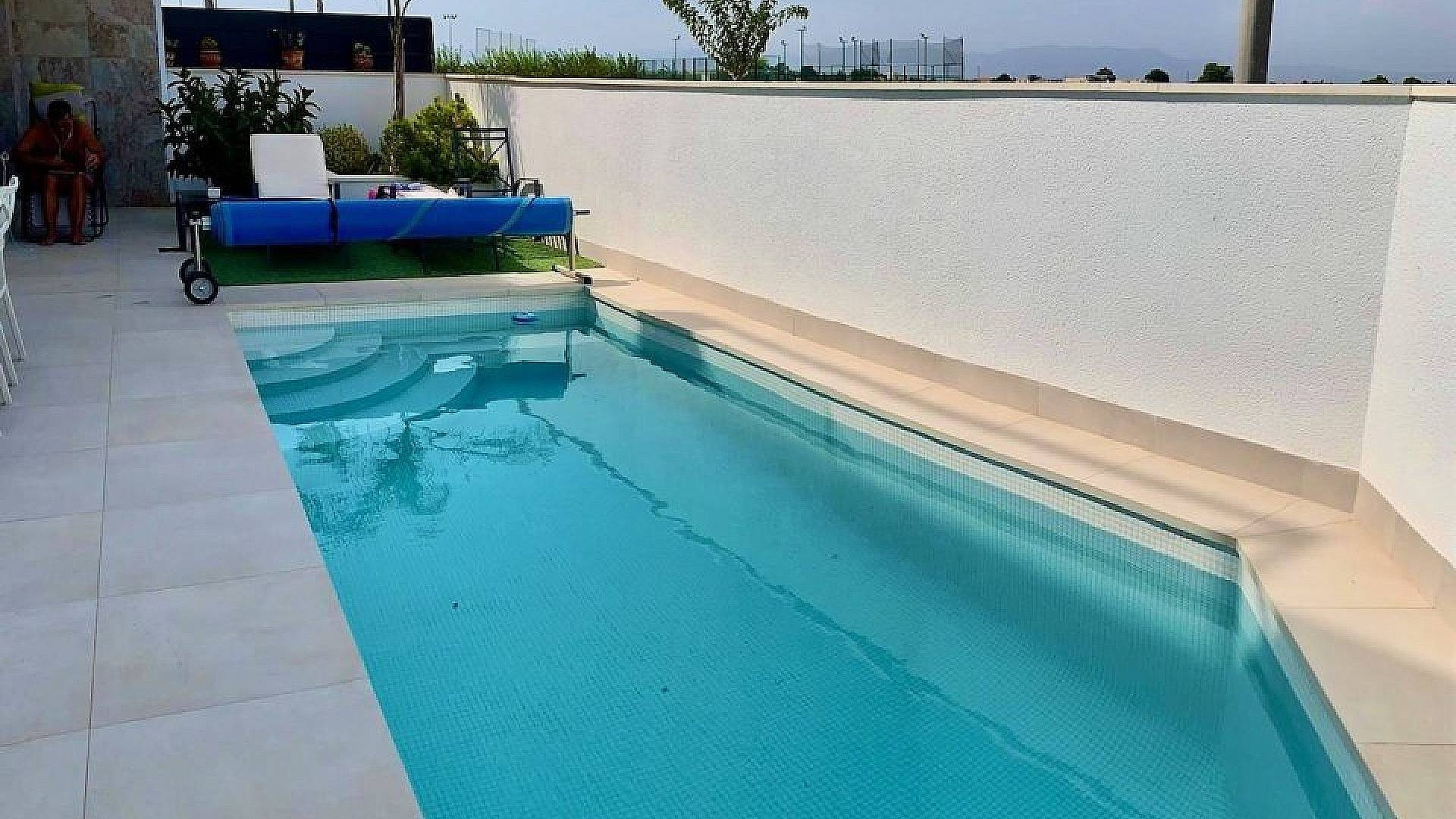 A solo 10 minutos de las playas, esta villa ofrece una hermosa piscina, salón, cocina americana, lavadero, un dormitorio doble con baño en la planta baja, dos dormitorios dobles con baño en suite y un hermoso solárium en la azotea. También hay un trastero adjunto al exterior de la casa.