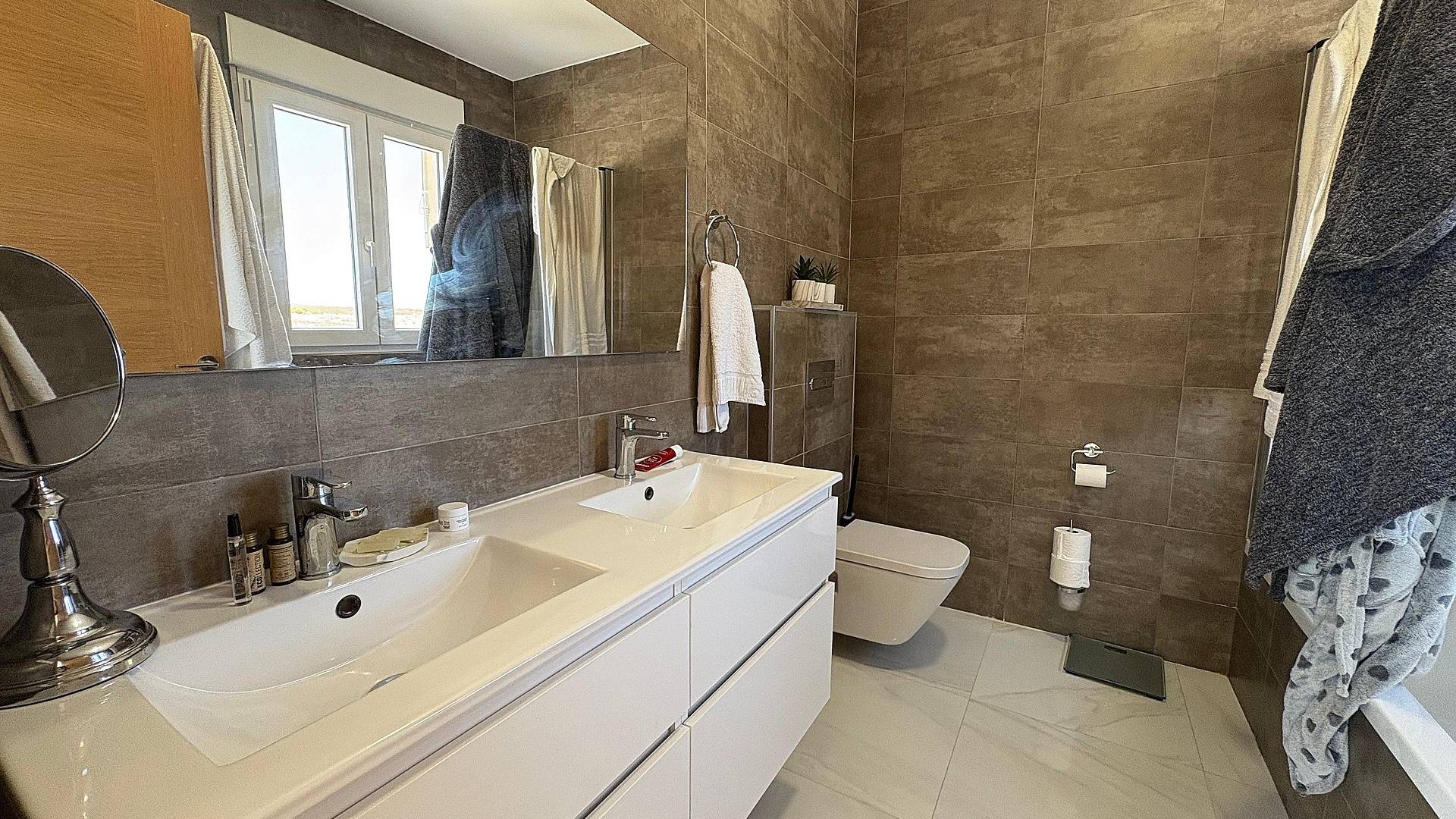 Los baños incluyen columna de ducha, plato de ducha o bañera, lavabos (en varios colores a elegir) con lavabos, grifería y espejos, además de una amplia selección de azulejos de pared y suelos cerámicos de diferentes colores, efecto madera, etc.