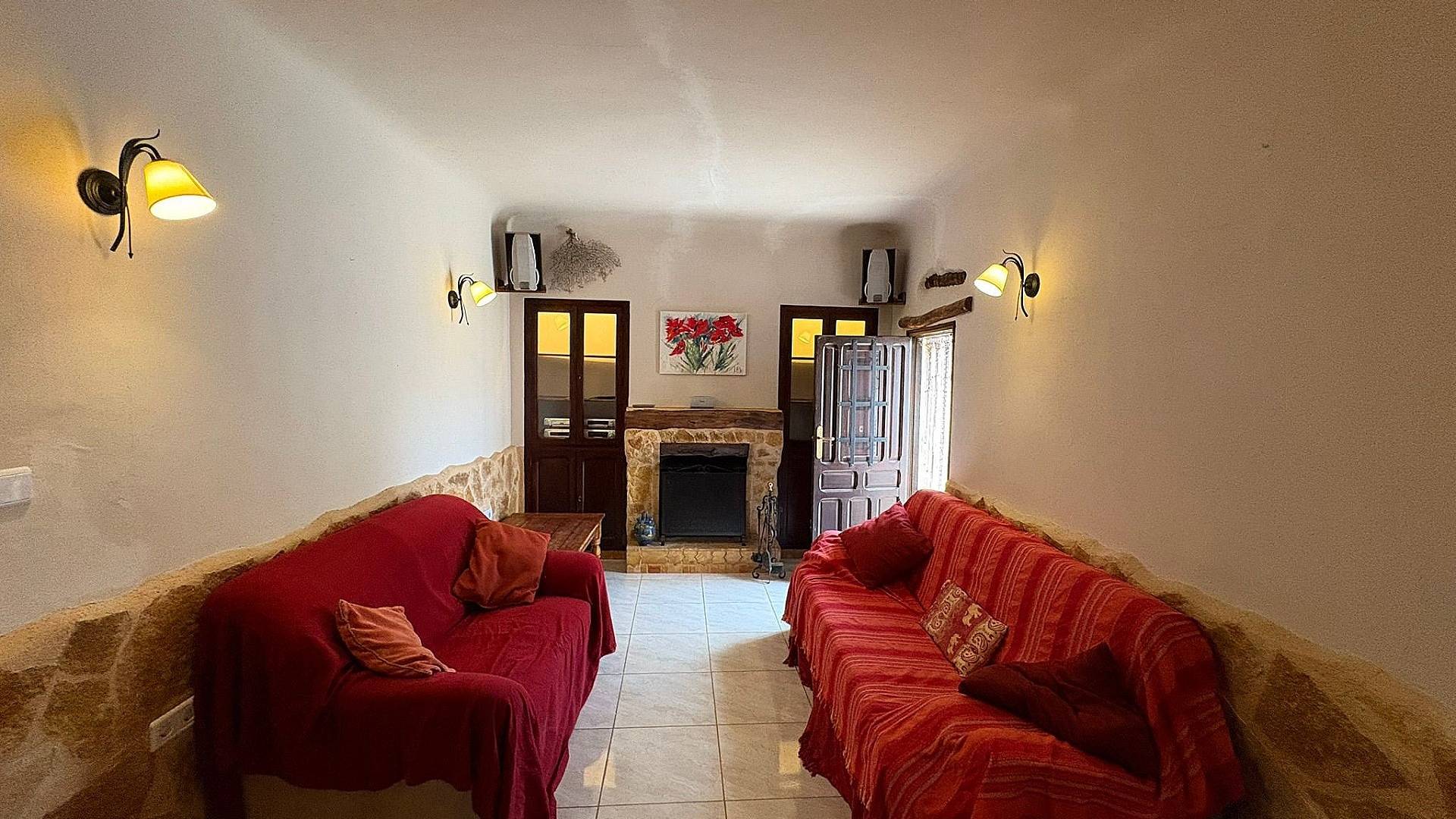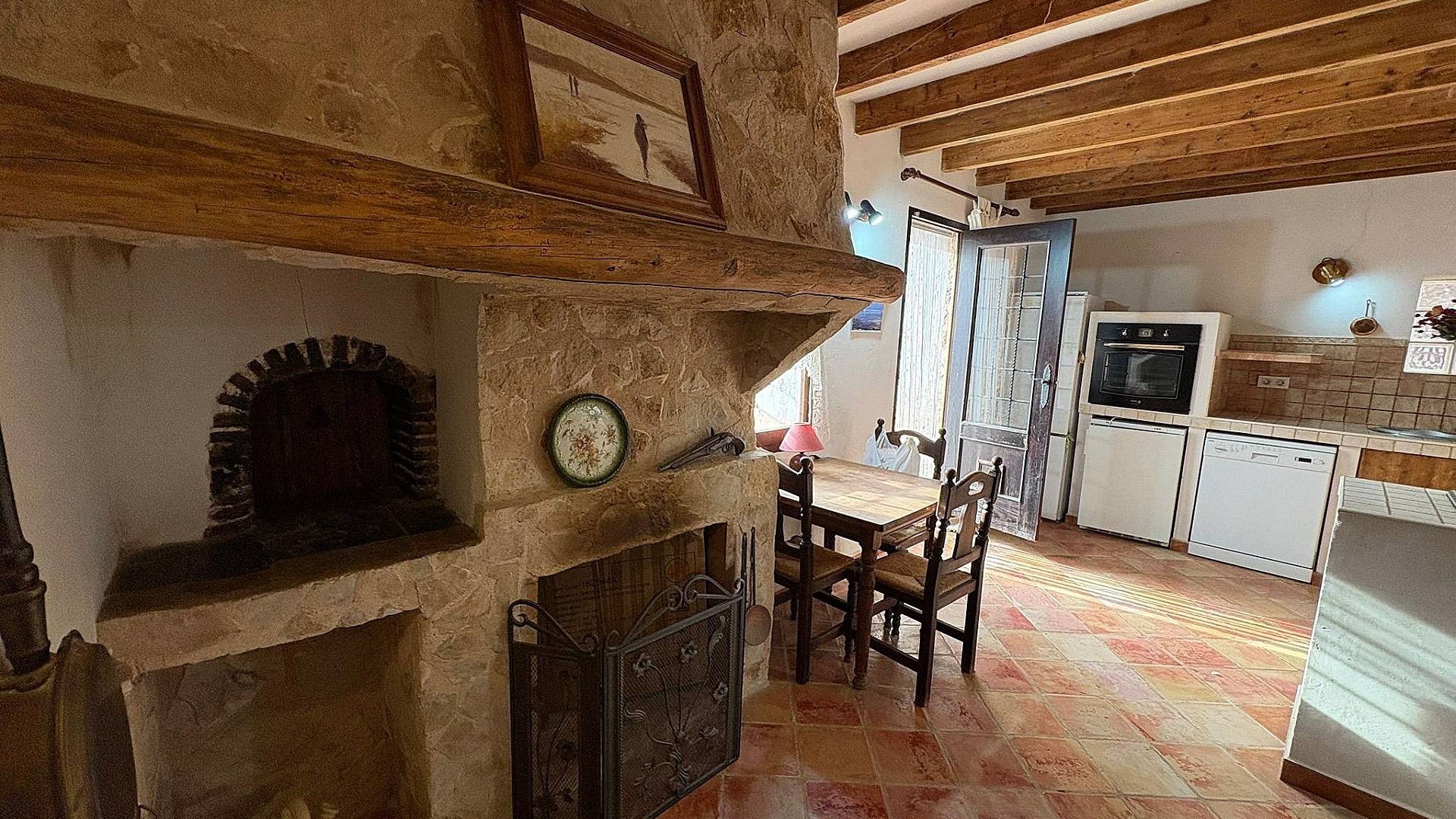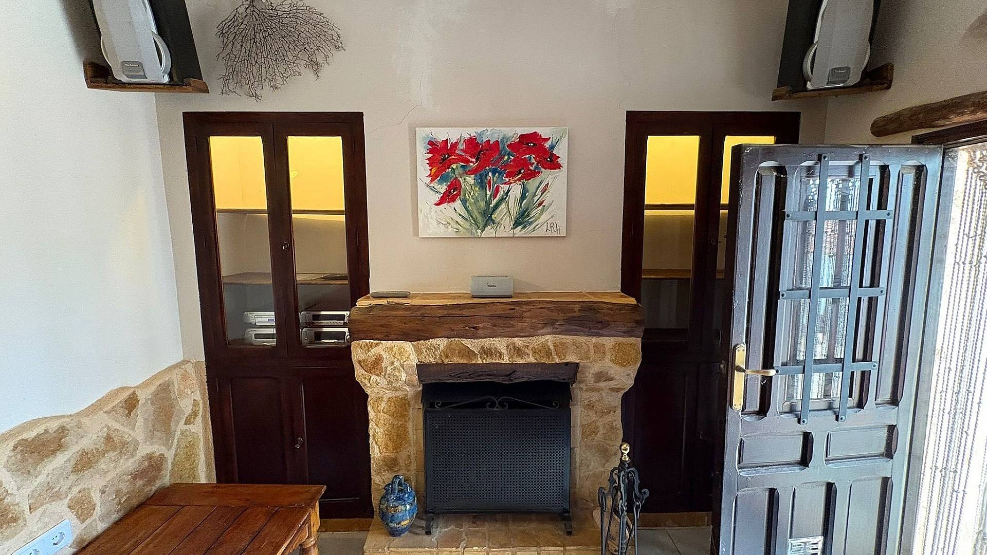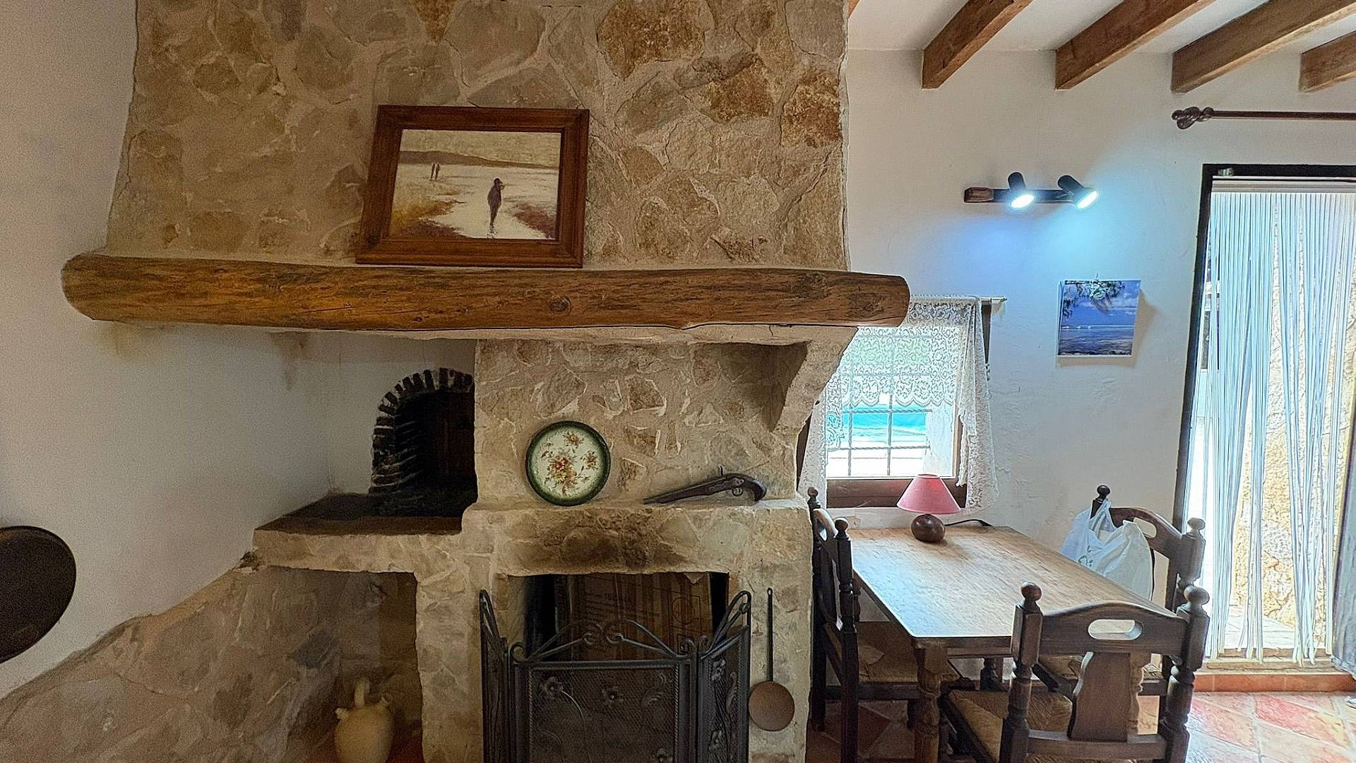 Un espacio cálido y acogedor con una chimenea de piedra tradicional, perfecto para las noches de invierno. Gracias a los gruesos muros de piedra, la casa se mantiene fresca en verano. Un rincón adyacente se utiliza actualmente como despacho.