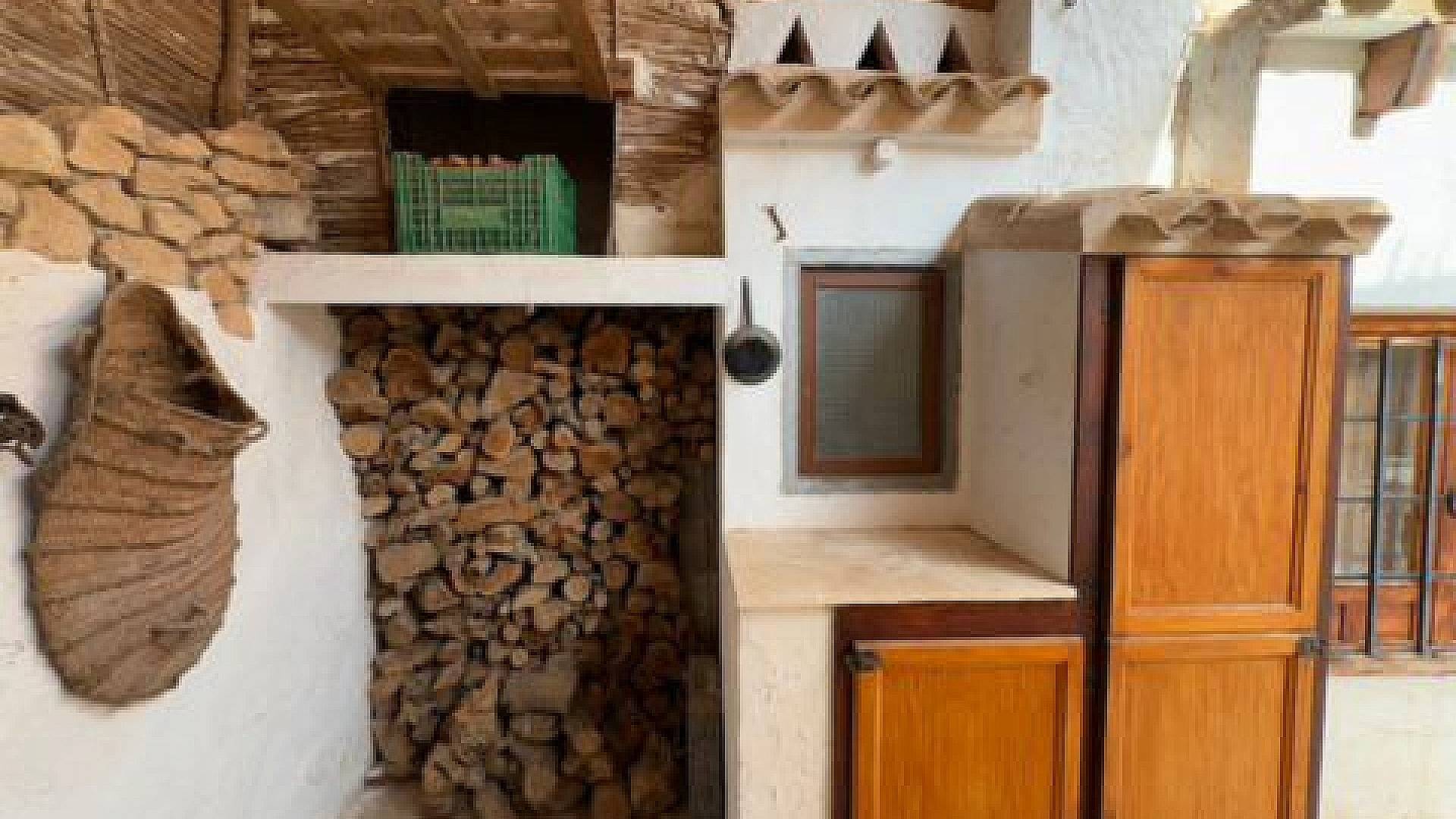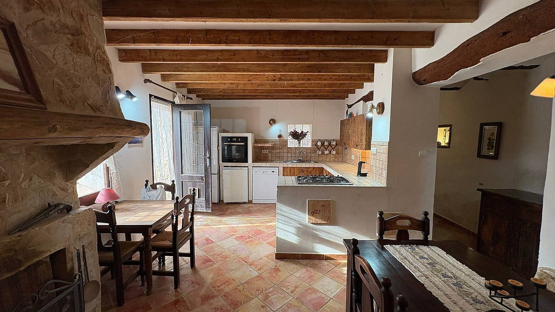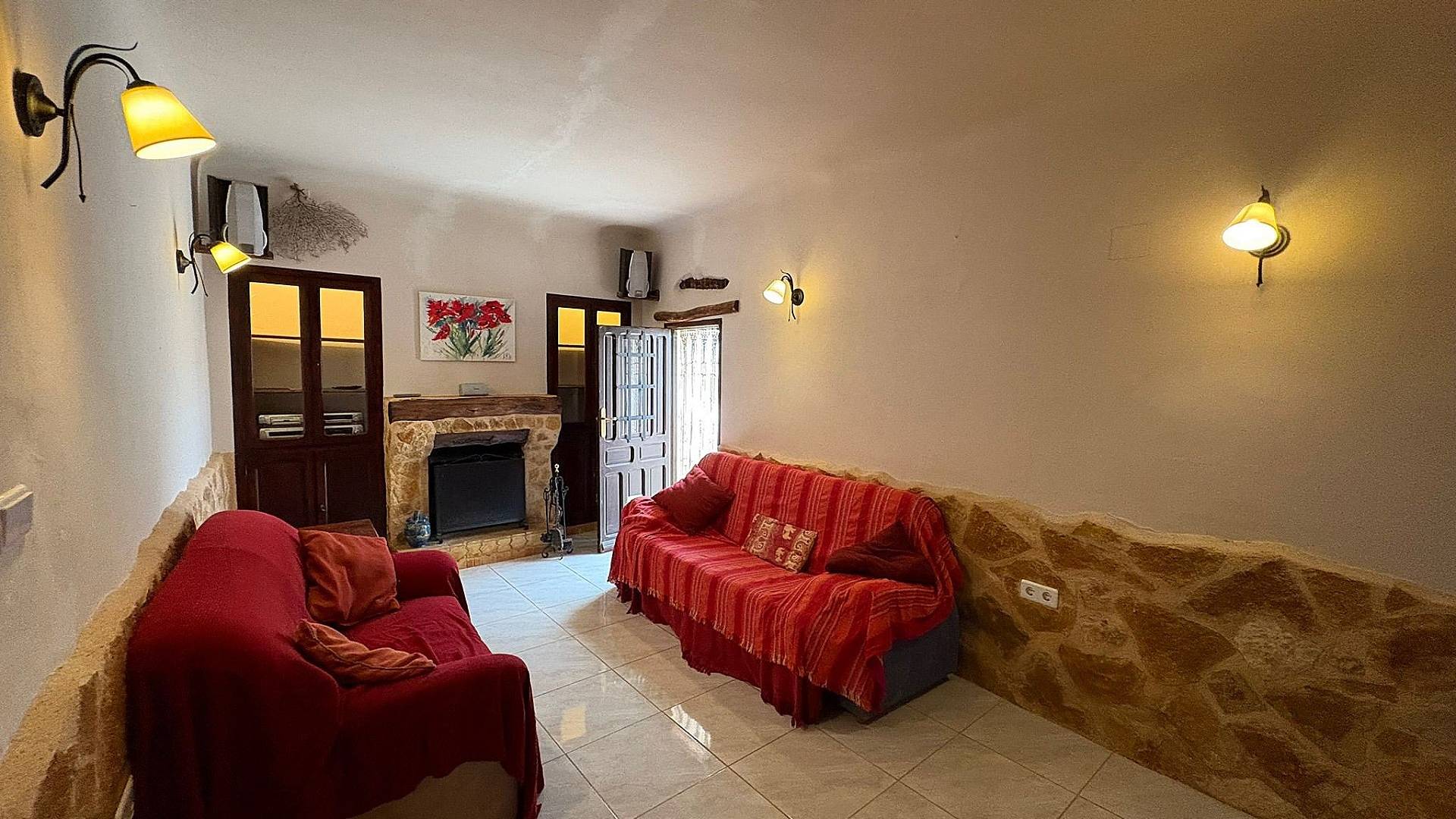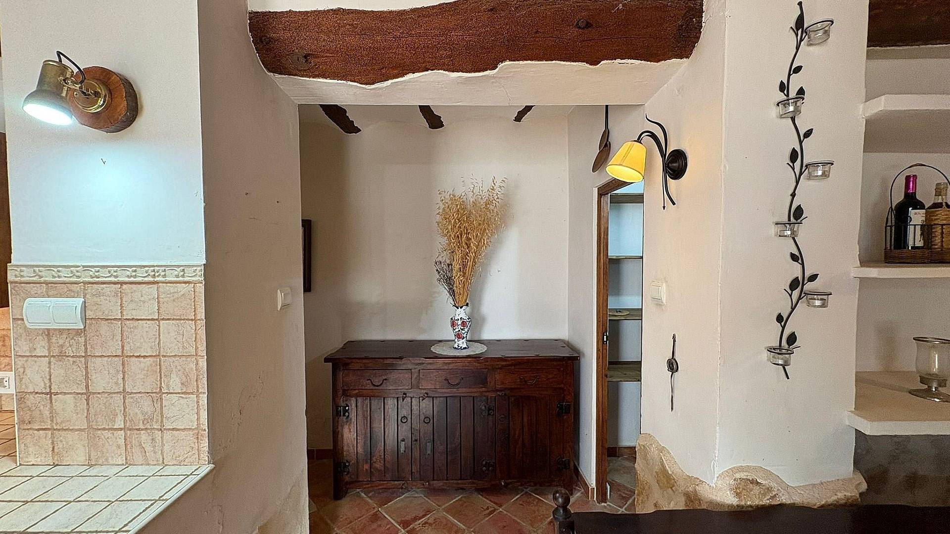 Un espacio cálido y acogedor con una chimenea de piedra tradicional, perfecto para las noches de invierno. Gracias a los gruesos muros de piedra, la casa se mantiene fresca en verano. Un rincón adyacente se utiliza actualmente como despacho.