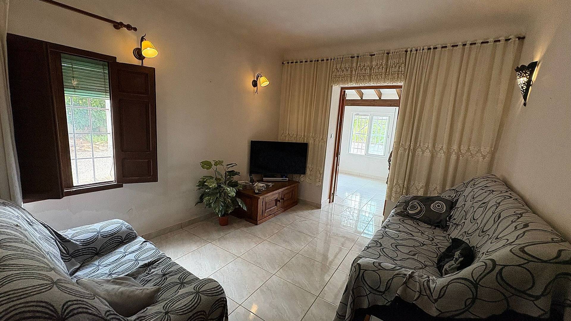 Luminoso y soleado, se extiende hacia un invernadero acristalado con vistas espectaculares — ideal como sala de estar, estudio o dormitorio extra.