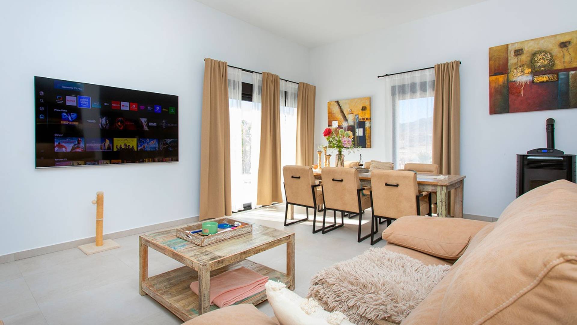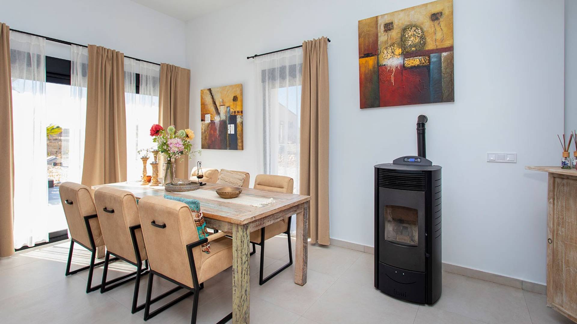 Villa moderna de lujo en venta en Pinoso Esta impresionante villa independiente se encuentra en la muy demandada zona de Pinoso y ofrece la combinación perfecta de confort moderno, privacidad y un entorno natural espectacular. Situada en el campo pero con todas las conexiones, esta propiedad es ideal tanto como residencia permanente como vivienda vacacional de lujo. La villa cuenta con 4 amplios dormitorios y 2 baños modernos, todos acabados con materiales de alta calidad. El interior es contemporáneo y elegante, con una distribución abierta y luminosa que crea un ambiente cómodo y acogedor en toda la vivienda. En el exterior, la propiedad destaca especialmente. Una piscina privada, un jacuzzi en la terraza y una terraza cubierta de madera situada junto a la piscina ofrecen el entorno perfecto para relajarse y disfrutar con familiares y amigos. El jardín se encuentra actualmente en fase de diseño y se completará con palmeras, vegetación mediterránea, elegante solado y piedra natural, creando un espacio exterior armonioso y atractivo. Las vistas desde la propiedad son simplemente espectaculares, con panorámicas abiertas al campo y a las montañas que transmiten una sensación única de paz y amplitud. El acceso a la villa se realiza a través de una puerta eléctrica y un largo camino privado, garantizando privacidad y una entrada elegante. Para mayor tranquilidad, la vivienda está totalmente conectada a la red de agua y electricidad, y dispone de fosa séptica con licencia válida, lo que la convierte en una opción sin preocupaciones para vivir en el campo. En resumen: una villa moderna y totalmente equipada, con exteriores de lujo, vistas impresionantes y todas las comodidades esenciales. Una oportunidad única para quienes buscan calidad, confort y tranquilidad en una de las zonas interiores más populares. Visita muy recomendable. No deje pasar esta oportunidad.
