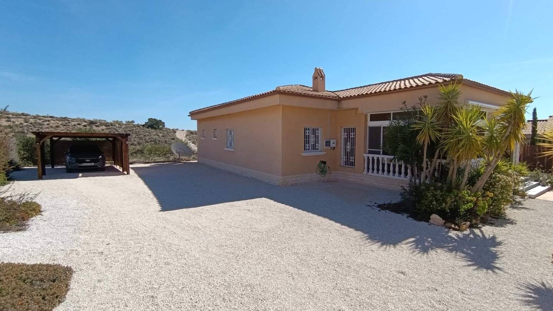 La parcela incluye además un amplio trastero independiente y un carport. El acceso a la propiedad se realiza mediante portón eléctrico, aportando comodidad y seguridad.