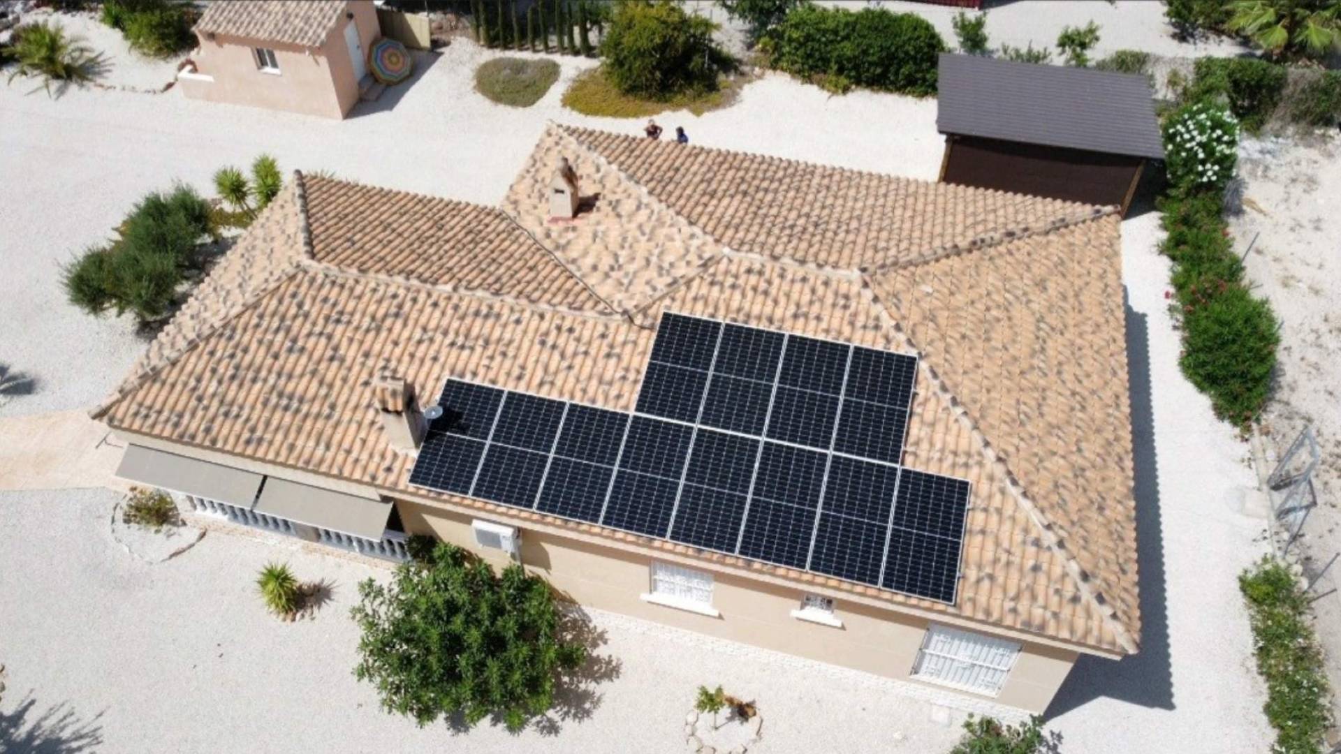 La vivienda también cuenta con diversas comodidades sostenibles y confortables. Los paneles solares garantizan eficiencia energética, el aire acondicionado proporciona frescor en verano y la estufa de pellets ofrece un agradable calor durante los meses más fríos. La terraza acristalada con vidrio tintado y térmico crea un espacio adicional perfecto para disfrutar de las vistas en cualquier estación.