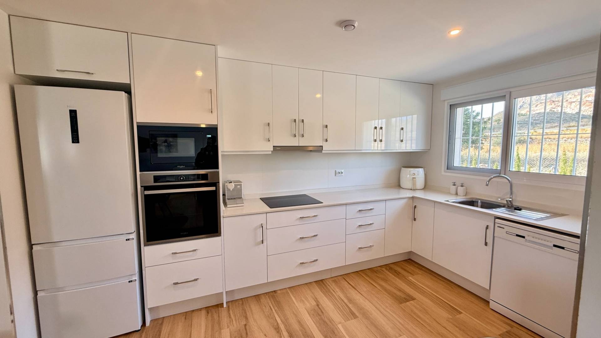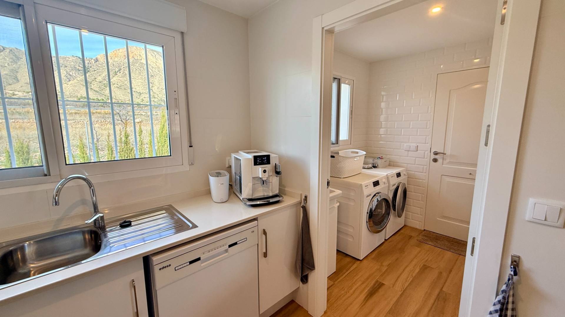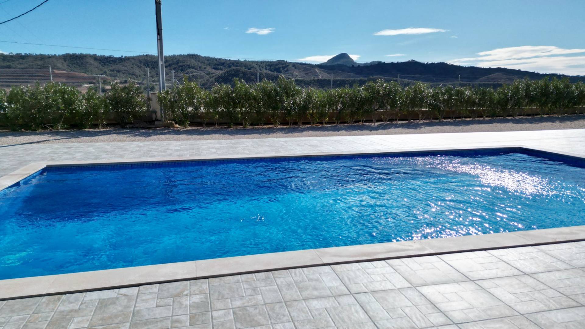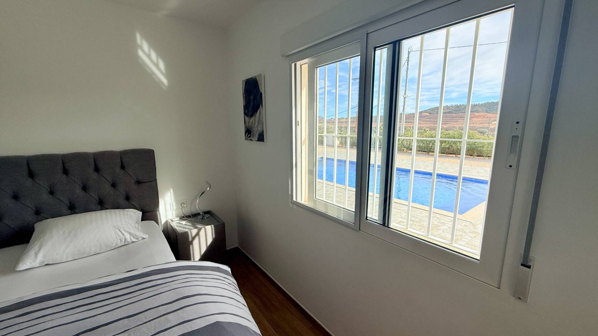 ¿Cómo utilizaría una villa como esta? ¿Largos días de verano junto a la piscina, trabajar desde casa con internet ultrarrápido o simplemente disfrutar de paz, espacio y vistas desde su propia terraza orientada al sur? Construida en 2022 y presentada en estado impecable, esta villa moderna se encuentra en una parcela totalmente vallada de 5.500 m², con vistas a almendros en terrazas y a las colinas boscosas de Murcia. Privacidad, luz y comodidad definen esta propiedad. En el interior, la vivienda ofrece un luminoso salón-comedor de concepto abierto con acceso directo a un amplio porche cubierto orientado al sur con vistas a la piscina. La cocina moderna está totalmente equipada con electrodomésticos integrados, amplias superficies de trabajo y mucho espacio de almacenaje. Un lavadero independiente aporta funcionalidad adicional y acceso exterior hacia la zona del garaje. La distribución es práctica y flexible: Tres dormitorios dobles con armarios empotradosDormitorio principal con baño en suiteBaño de invitados con ducha tipo walk-inIdeal para invitados, despacho o vida familiar En el exterior, la villa destaca especialmente. Se accede mediante una puerta corredera motorizada que da paso a un largo camino de grava flanqueado por olivos, con un total aproximado de 120 olivos en la parcela. El punto central es la piscina privada de agua salada de 10 x 5 m, rodeada por una amplia terraza y una pérgola que ofrece sombra en los días más calurosos. ¿Se imagina tardes relajadas junto a la piscina, baños al atardecer o reuniones con amigos bajo la pérgola con las colinas como telón de fondo? Características exteriores principales: Parcela totalmente vallada de 5.500 m²Piscina de agua salada (más suave para piel y ojos)Amplia terraza y pérgolaGaraje doble con dos puertas eléctricasEspacio con potencial para taller, almacenamiento o conversión La vivienda está preparada para vivir todo el año, con electricidad de red mejorada (7 kW), agua de riego, depósito de agua potable de 12.000 litros, aire acondicionado por conductos frío/calor, sistema solar para agua caliente e internet por fibra óptica de 1.000 Mbps. La parcela cuenta con sistema de riego completo.