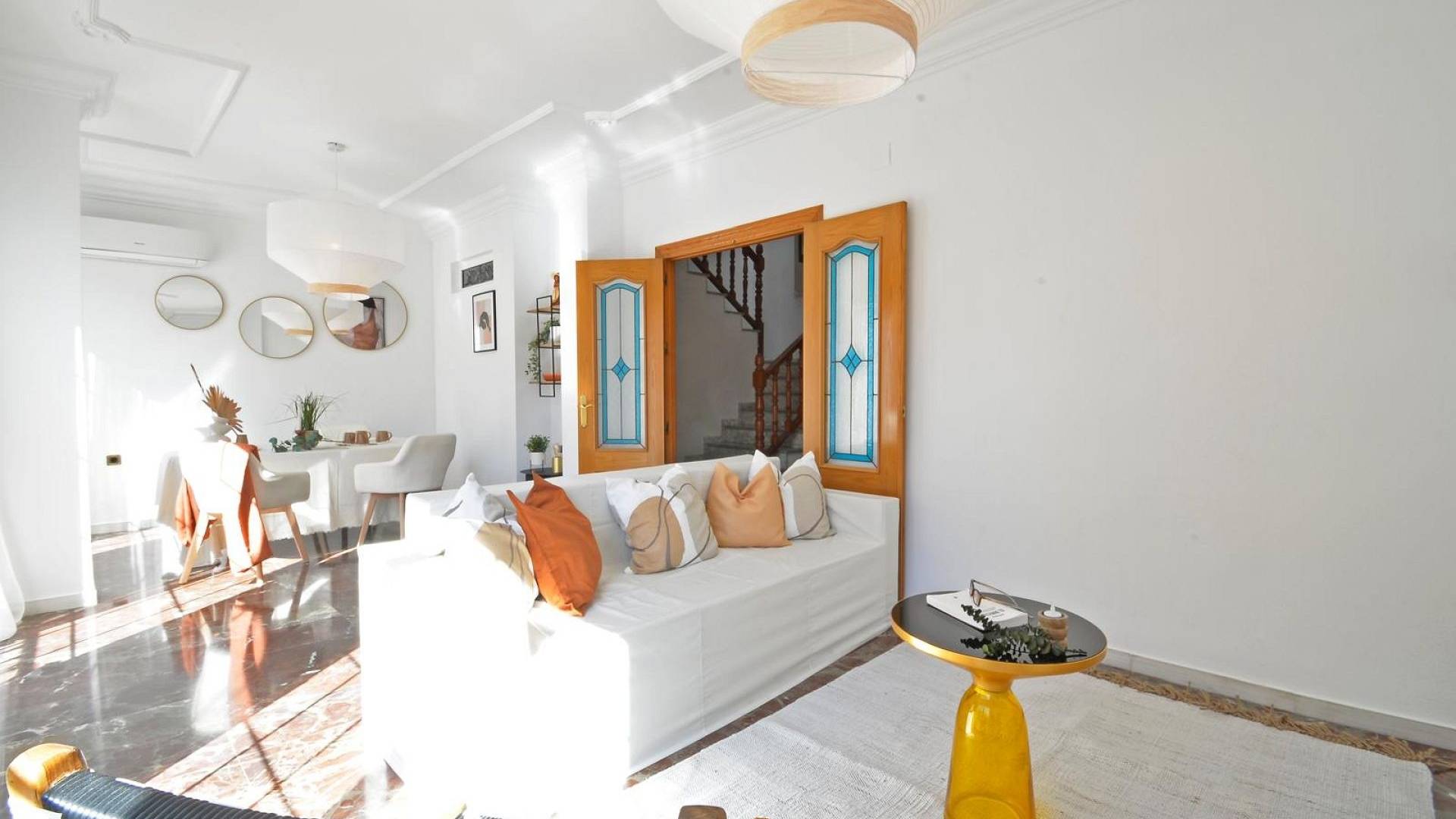Los elegantes suelos de mármol y un pasillo con claraboya crean un ambiente luminoso y acogedor. El amplio salón-comedor ofrece amplio espacio para relajarse o entretenerse, con aire acondicionado y bomba de calor para mayor comodidad durante todo el año.